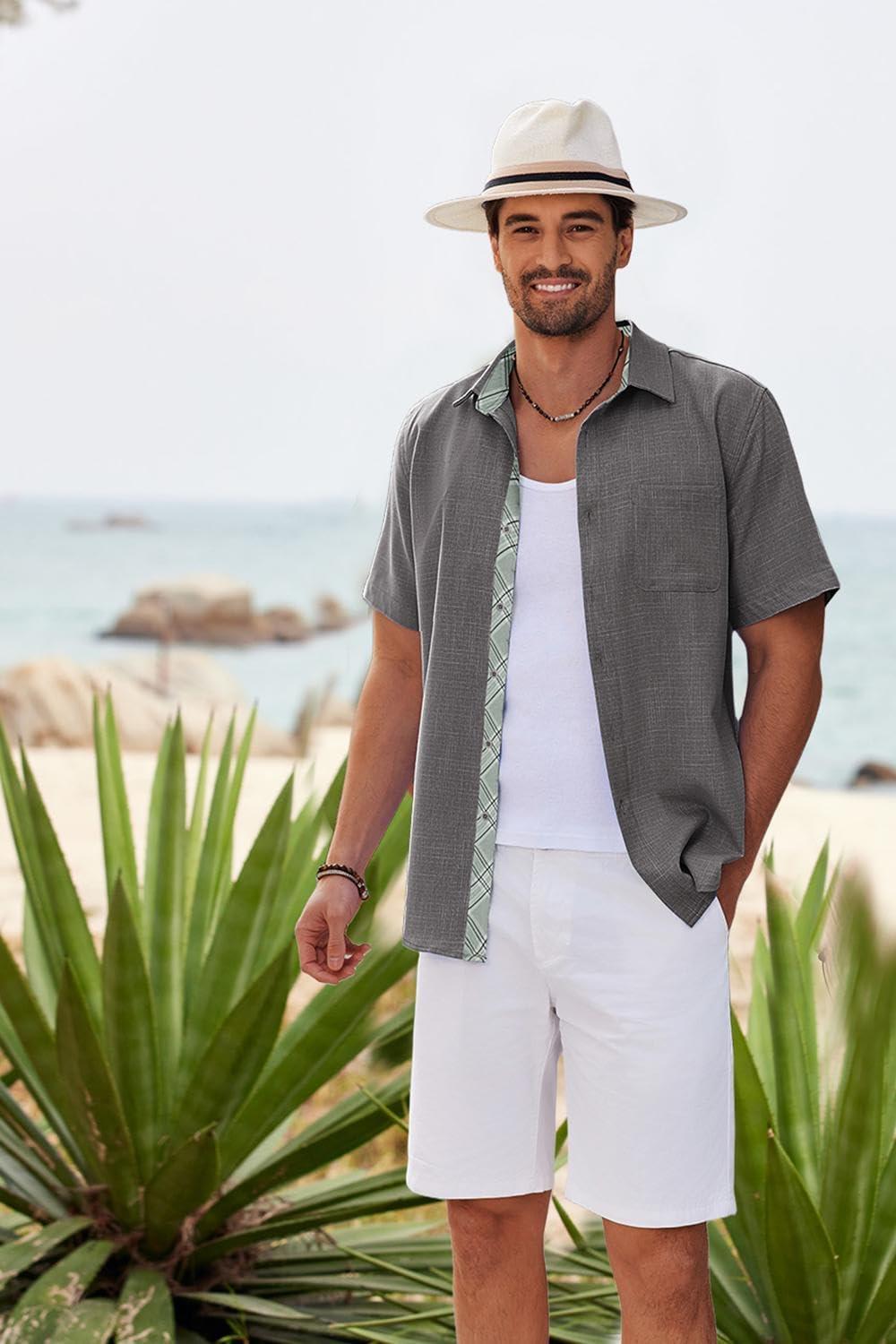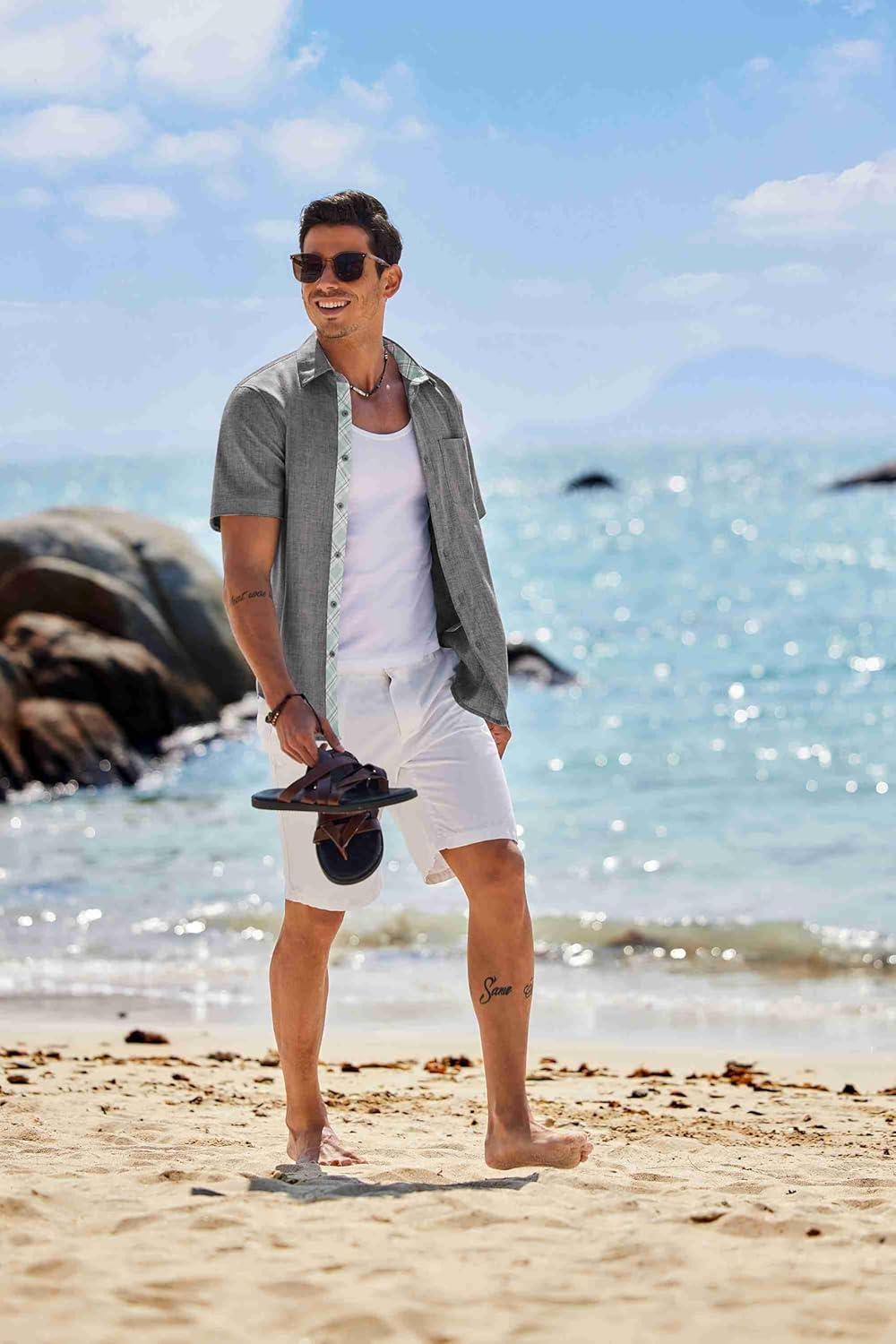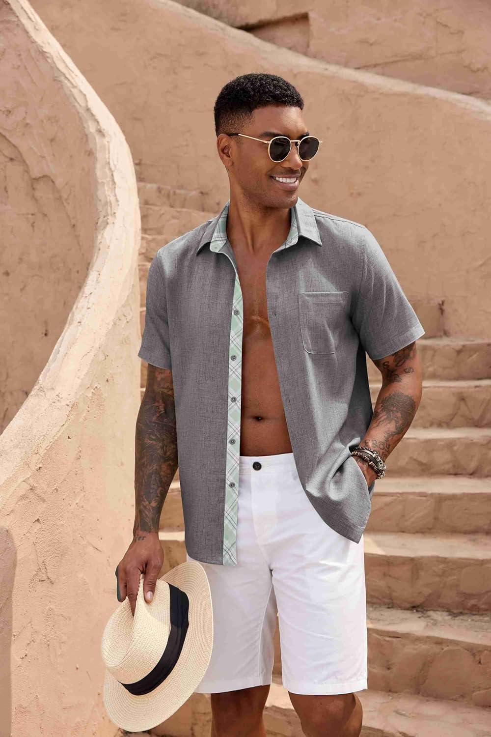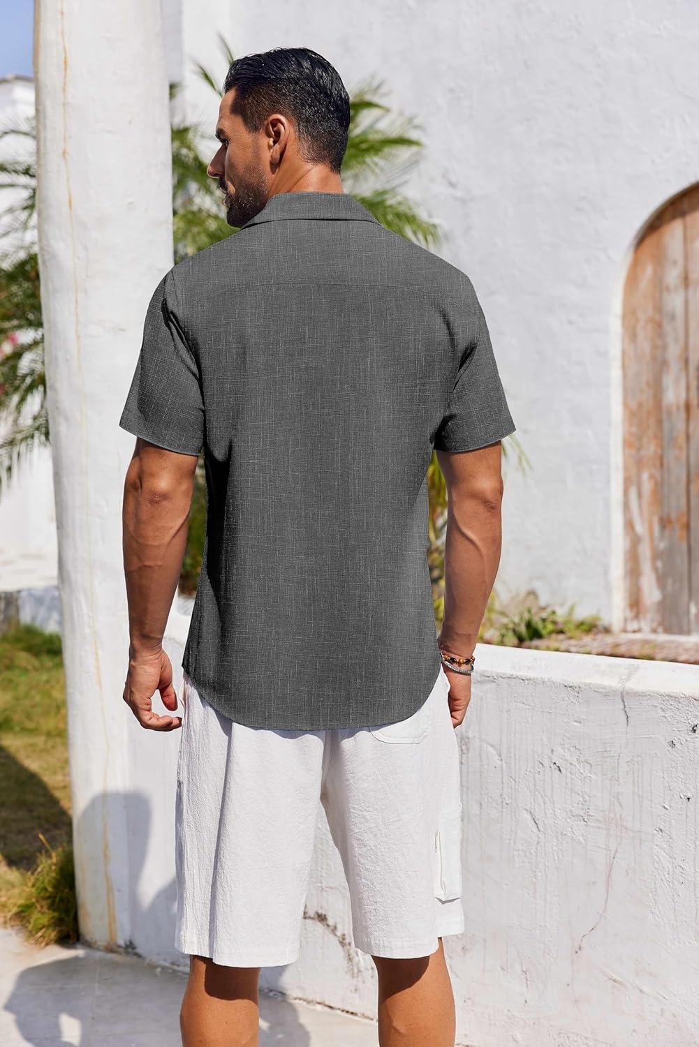 COOFANDY Mens Button Down Shirts Short Sleeve Casual Linen Shirts for Men Summer Beach Wedding Shirt(Dark Gray)