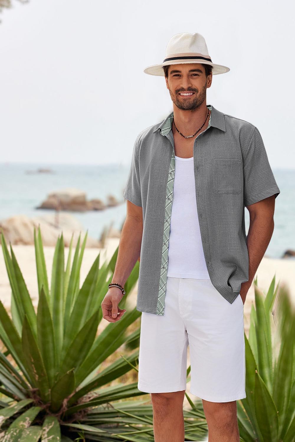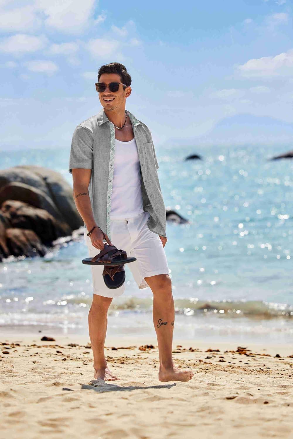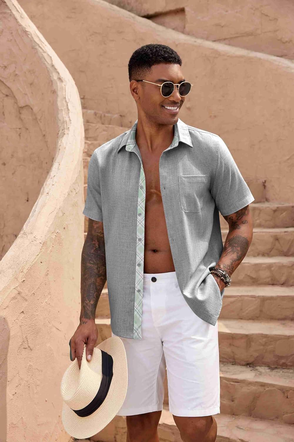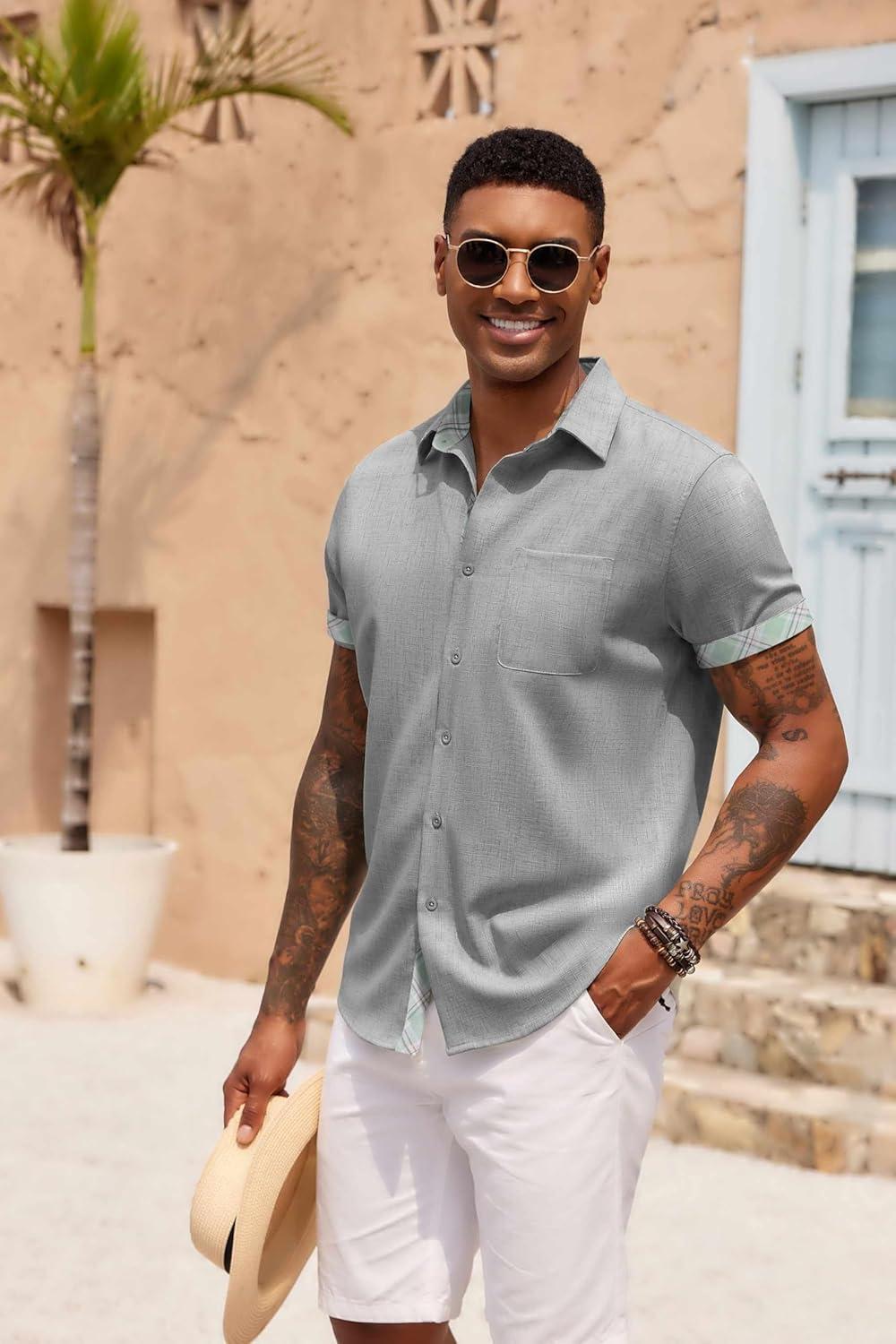 COOFANDY Mens Button Down Shirts Short Sleeve Casual Linen Shirts for Men Summer Beach Wedding Shirt(Light Gray)