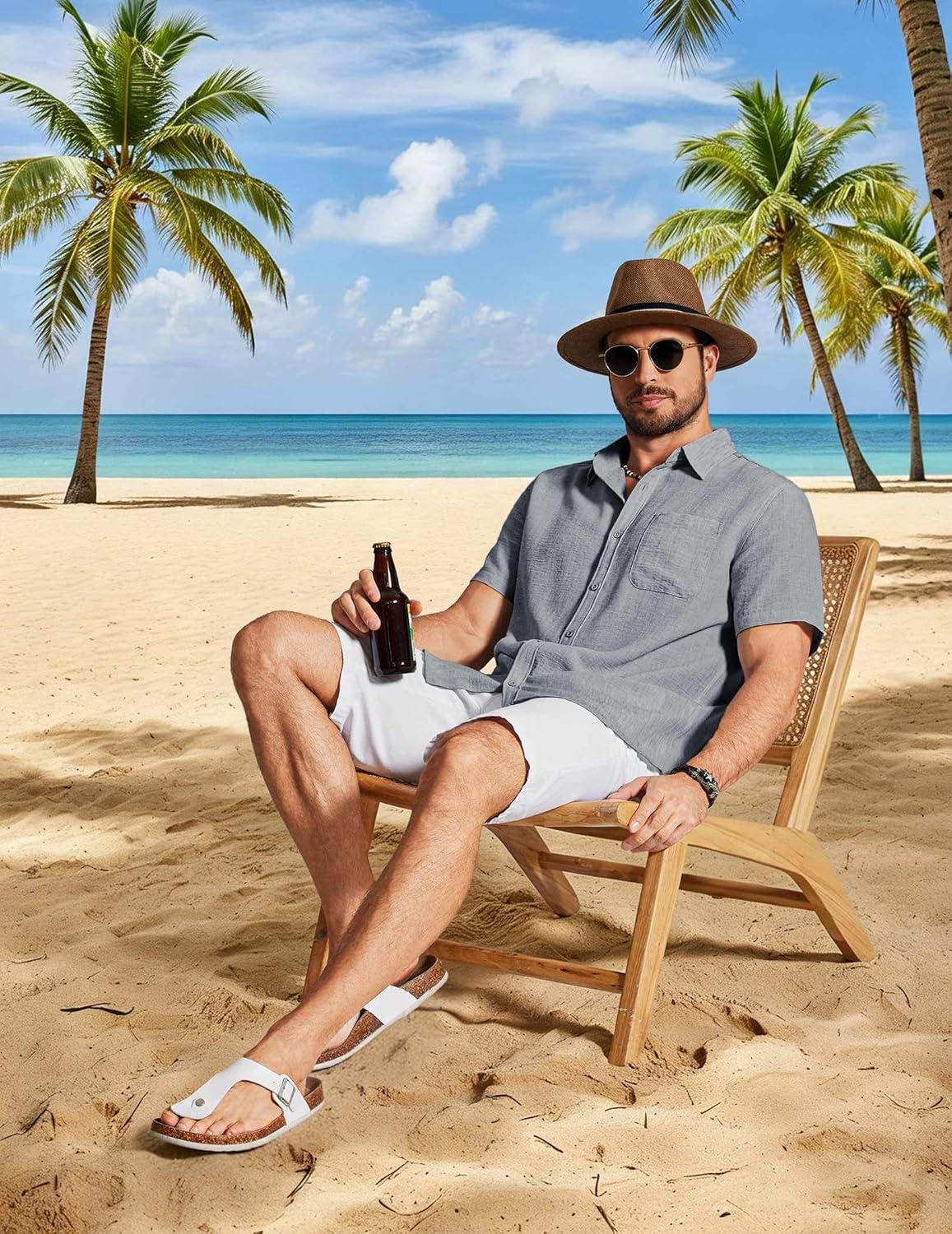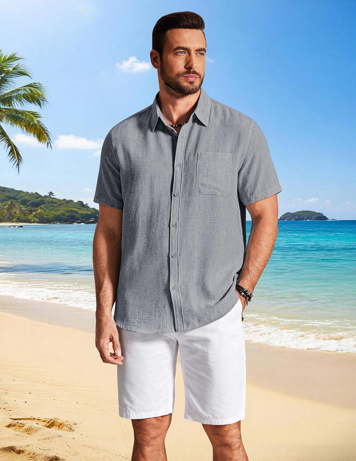COOFANDY Men's Button Down Shirts Short Sleeve Casual Shirt Summer Beach Textured Shirts(Dark Grey)