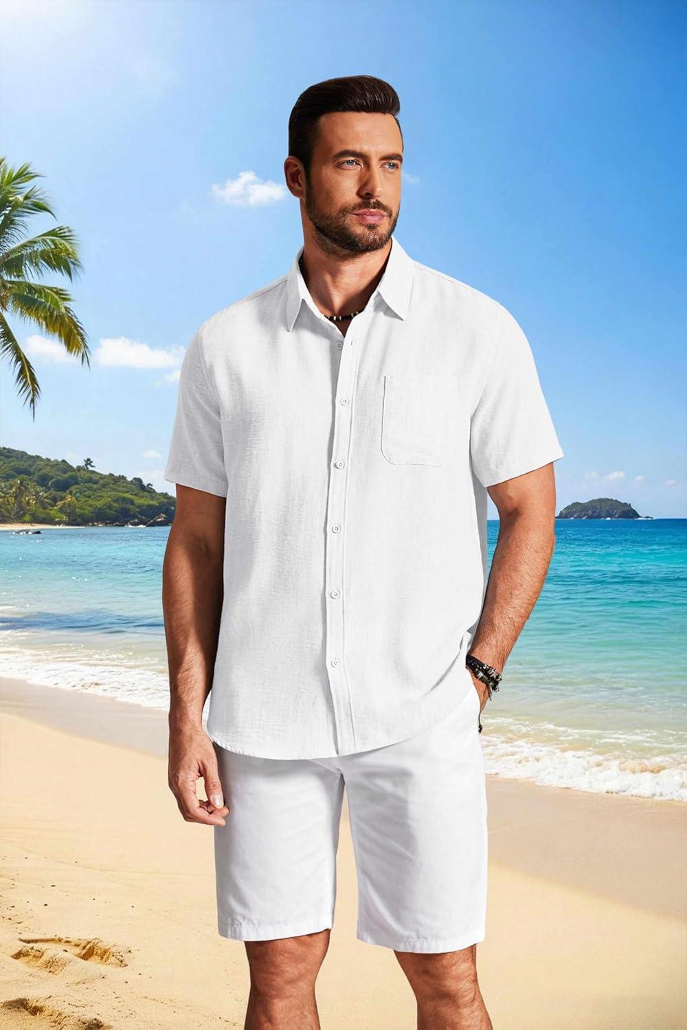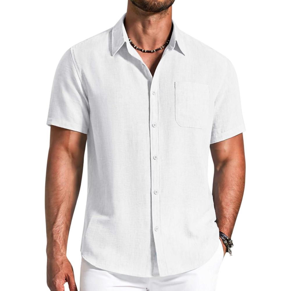 COOFANDY Men’s Button Down Shirts Short Sleeve Casual Shirt Summer Beach Textured Shirts(White)