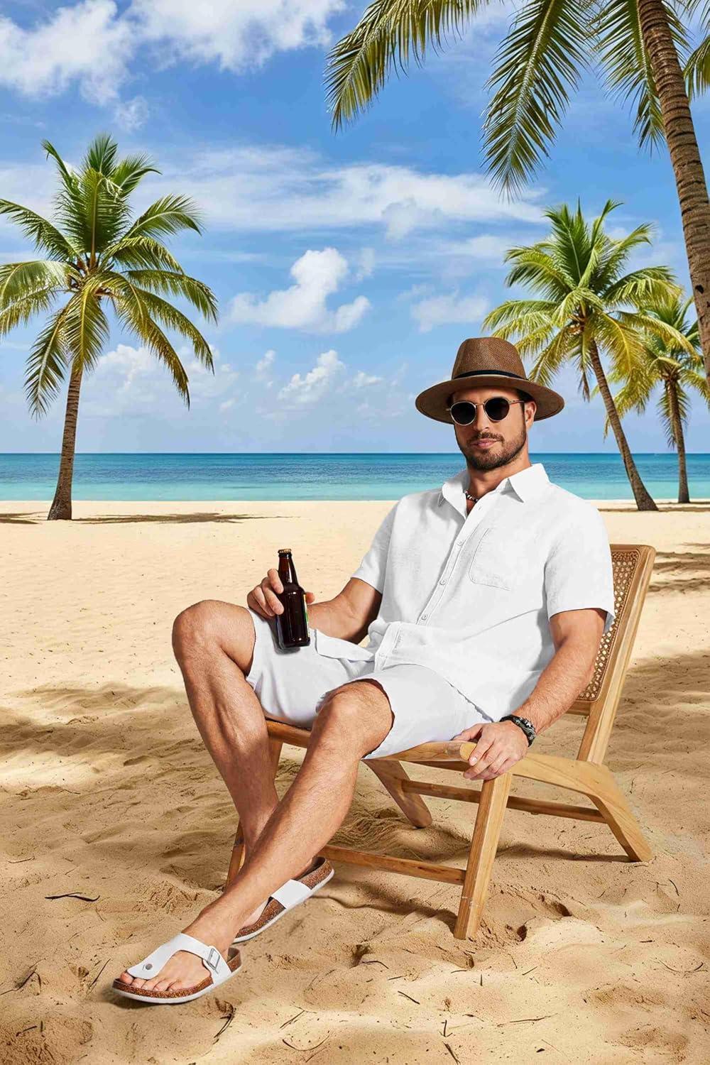 COOFANDY Men's Button Down Shirts Short Sleeve Casual Shirt Summer Beach Textured Shirts(White)