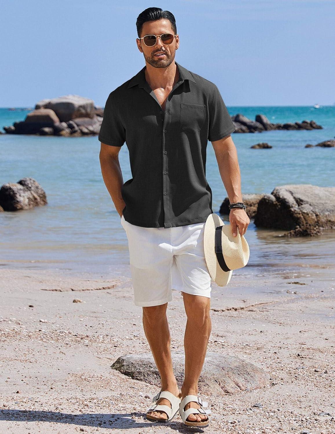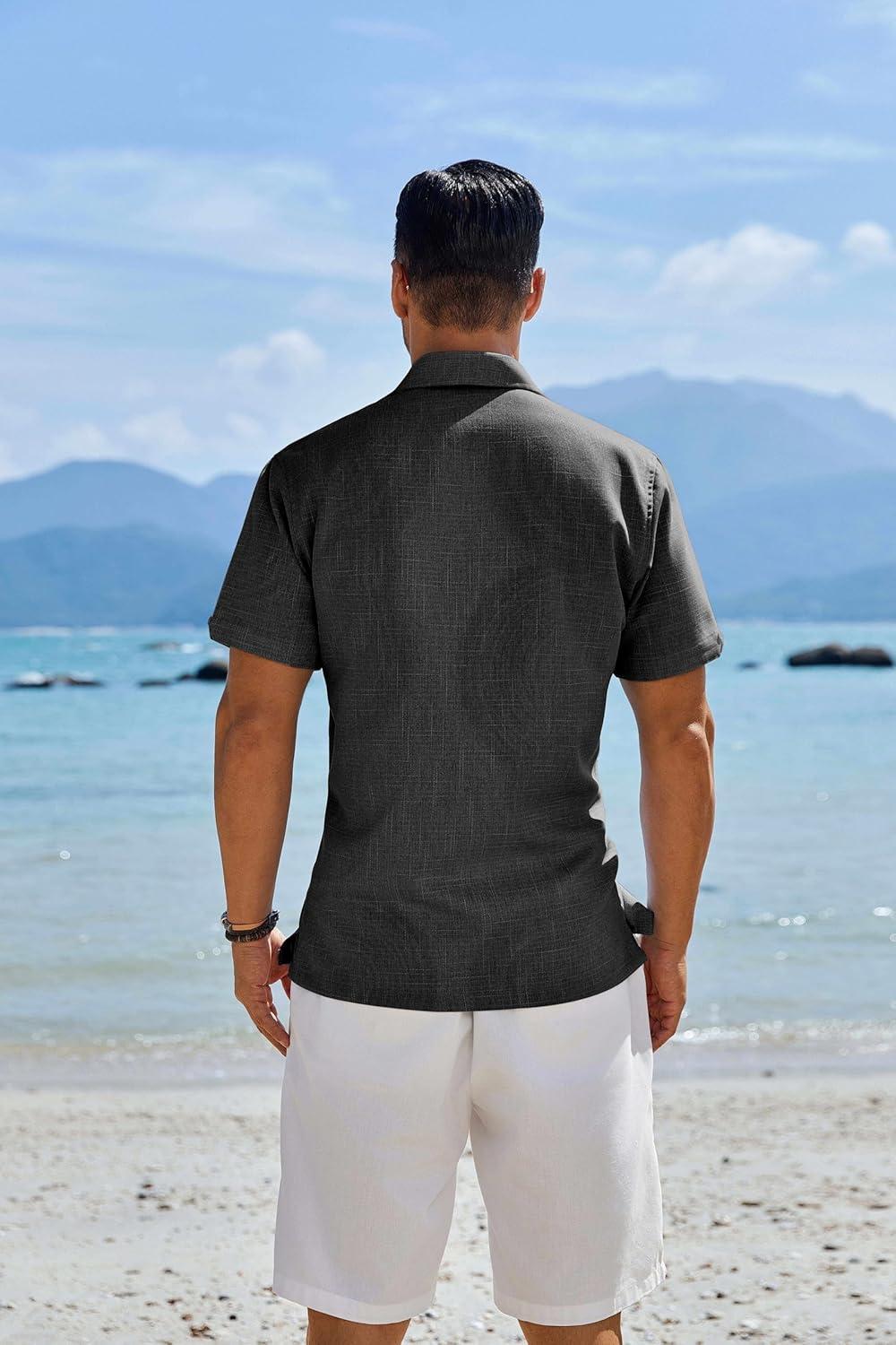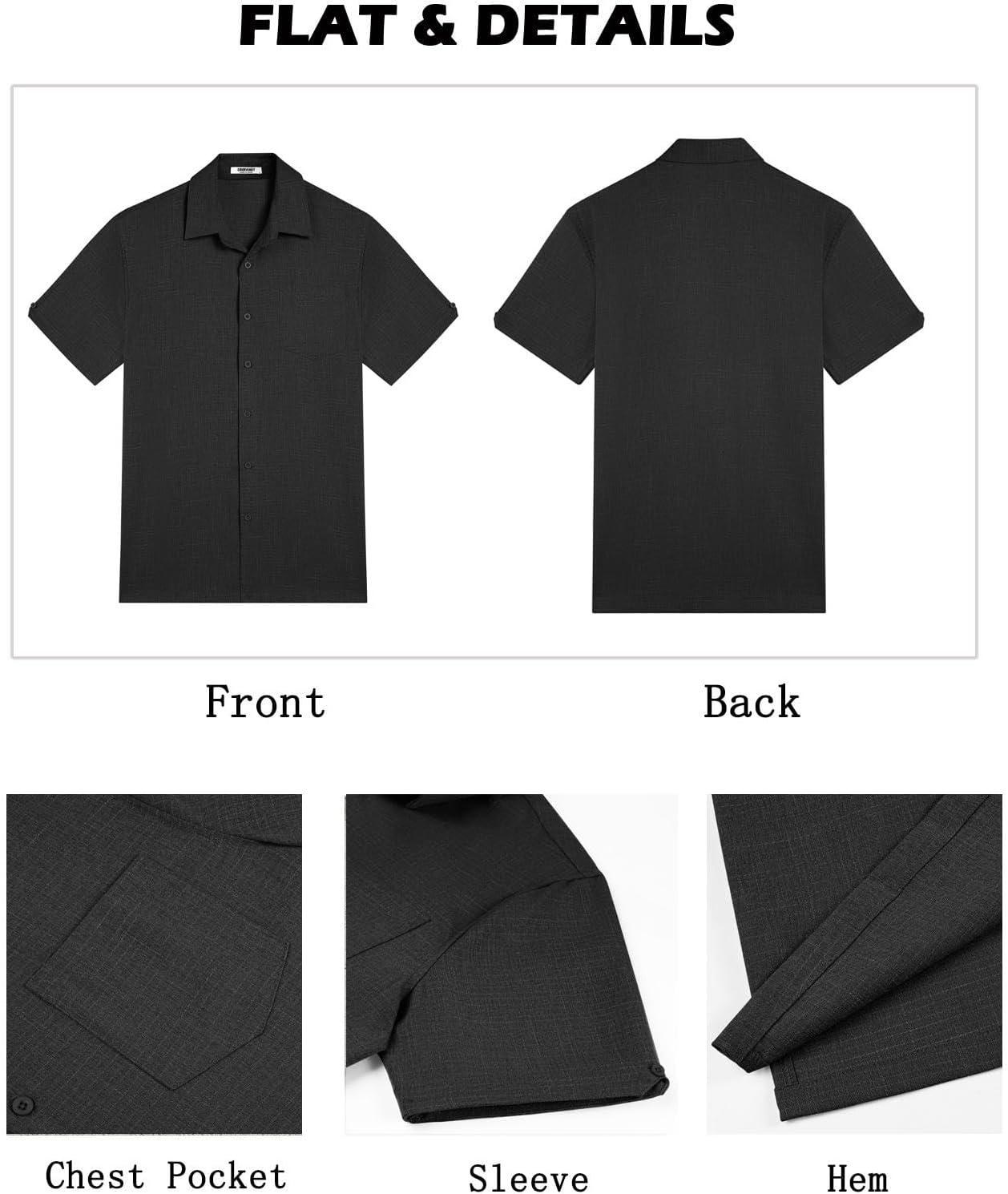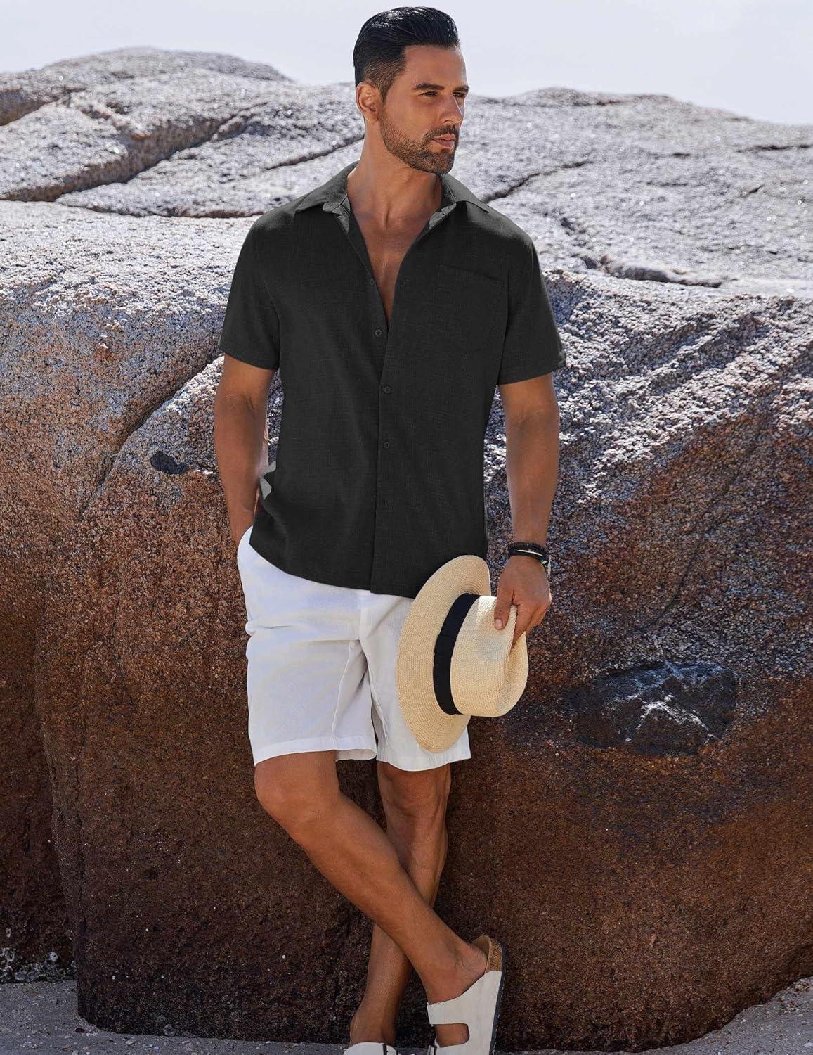 COOFANDY Men's Button Down Shirts Short Sleeve Casual Shirts Summer Beach Linen Shirts with Pocket(Black)