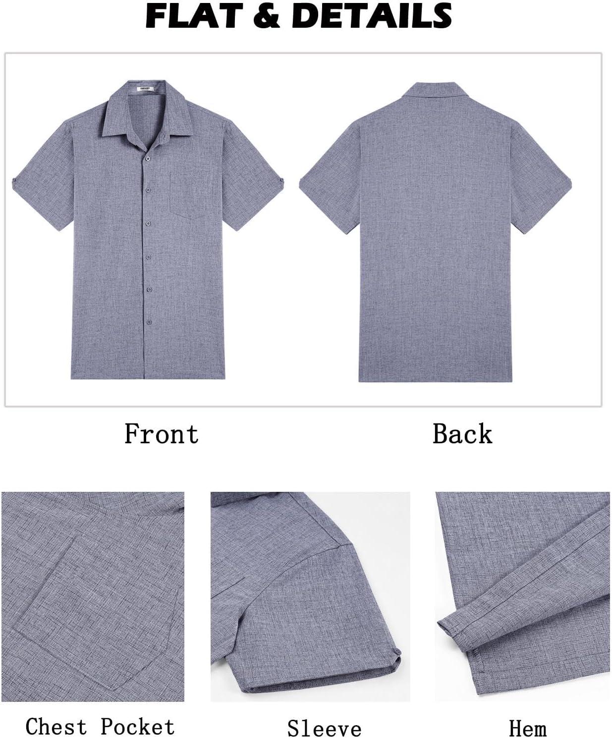 COOFANDY Men's Button Down Shirts Short Sleeve Casual Shirts Summer Beach Linen Shirts with Pocket(Dark Blue)