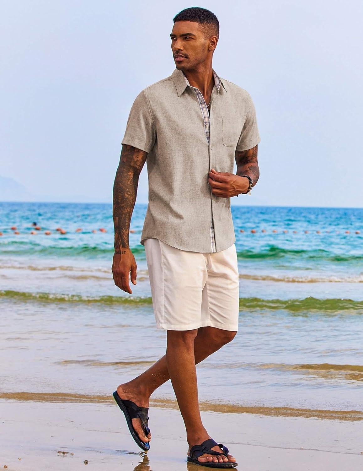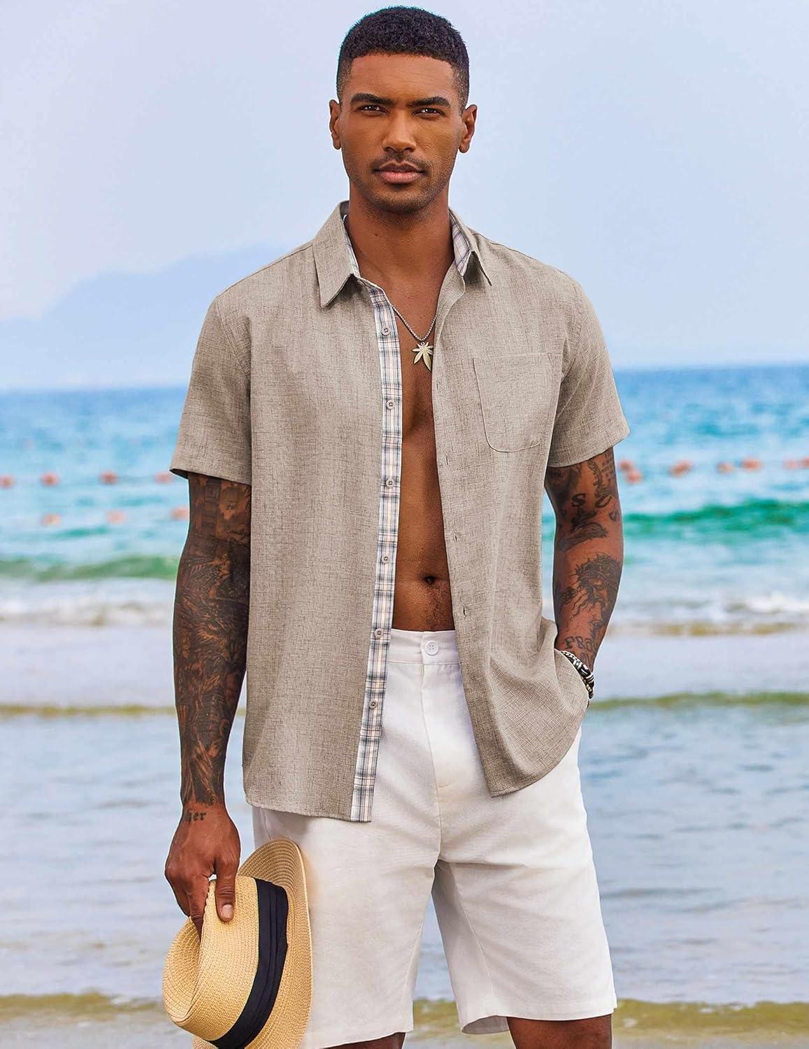 COOFANDY Men’s Button Down Shirts Short Sleeve Casual Shirts Summer Beach Shirts Vacation Wedding Shirts with Pocket(Khaki)