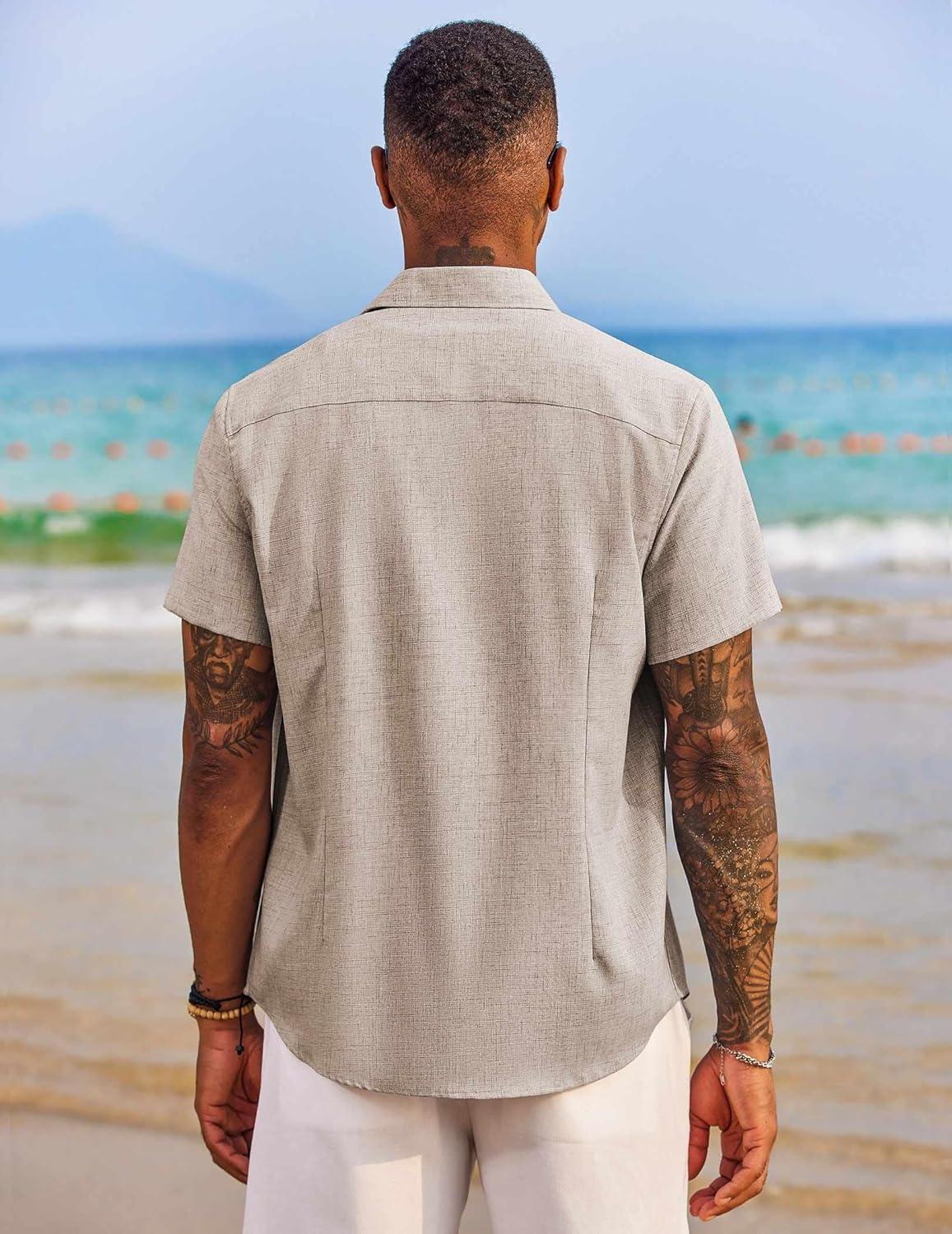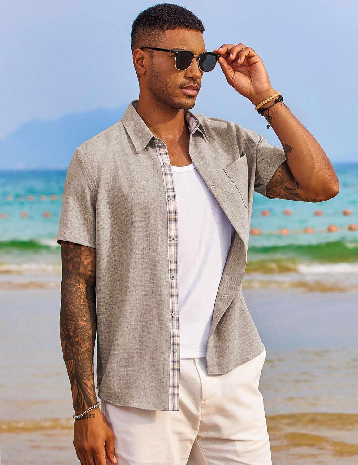 COOFANDY Men’s Button Down Shirts Short Sleeve Casual Shirts Summer Beach Shirts Vacation Wedding Shirts with Pocket(Grey)