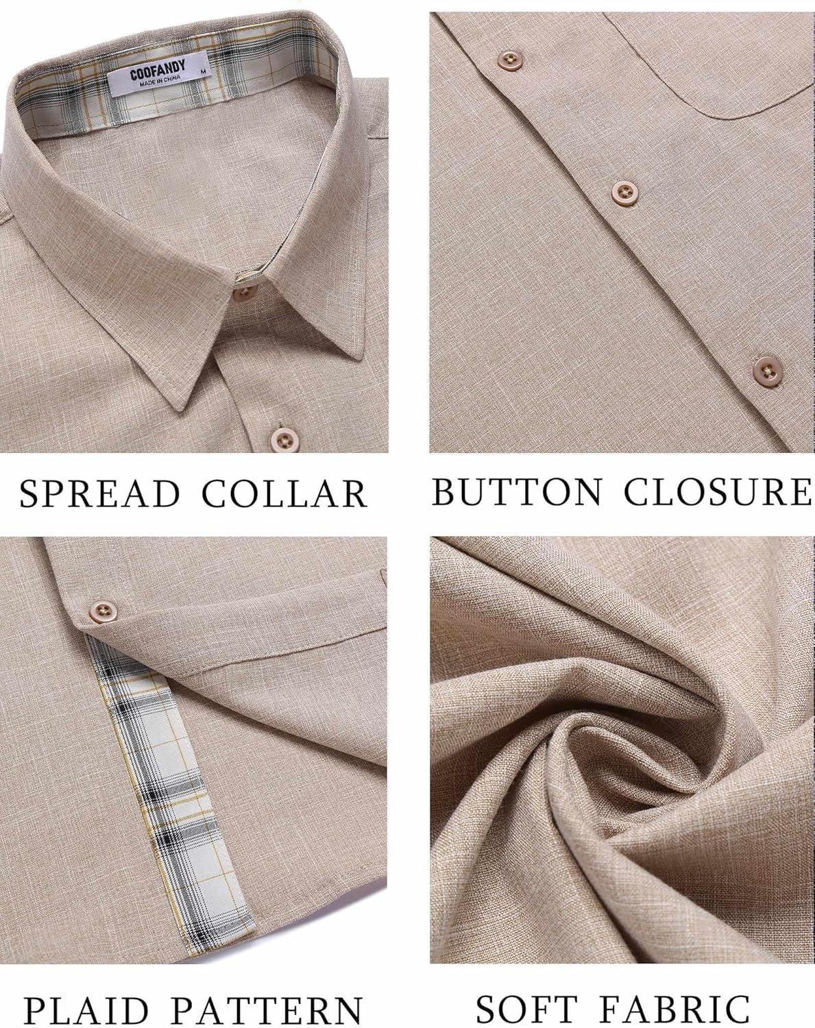 COOFANDY Men's Button Down Shirts Short Sleeve Casual Shirts Summer Beach Shirts Vacation Wedding Shirts with Pocket(Khaki)