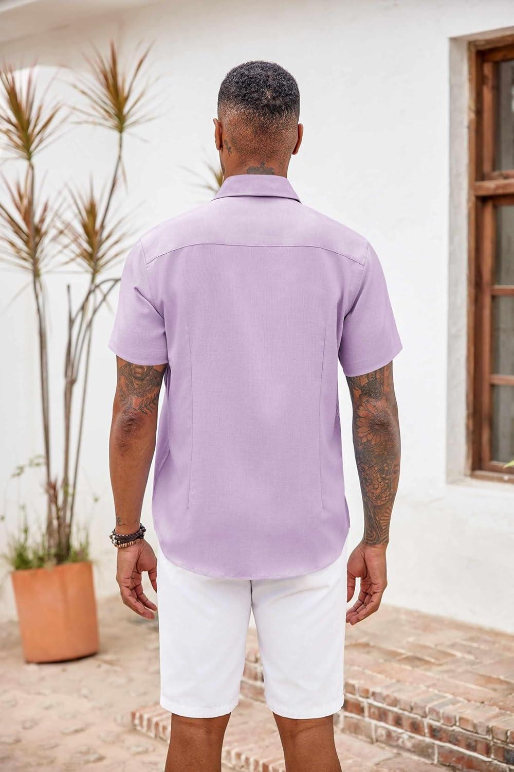 COOFANDY Men’s Button Down Shirts Short Sleeve Casual Shirts Summer Beach Shirts Vacation Wedding Shirts with Pocket(Light Purple)