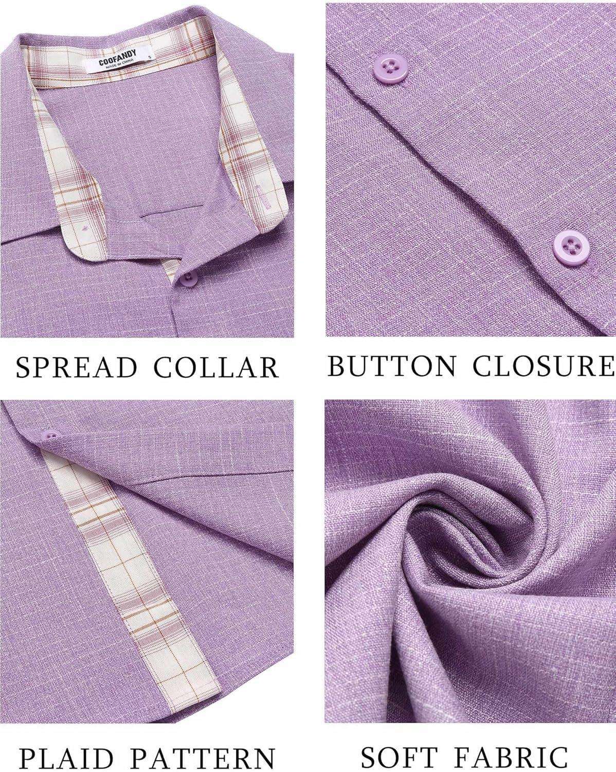 imageCOOFANDY Mens Button Down Shirts Short Sleeve Casual Shirts Summer Beach Shirts Vacation Wedding Shirts with PocketLight Purple