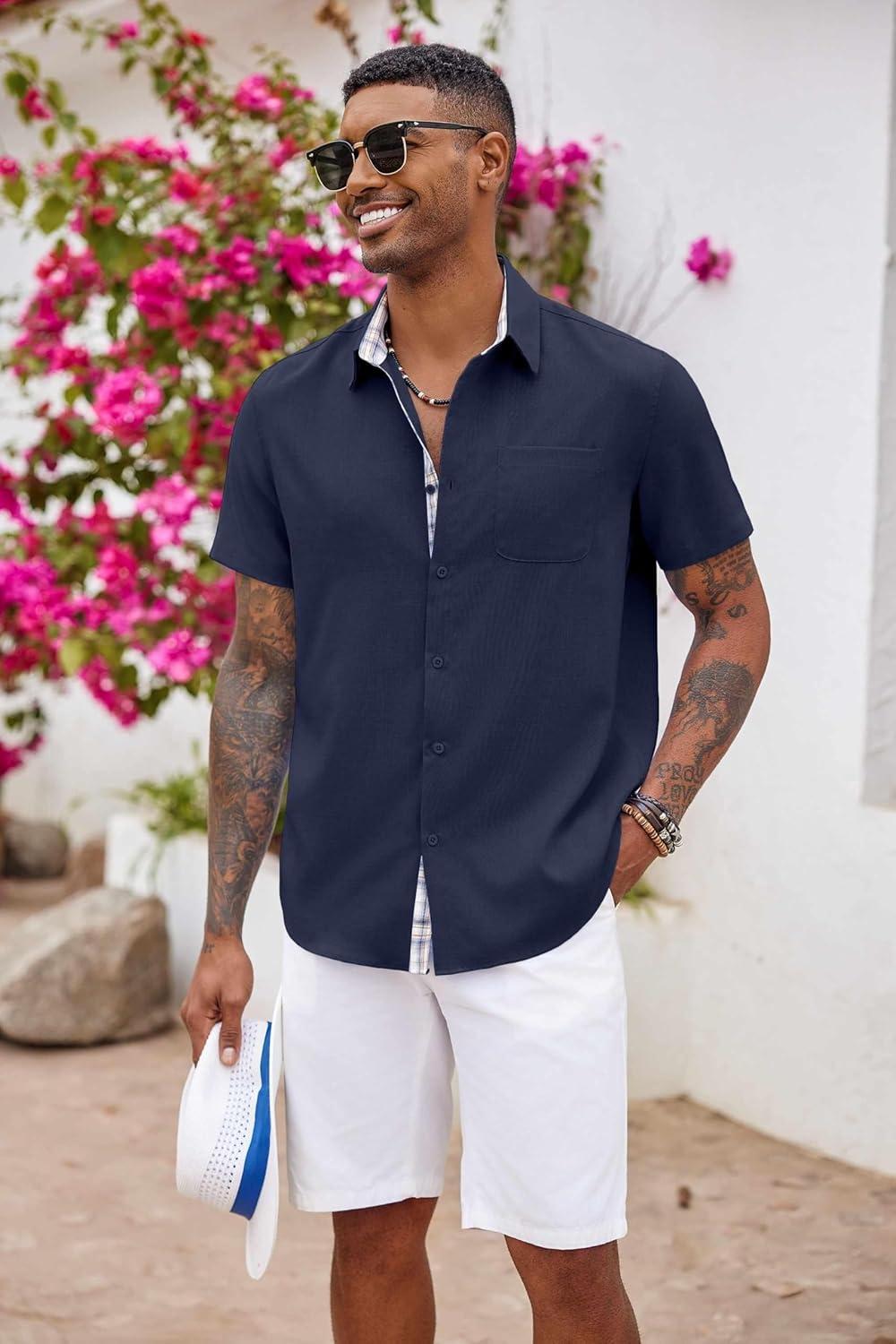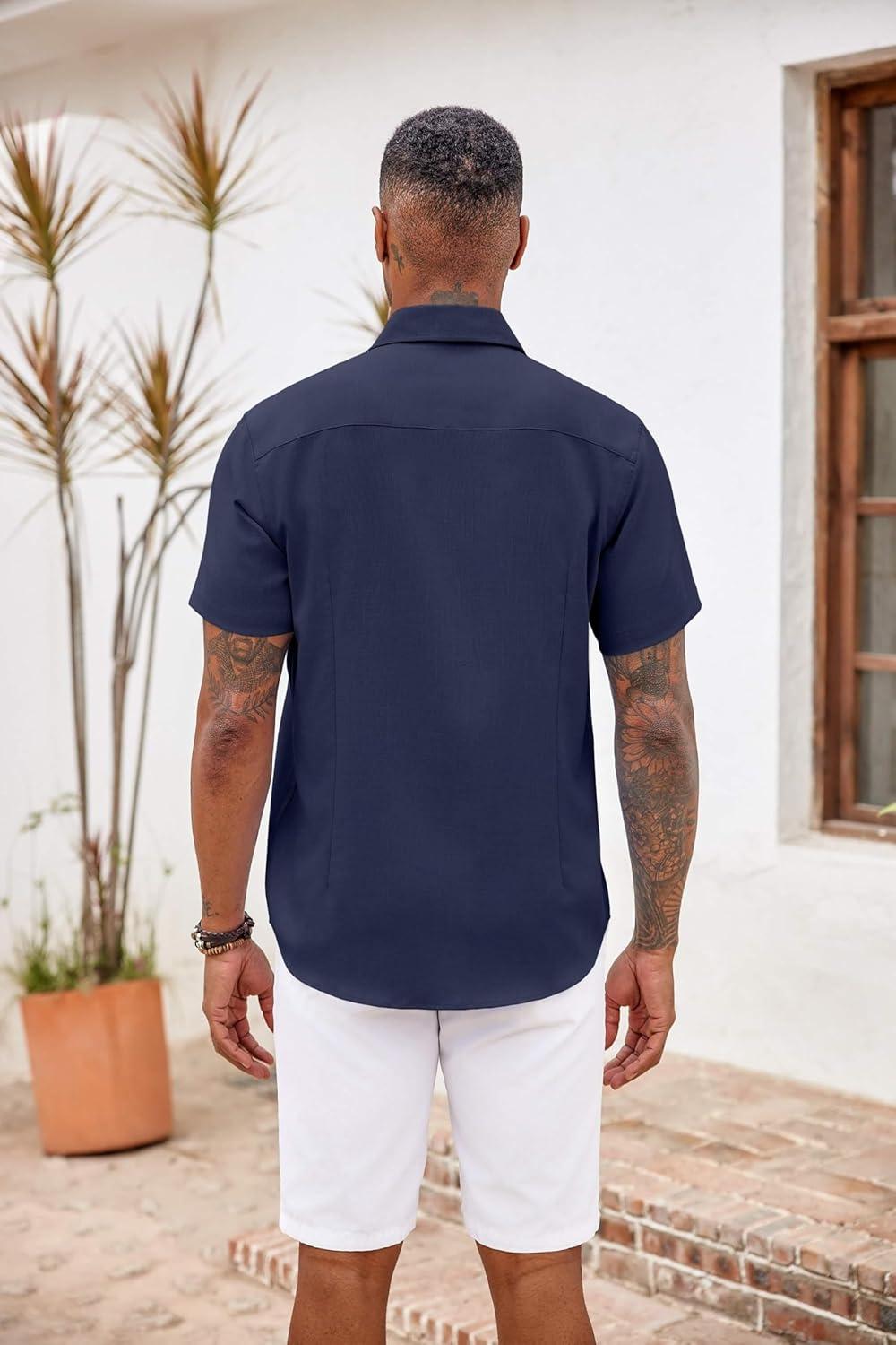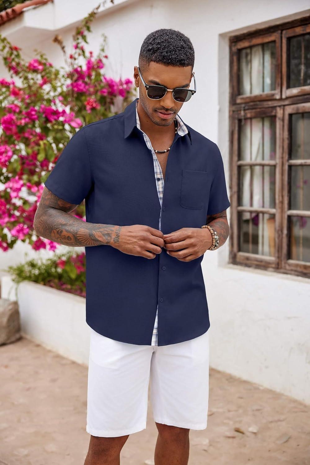 COOFANDY Men’s Button Down Shirts Short Sleeve Casual Shirts Summer Beach Shirts Vacation Wedding Shirts with Pocket(Navy Blue)