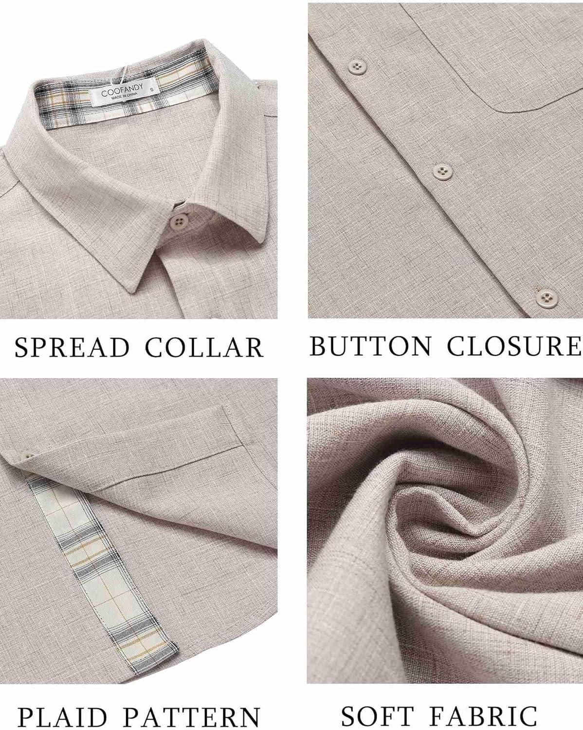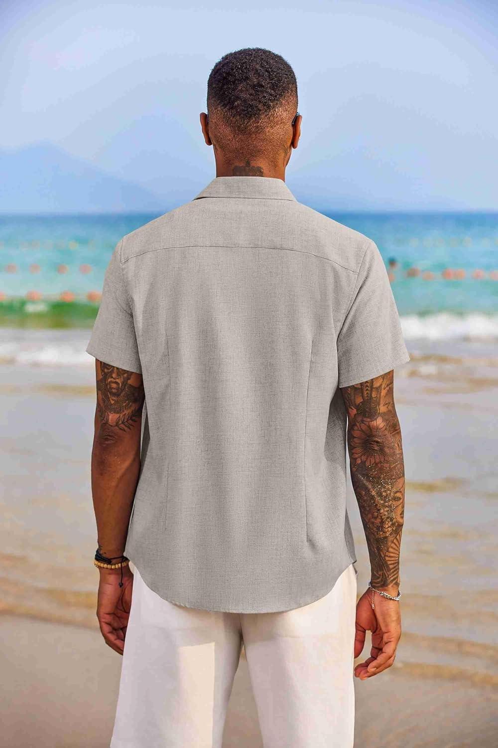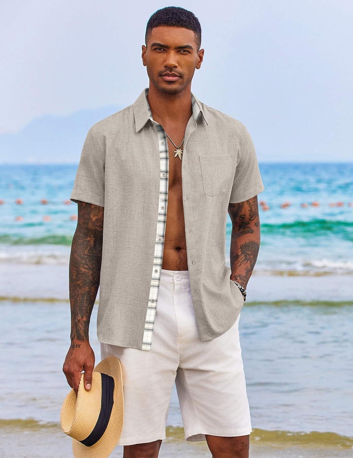 COOFANDY Men's Button Down Shirts Short Sleeve Casual Shirts Summer Beach Shirts Vacation Wedding Shirts with Pocket(Stone)