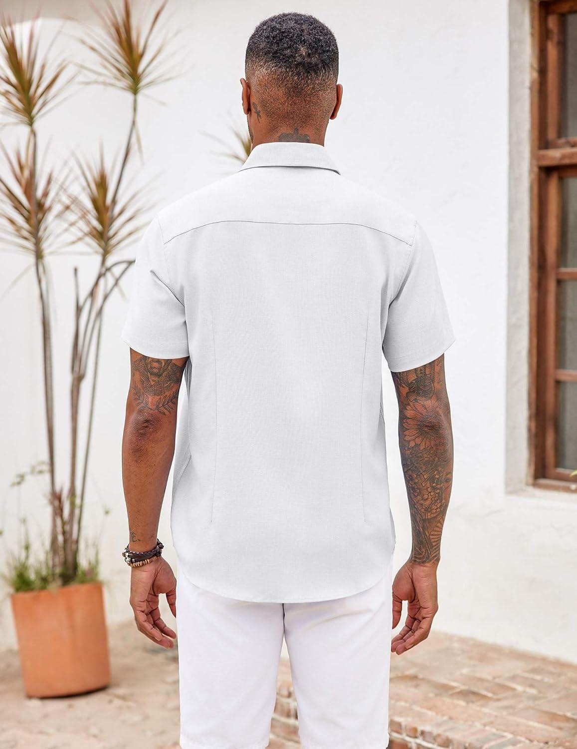 COOFANDY Men’s Button Down Shirts Short Sleeve Casual Shirts Summer Beach Shirts Vacation Wedding Shirts with Pocket(Lake Blue)