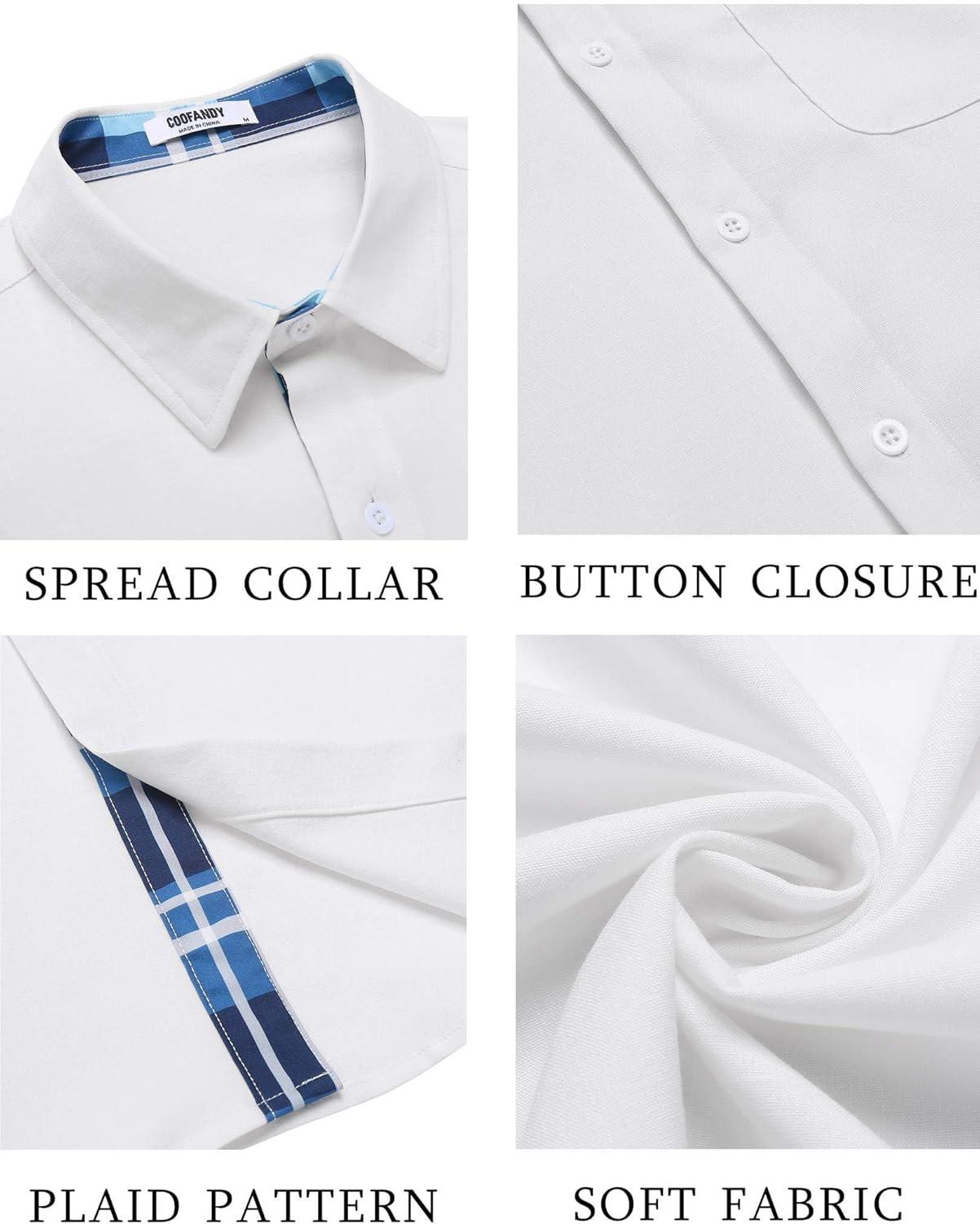 COOFANDY Men’s Button Down Shirts Short Sleeve Casual Shirts Summer Beach Shirts Vacation Wedding Shirts with Pocket(White – Blue Plaid)