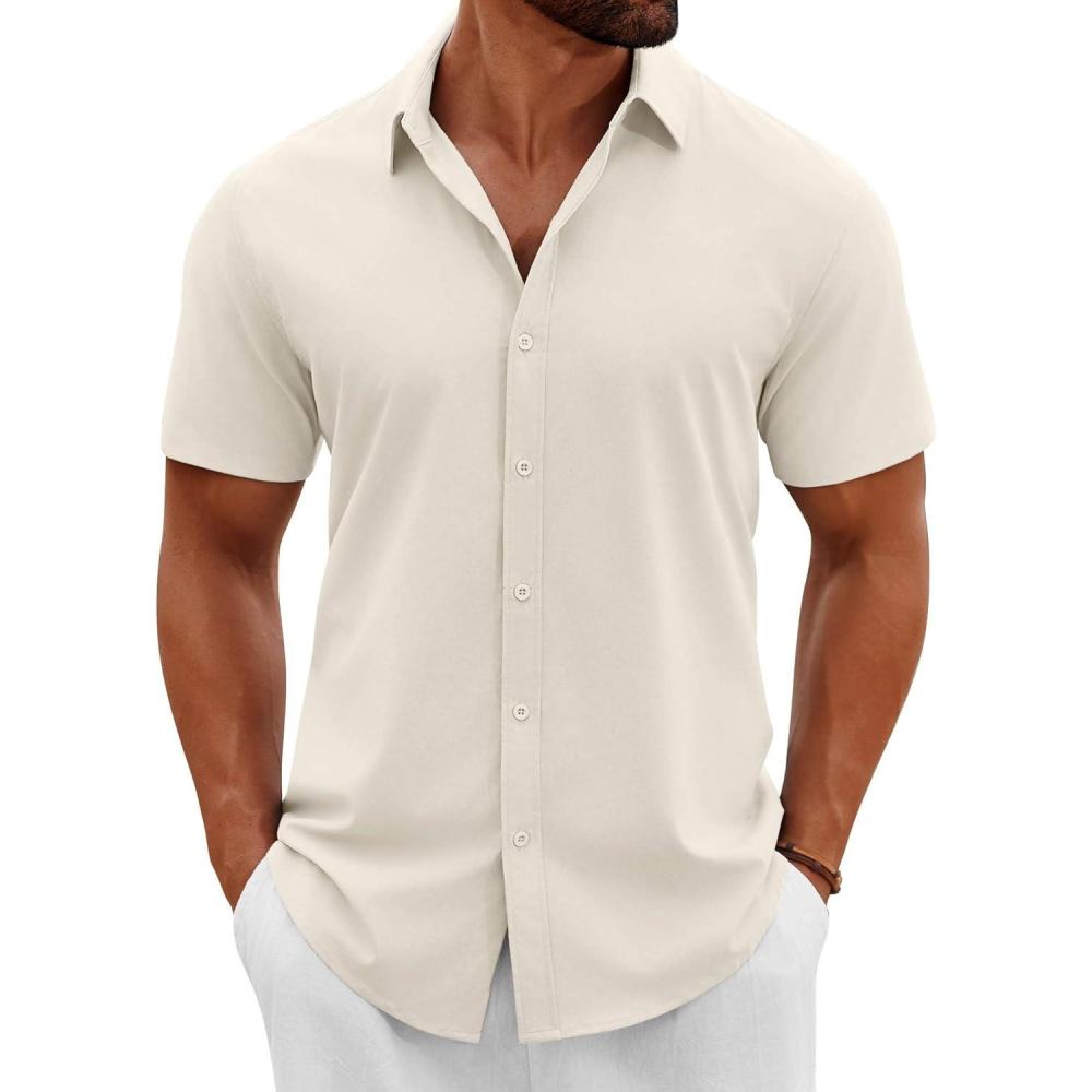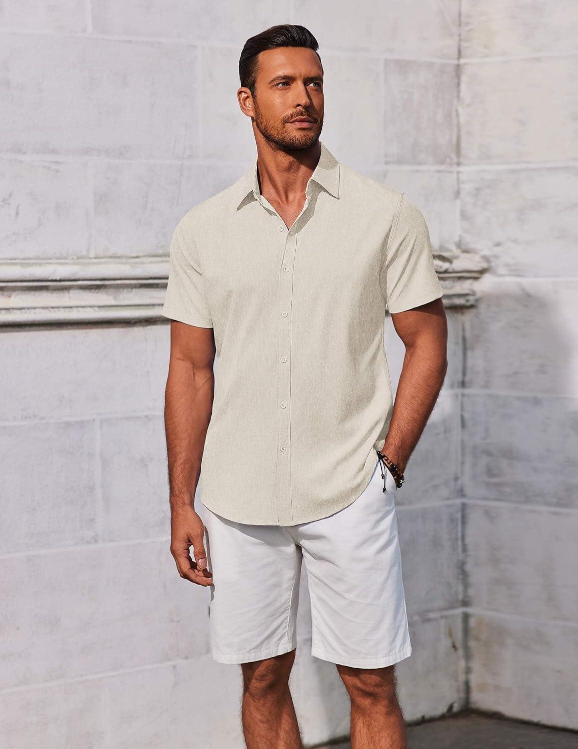 COOFANDY Men's Button Down Shirts Short Sleeve Casual Summer Beach Shirts Vacation Wedding Shirts(Beige)