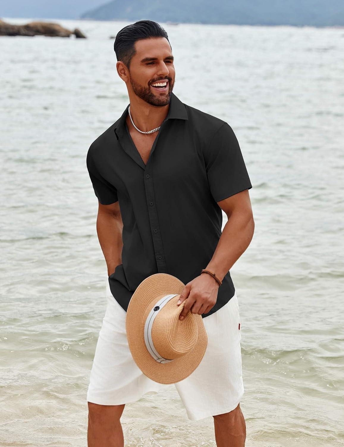 COOFANDY Men’s Button Down Shirts Short Sleeve Casual Summer Beach Shirts Vacation Wedding Shirts(Black)