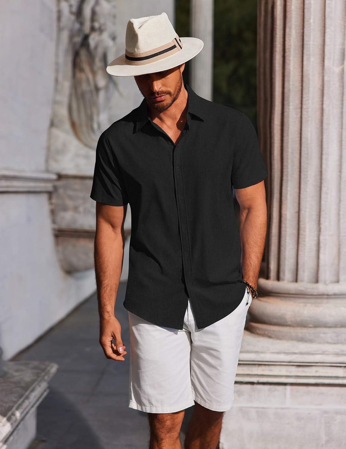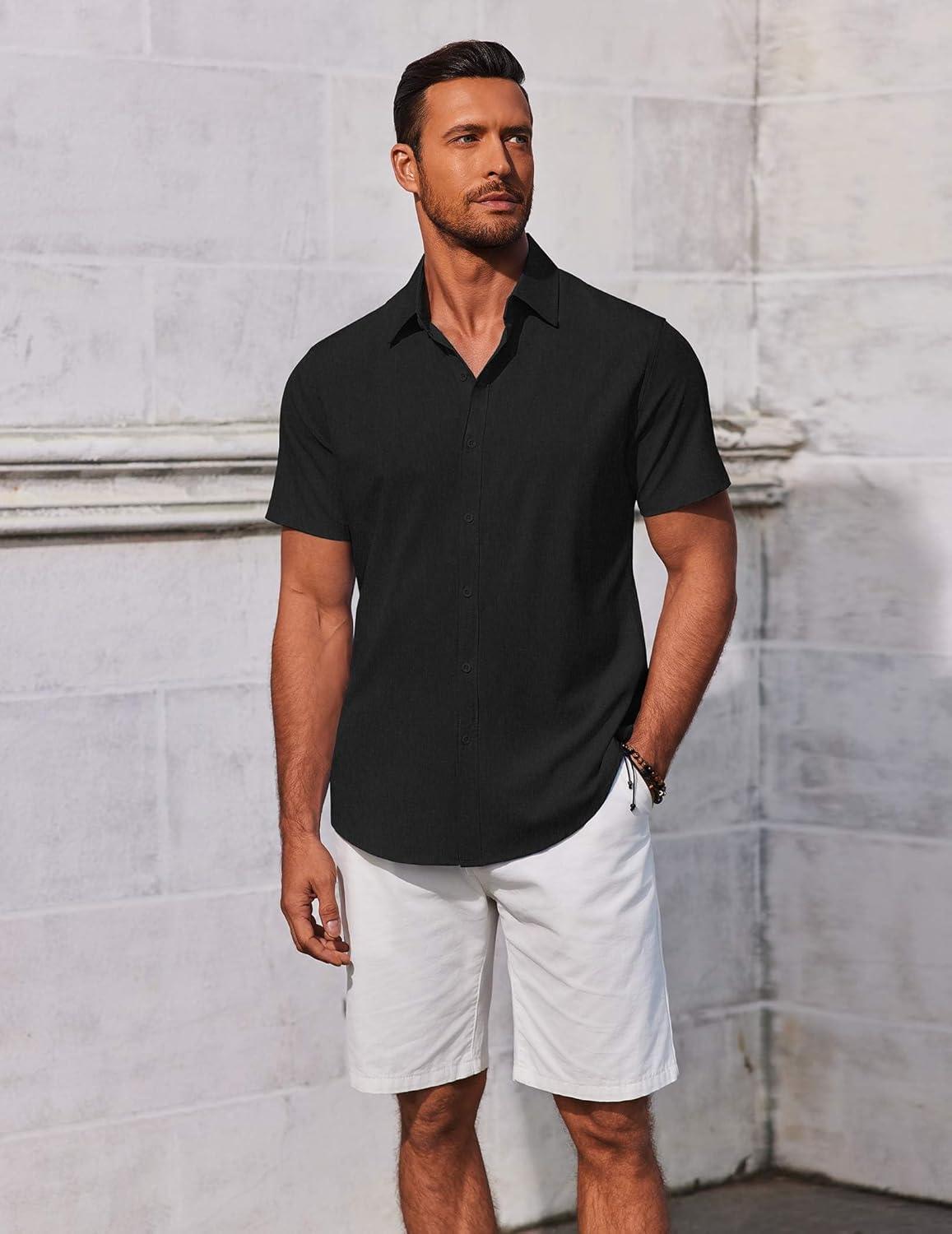 COOFANDY Men's Button Down Shirts Short Sleeve Casual Summer Beach Shirts Vacation Wedding Shirts(Black)