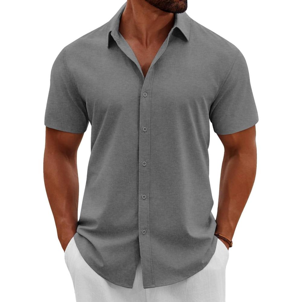 COOFANDY Men’s Button Down Shirts Short Sleeve Casual Summer Beach Shirts Vacation Wedding Shirts(Dark Grey)