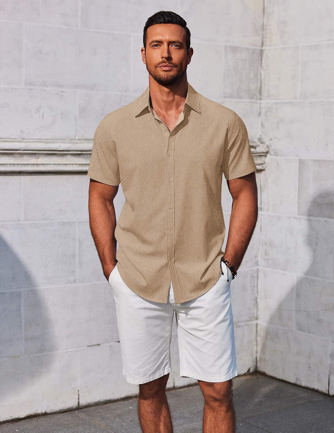 Score big on COOFANDY Men’s Button Down Shirts Short Sleeve Casual Summer Beach Shirts Vacation Wedding Shirts(Khaki) and accessories during our BOGO sale. Buy one, get one 50% off!