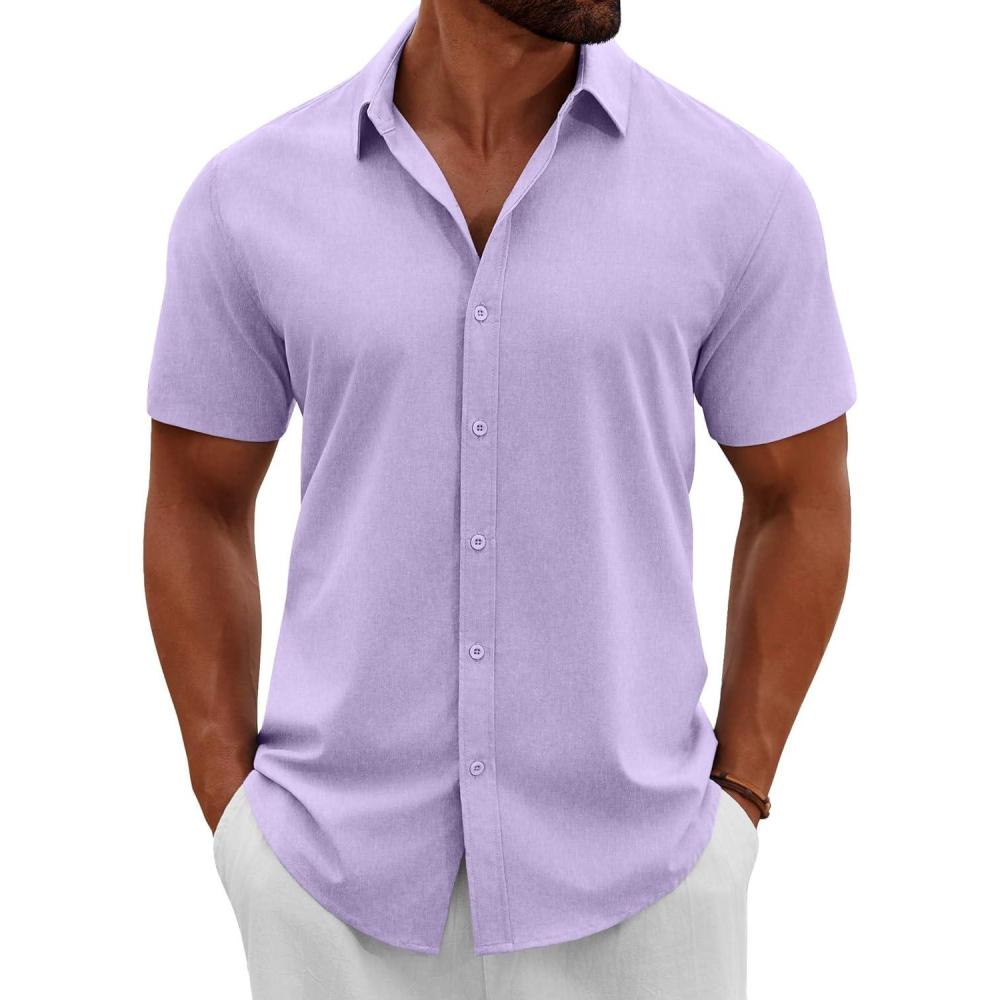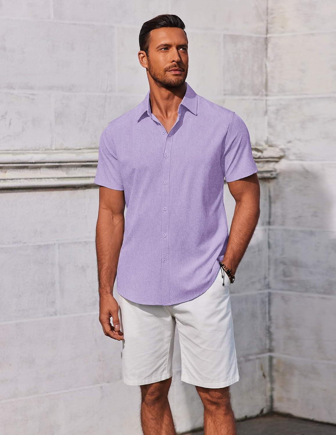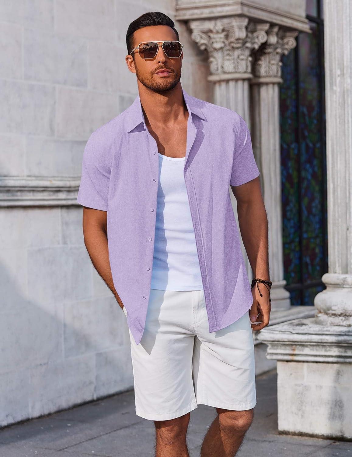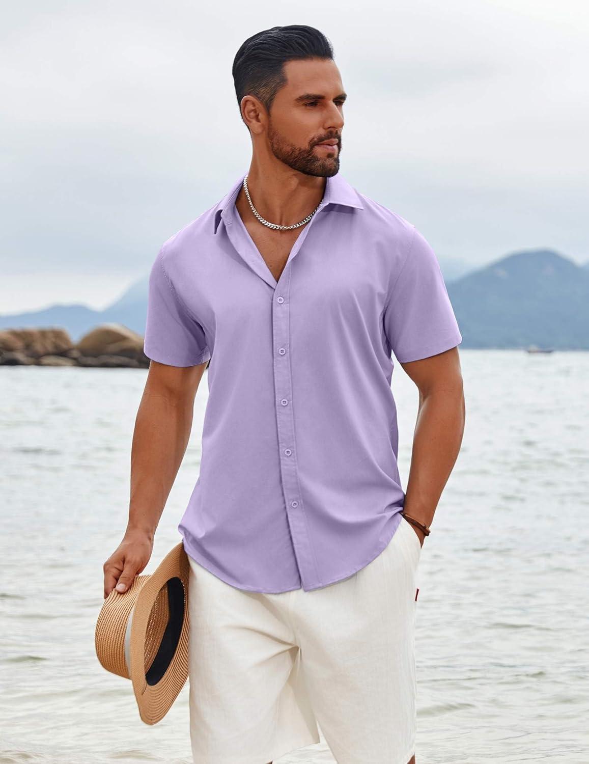 COOFANDY Men's Button Down Shirts Short Sleeve Casual Summer Beach Shirts Vacation Wedding Shirts(Lavender)