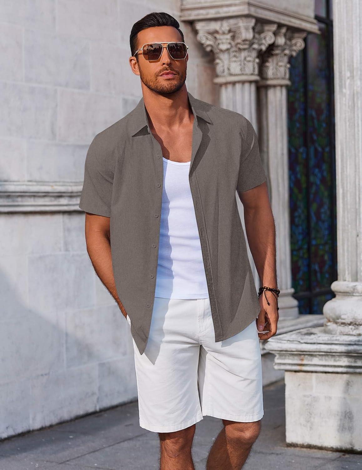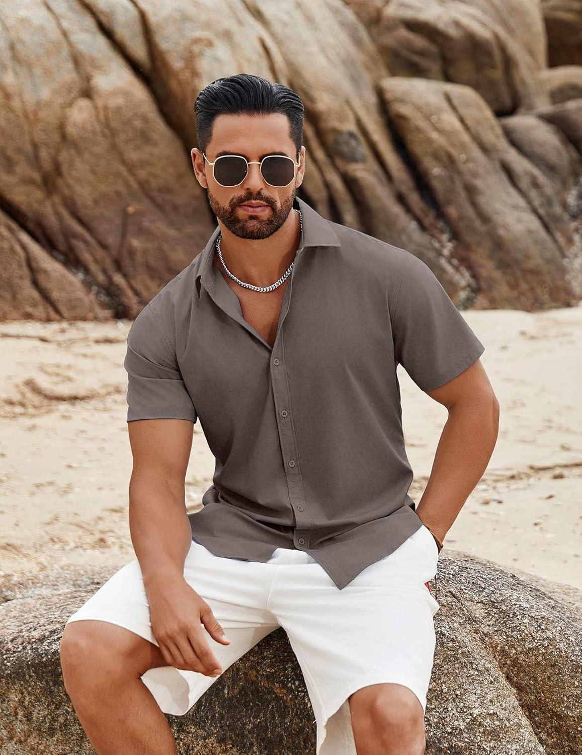 Save big on COOFANDY Men’s Button Down Shirts Short Sleeve Casual Summer Beach Shirts Vacation Wedding Shirts(Light Brown) and accessories during our BOGO sale. Buy one, get one 50% off!