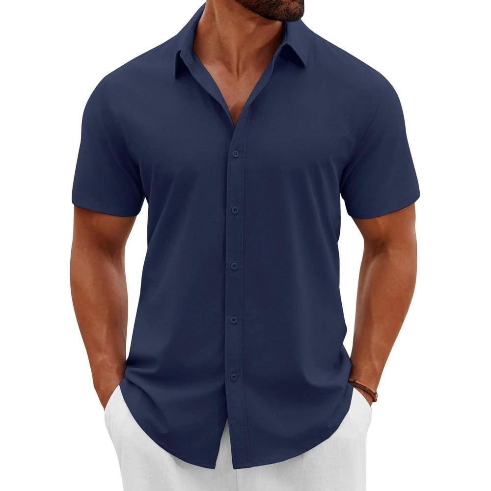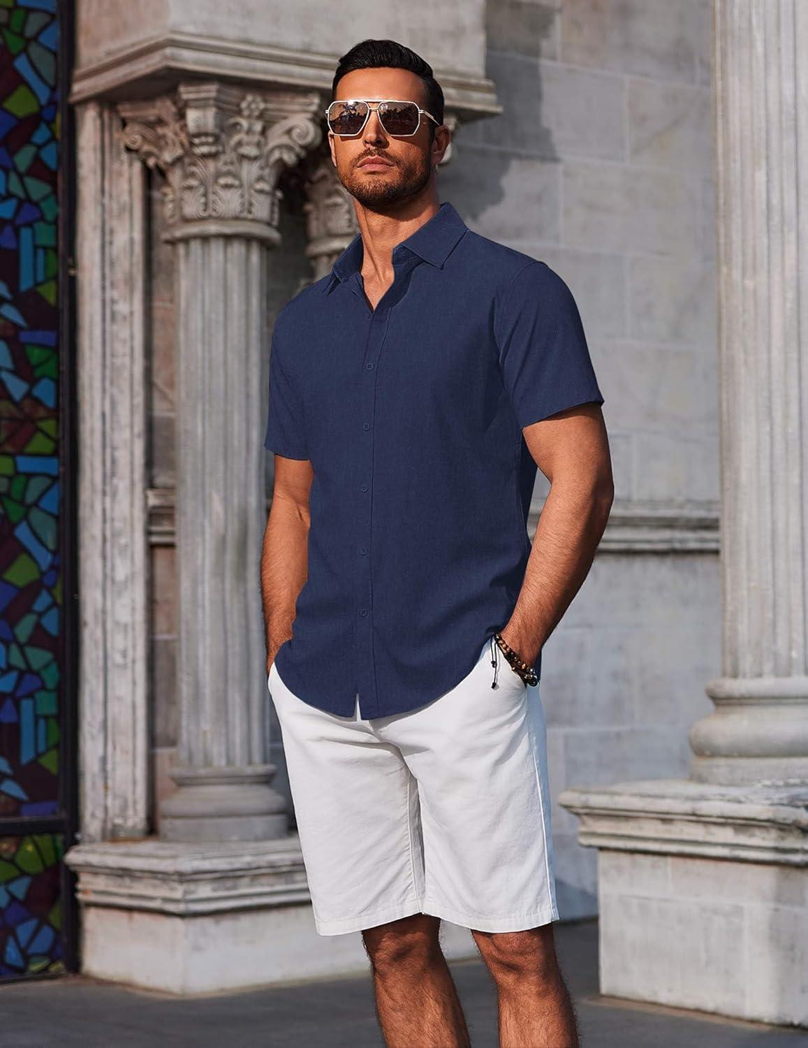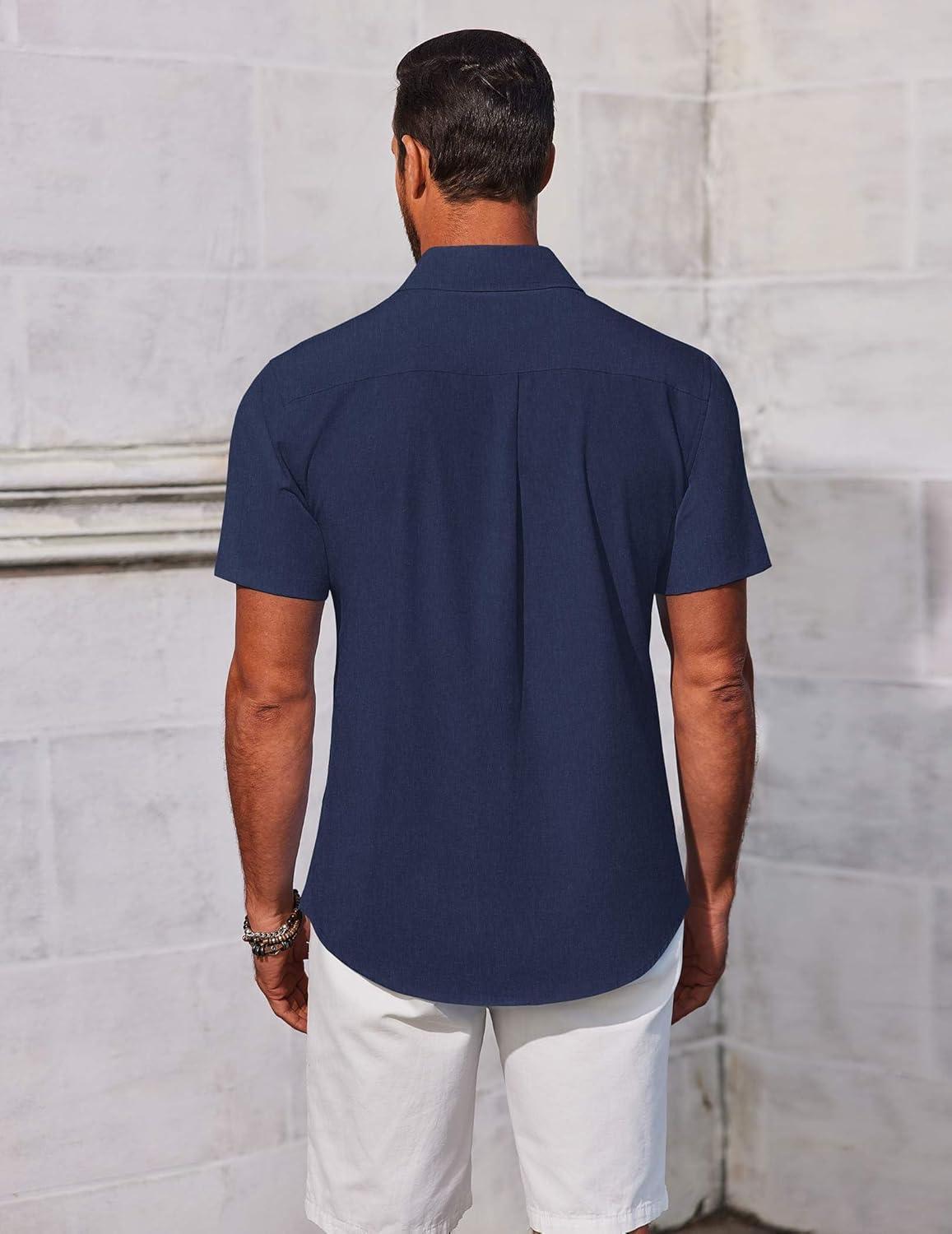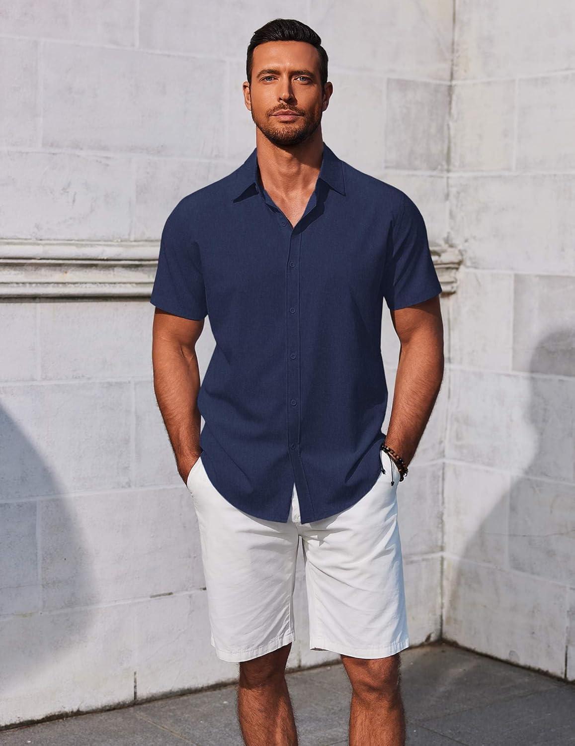 COOFANDY Men’s Button Down Shirts Short Sleeve Casual Summer Beach Shirts Vacation Wedding Shirts(Navy Blue)