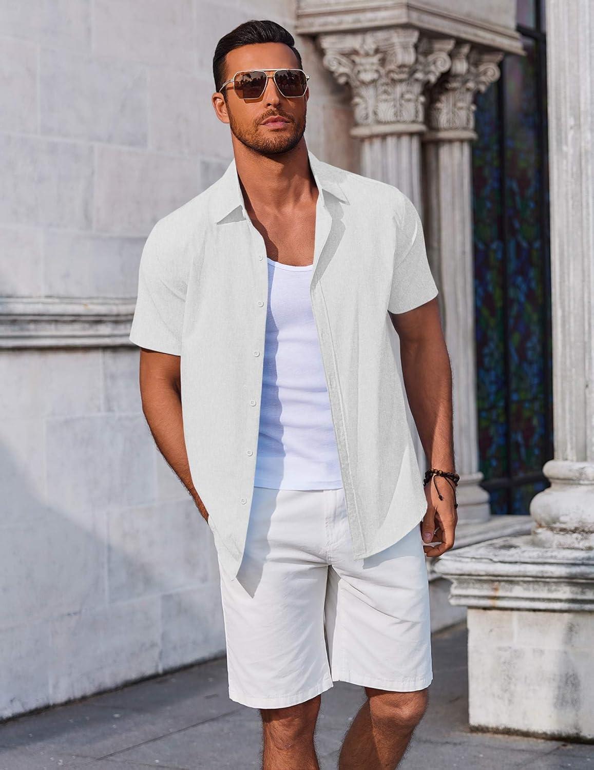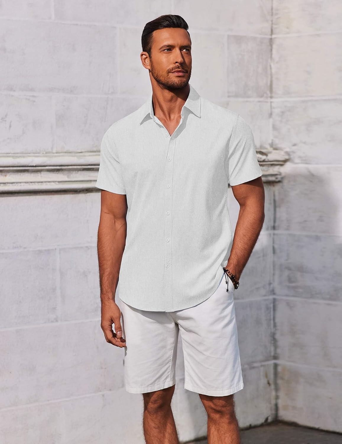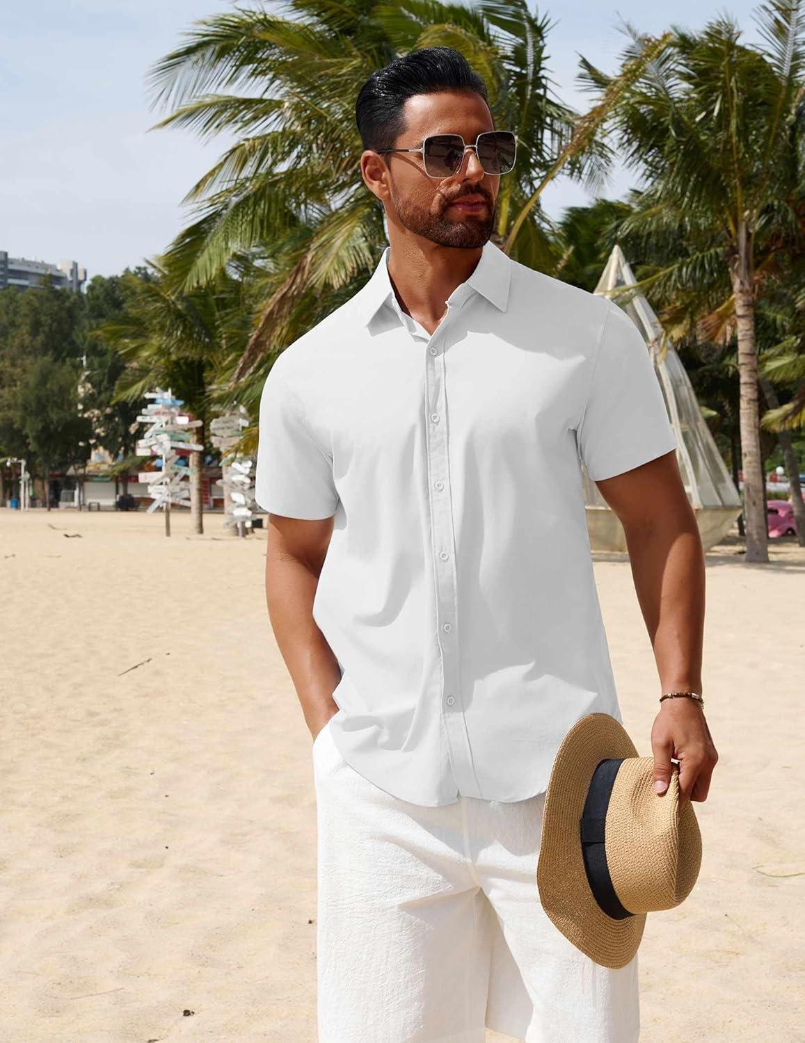 COOFANDY Men's Button Down Shirts Short Sleeve Casual Summer Beach Shirts Vacation Wedding Shirts(White)