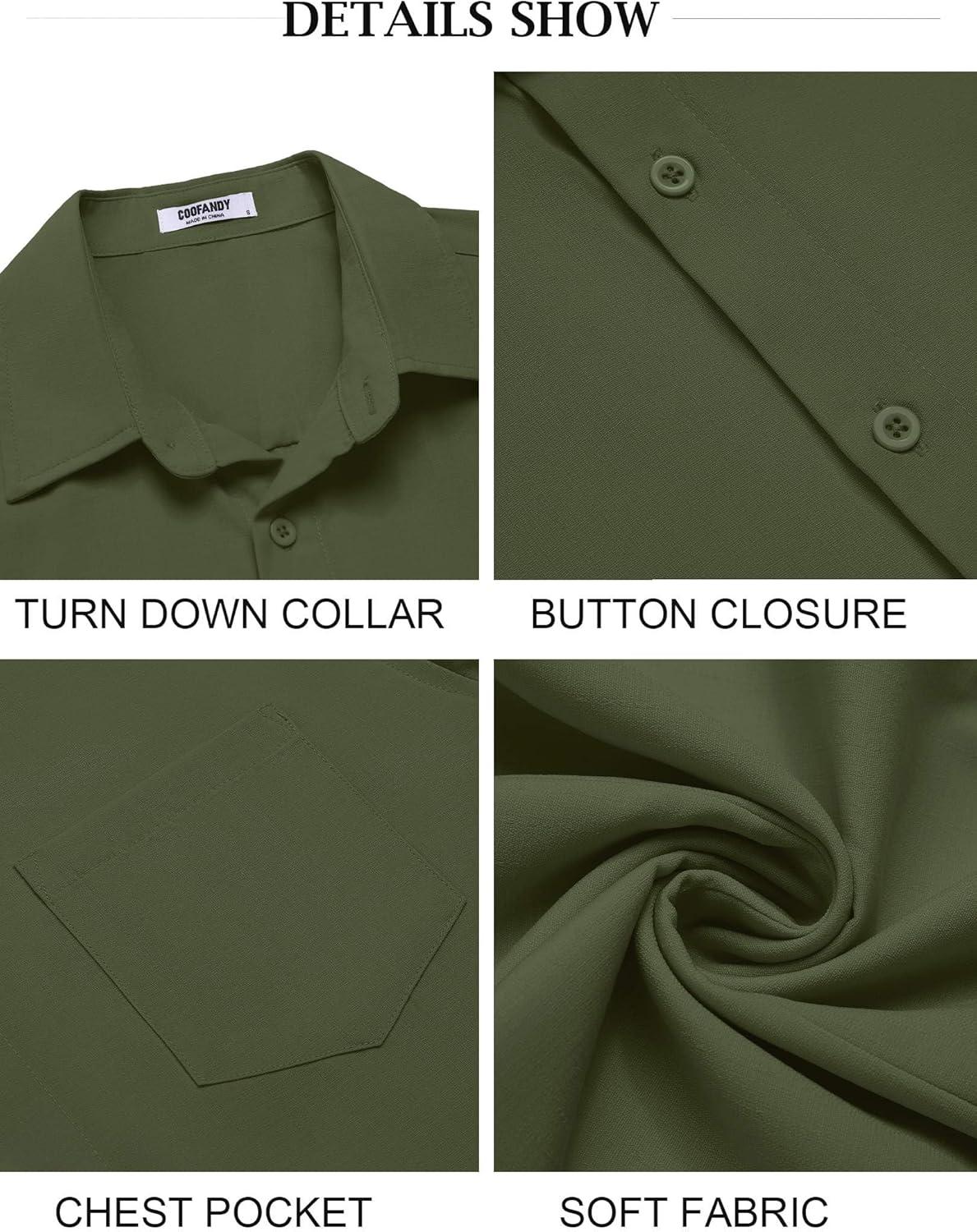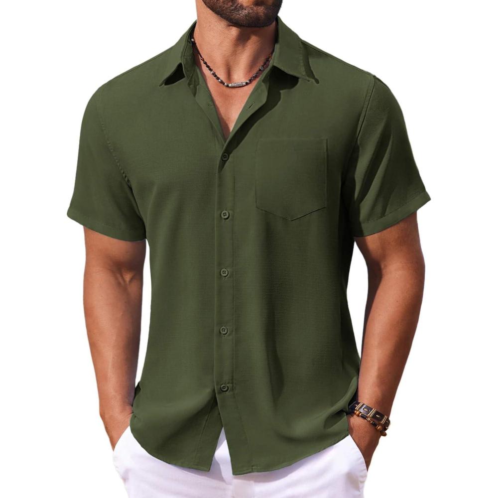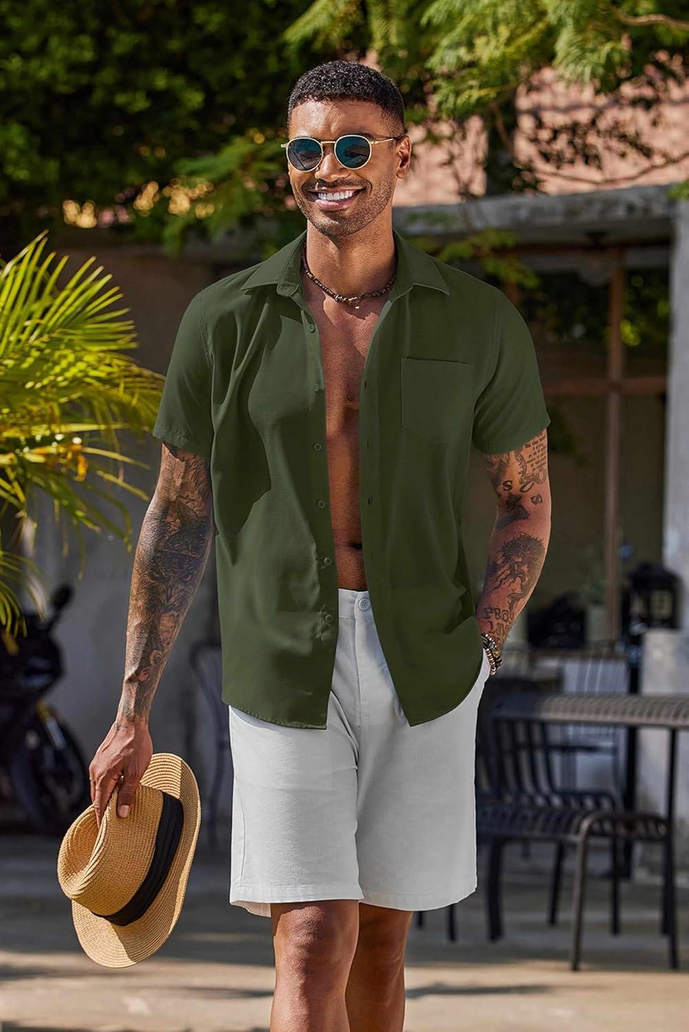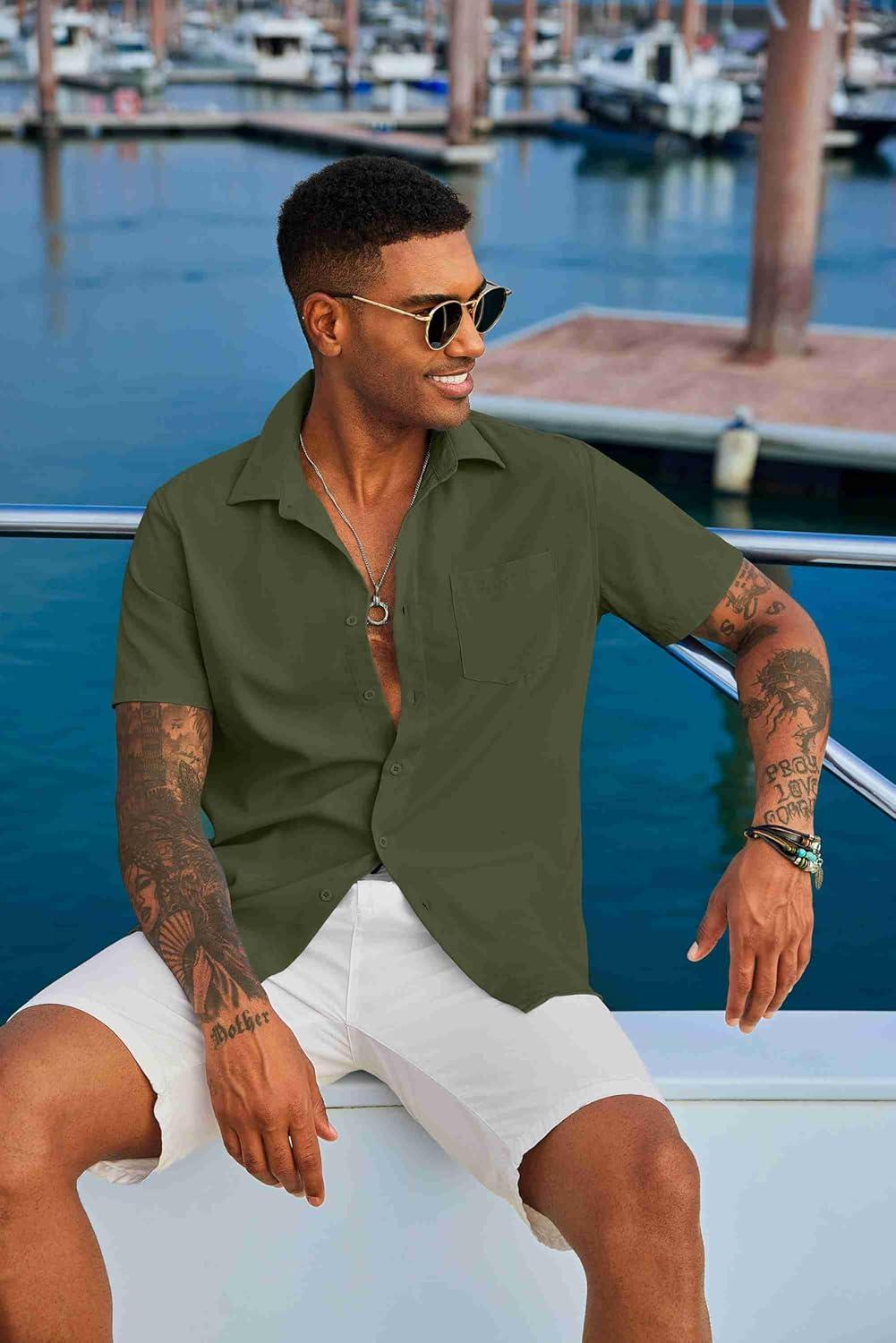 COOFANDY Men's Button Down Shirts Short Sleeve Casual Summer Shirts Beach Wedding Shirt with Pocket(Army Green)