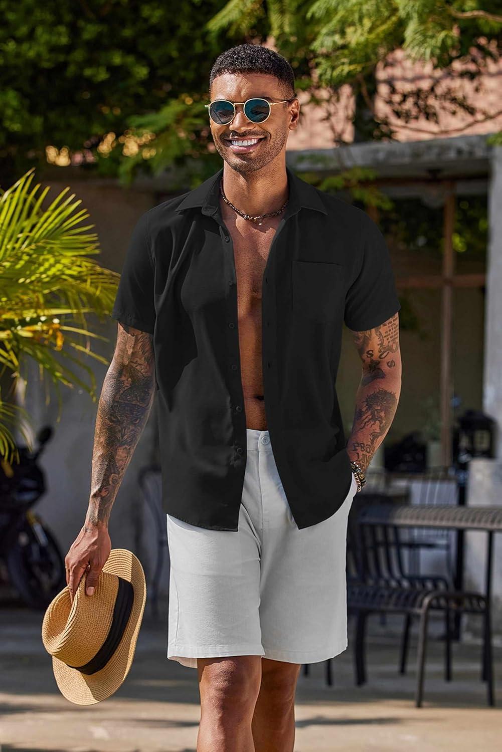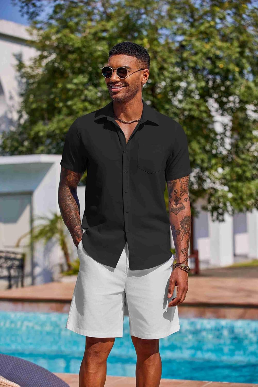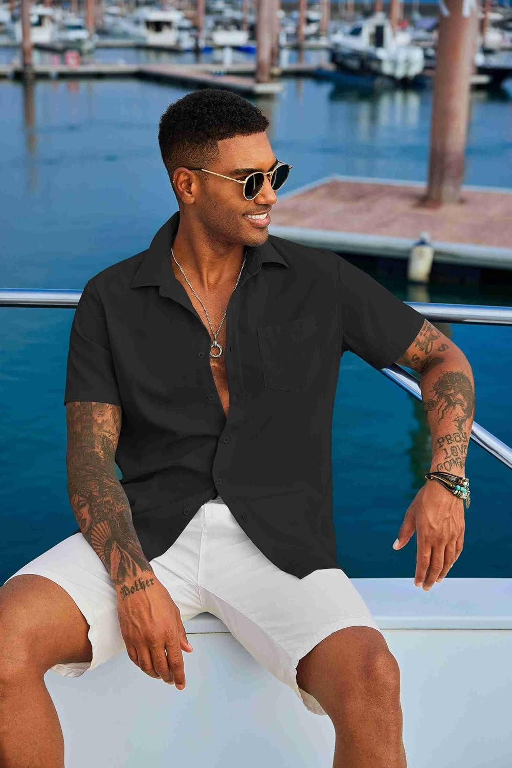 COOFANDY Men’s Button Down Shirts Short Sleeve Casual Summer Shirts Beach Wedding Shirt with Pocket(Black)