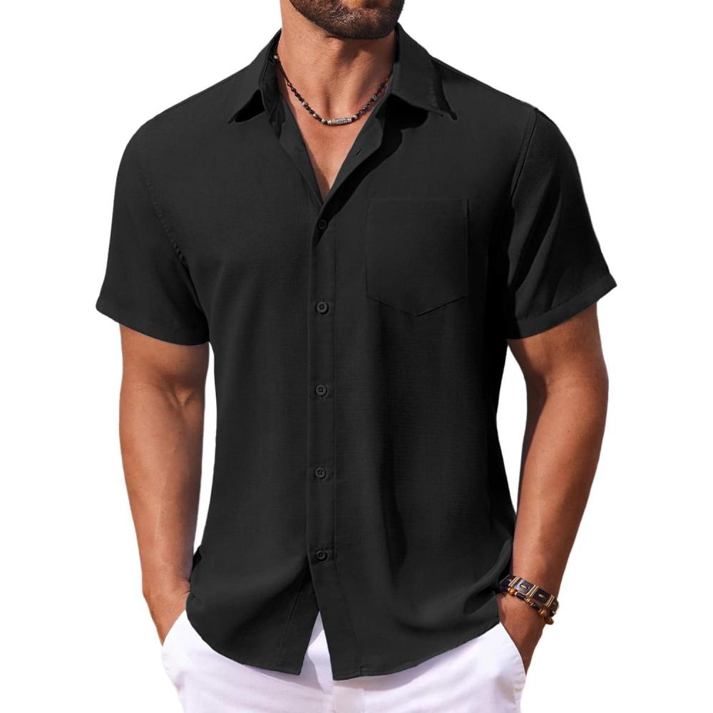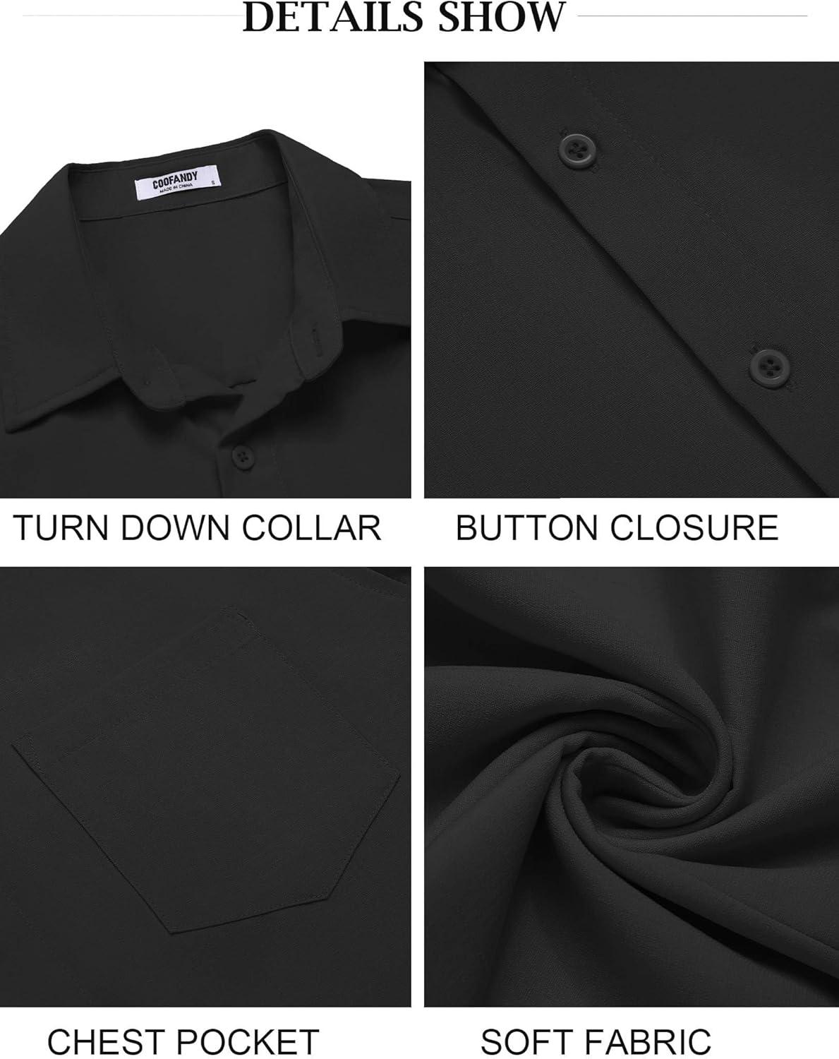 COOFANDY Men's Button Down Shirts Short Sleeve Casual Summer Shirts Beach Wedding Shirt with Pocket(Black)