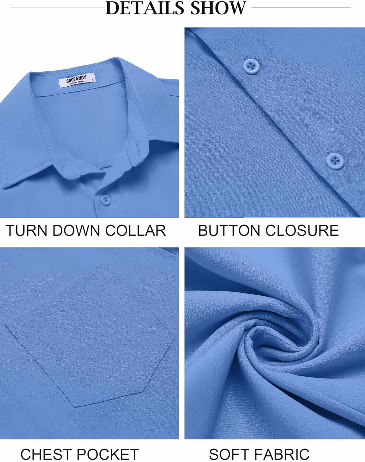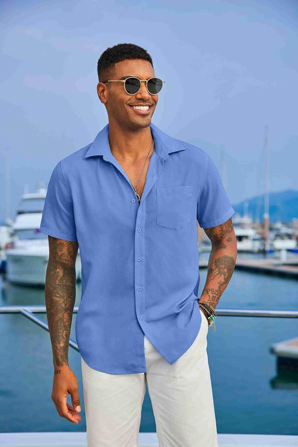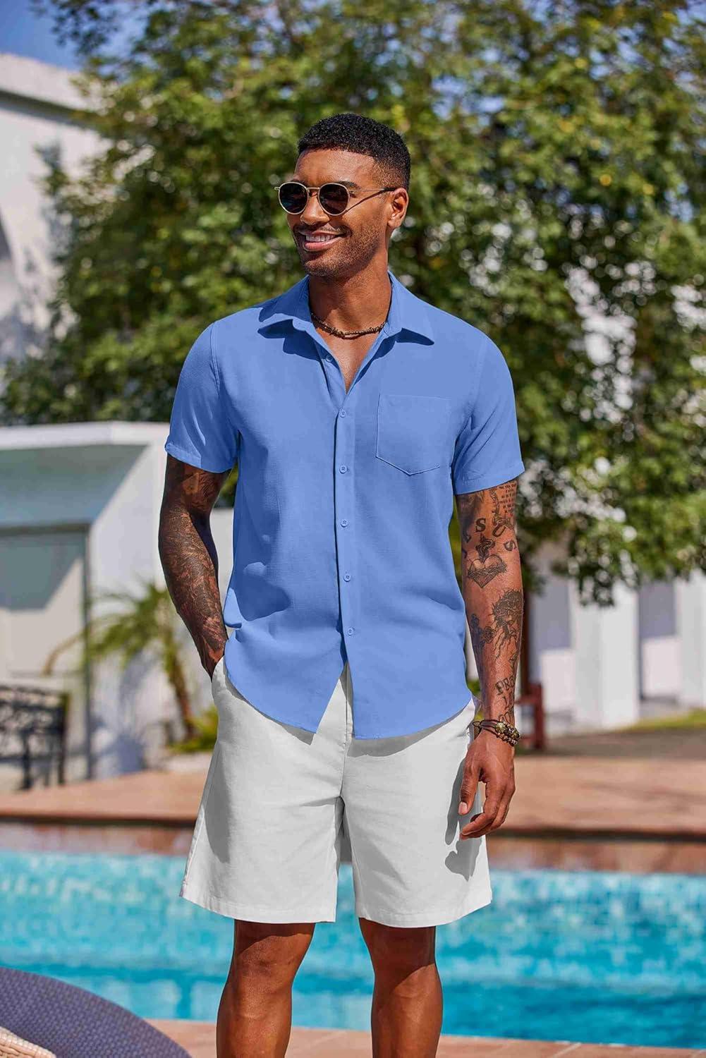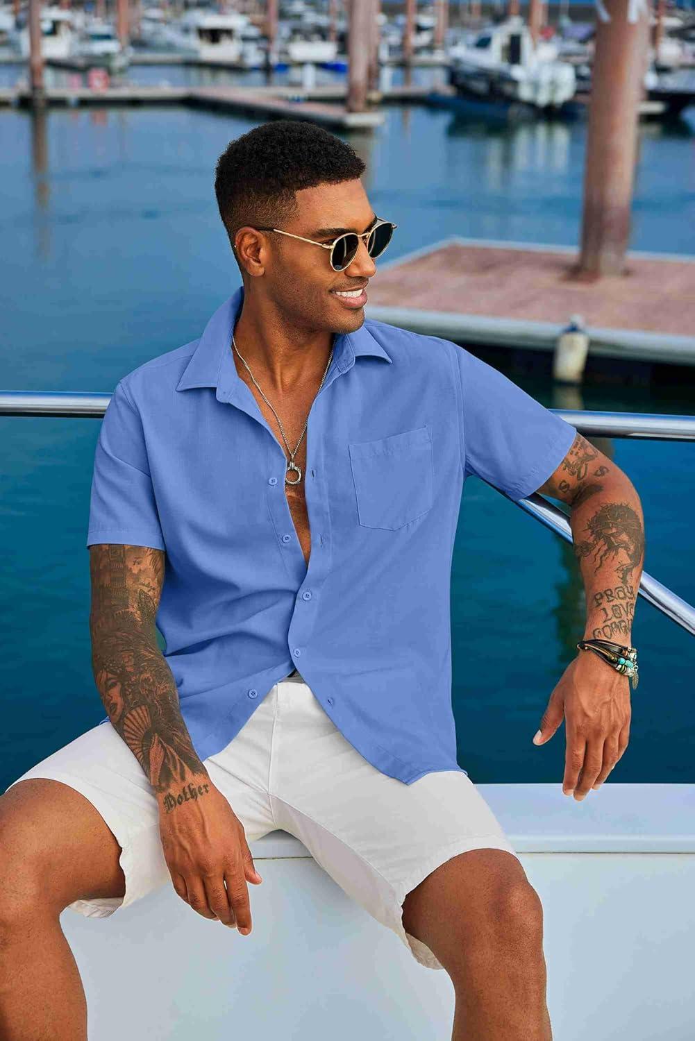 COOFANDY Men’s Button Down Shirts Short Sleeve Casual Summer Shirts Beach Wedding Shirt with Pocket(Blue)