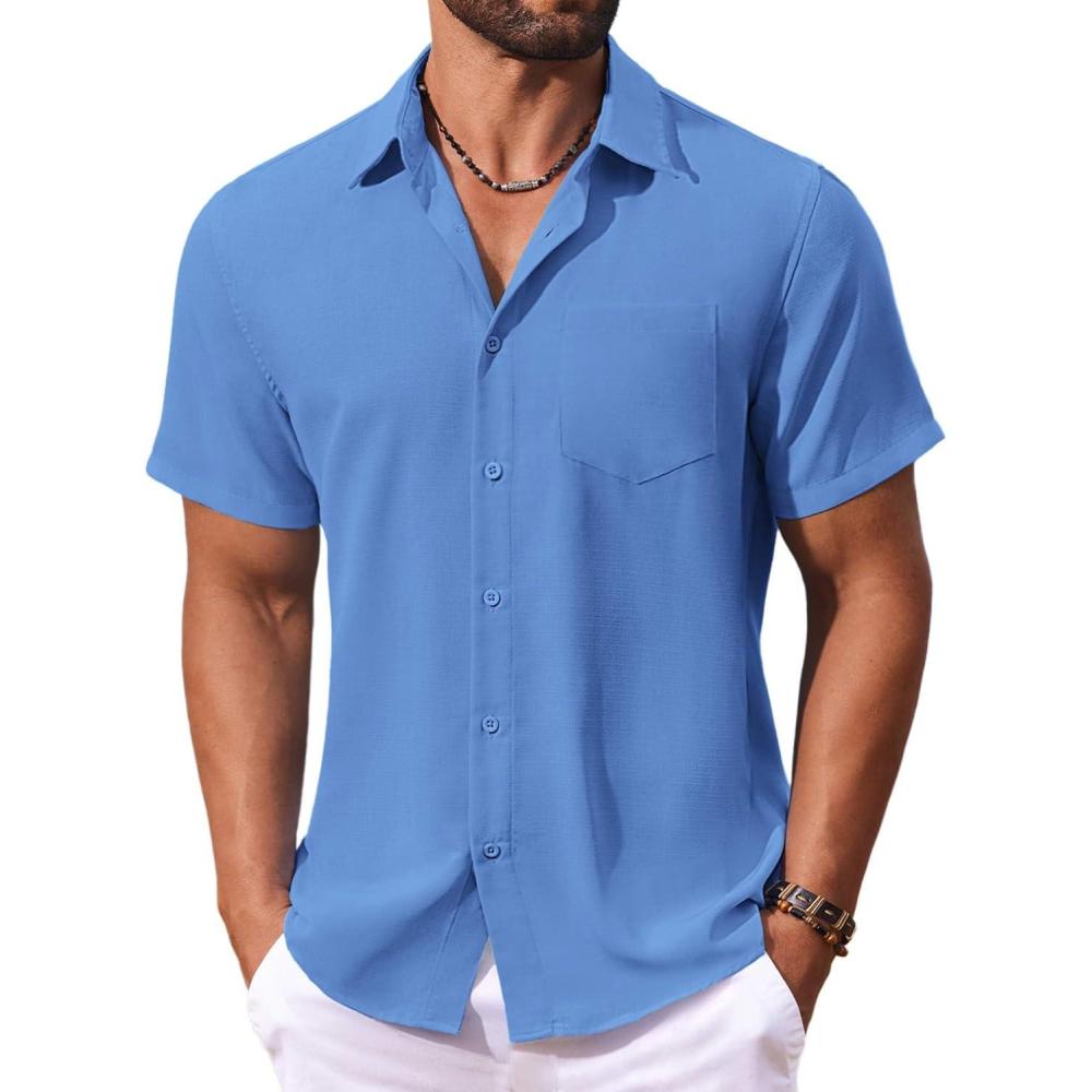 COOFANDY Men's Button Down Shirts Short Sleeve Casual Summer Shirts Beach Wedding Shirt with Pocket(Blue)