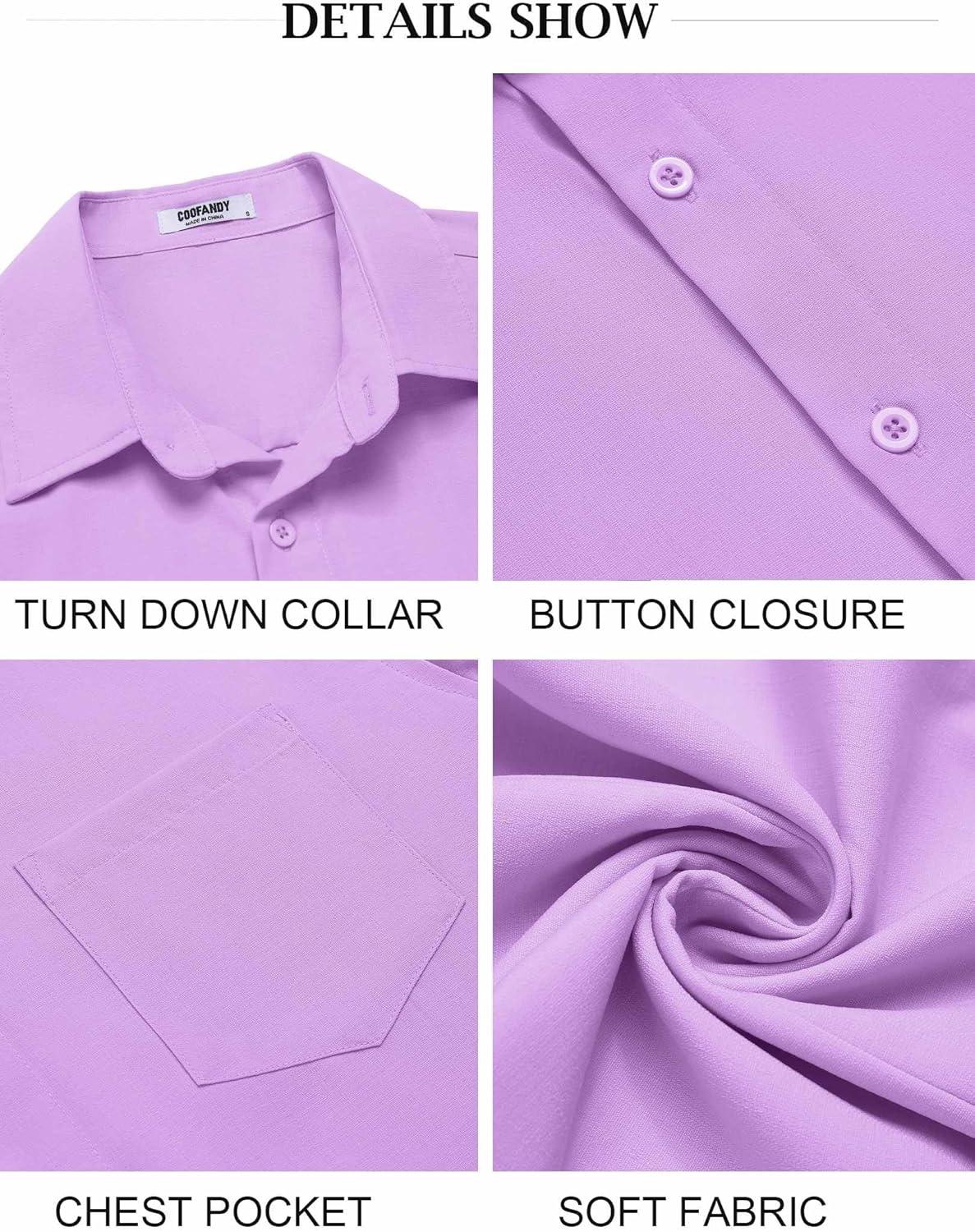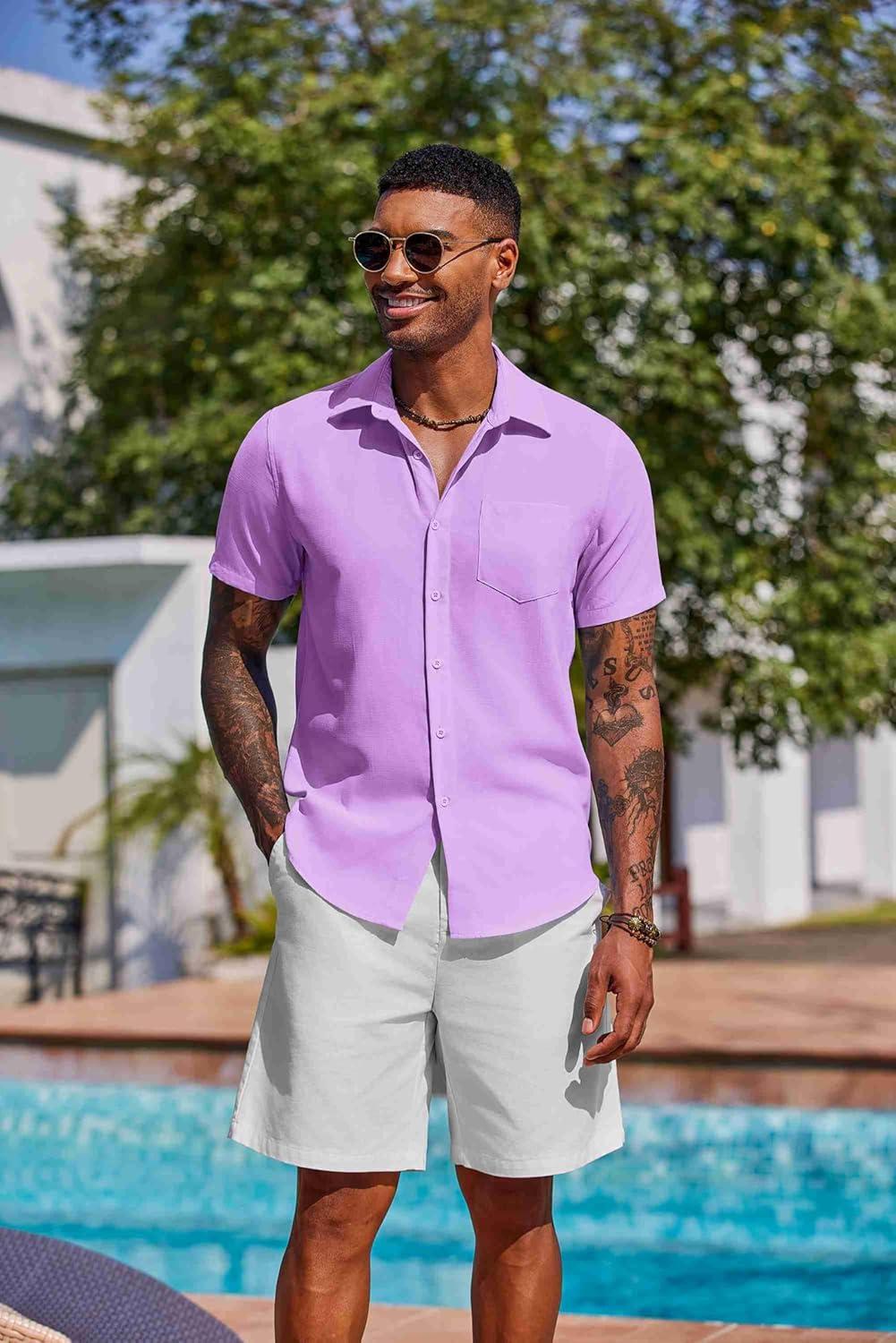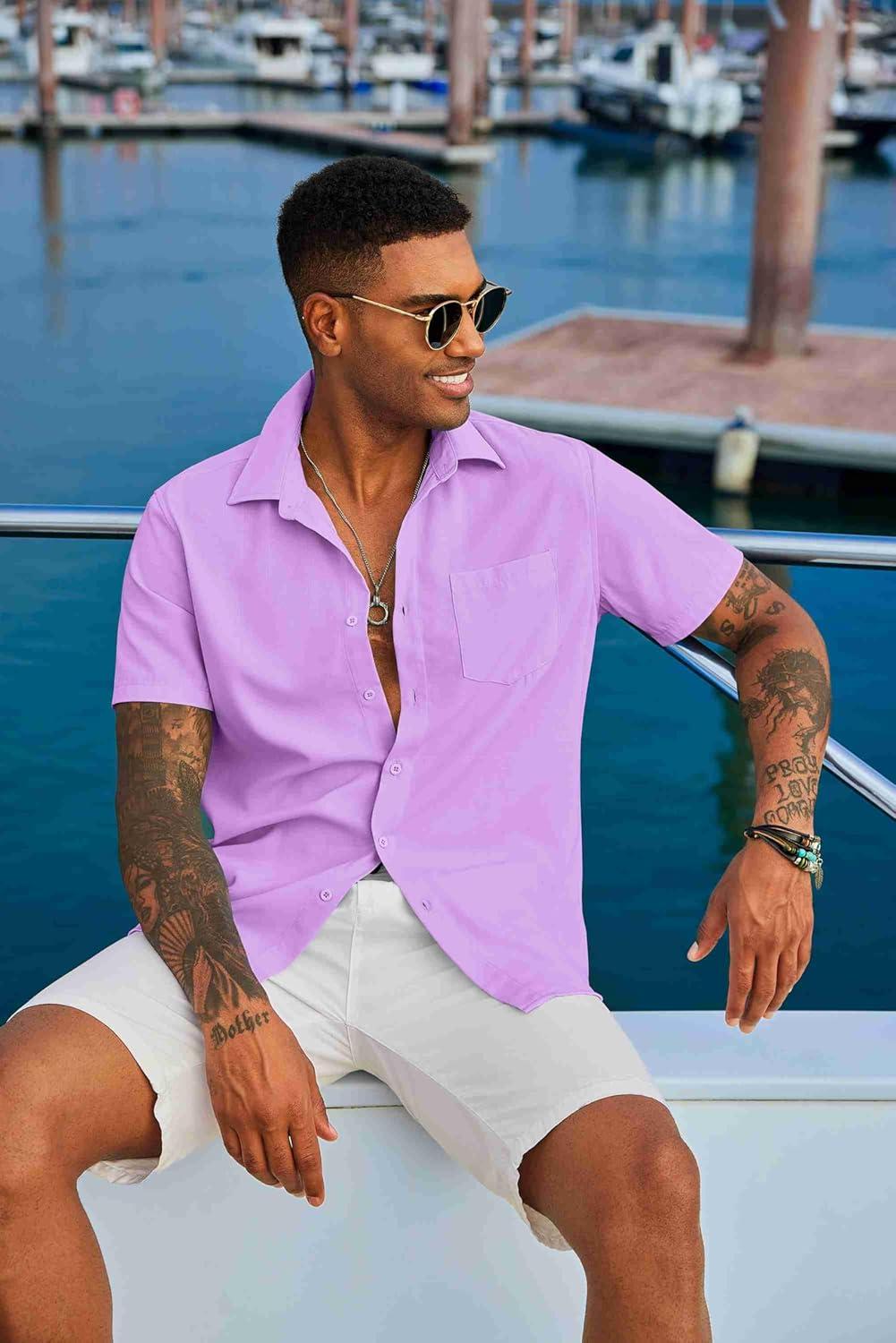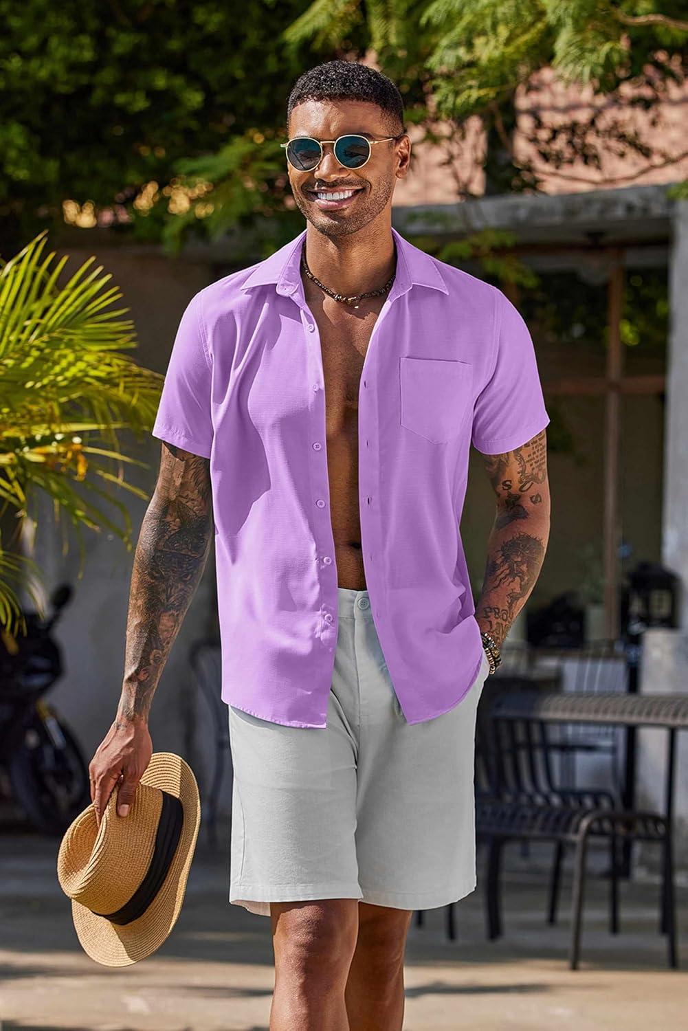 COOFANDY Men’s Button Down Shirts Short Sleeve Casual Summer Shirts Beach Wedding Shirt with Pocket(Lavender)