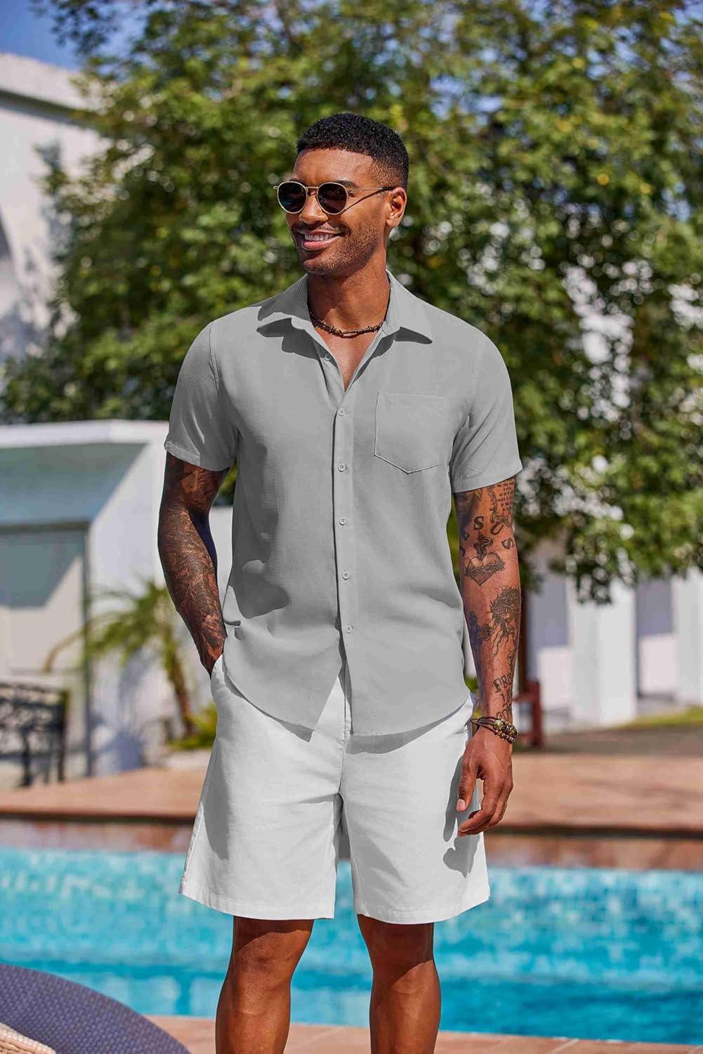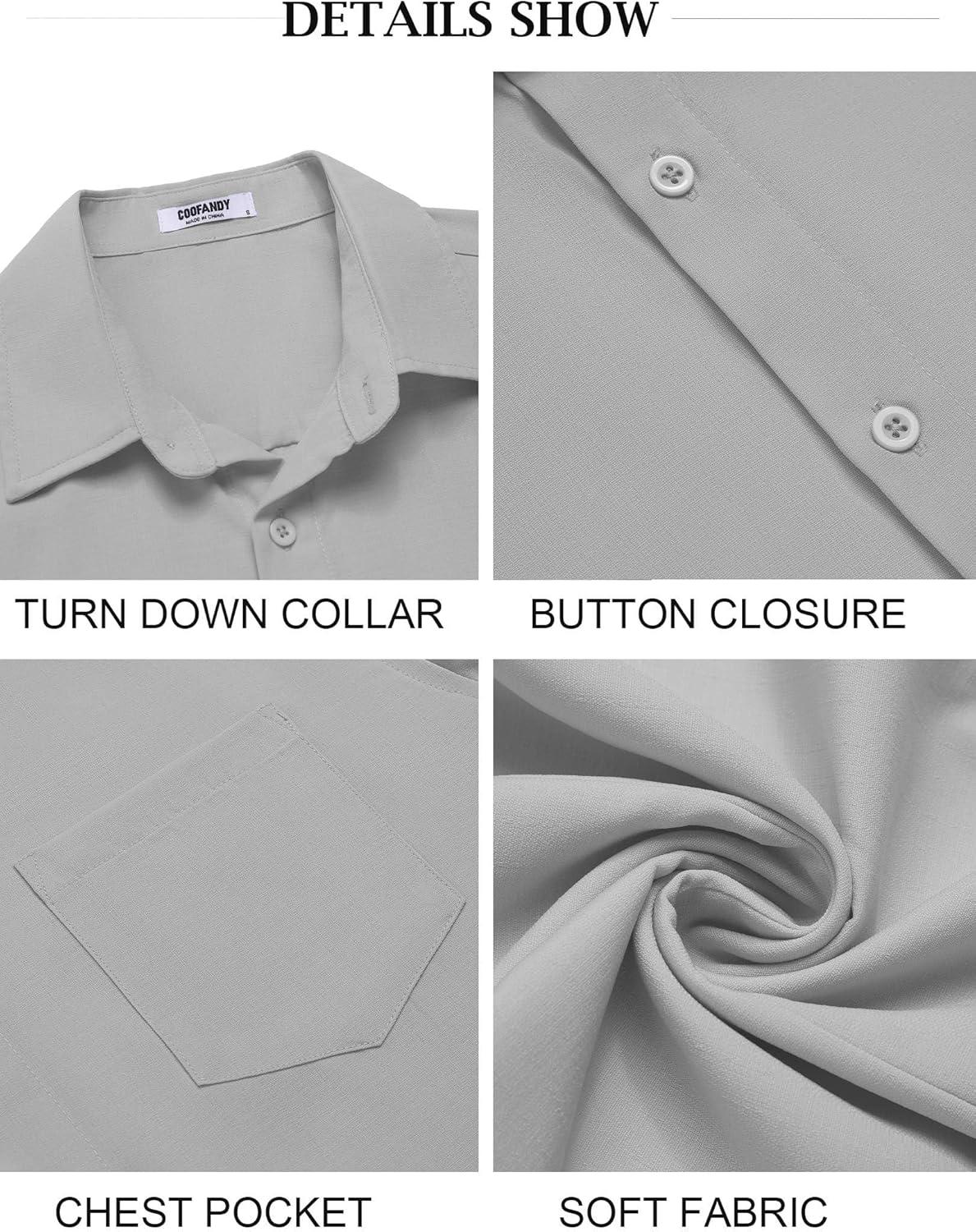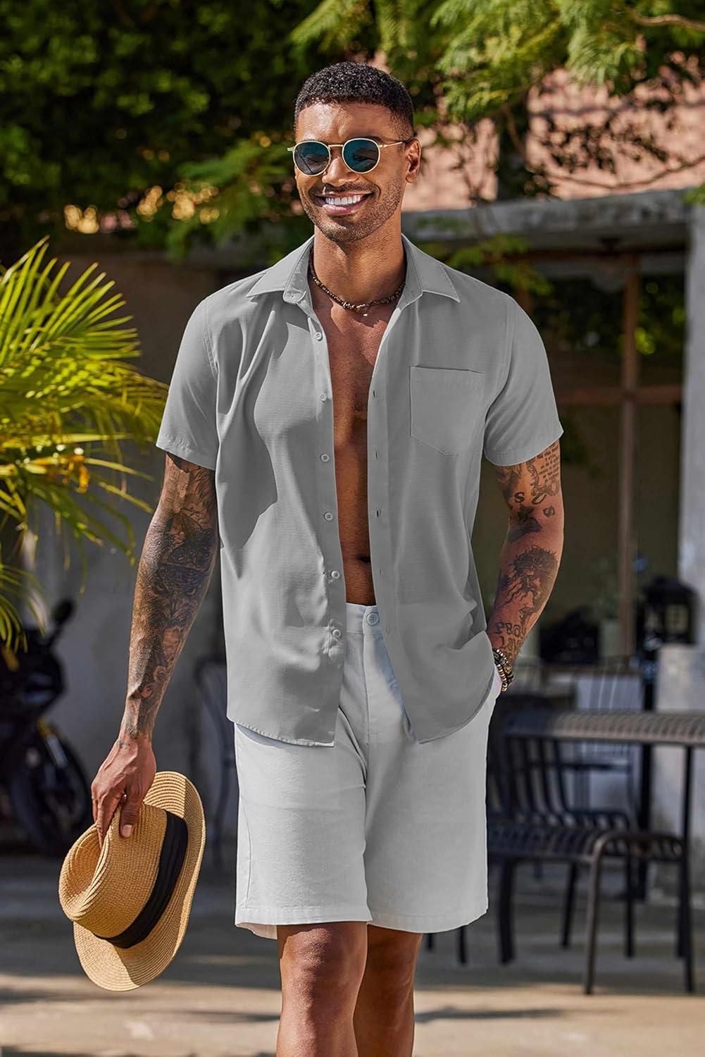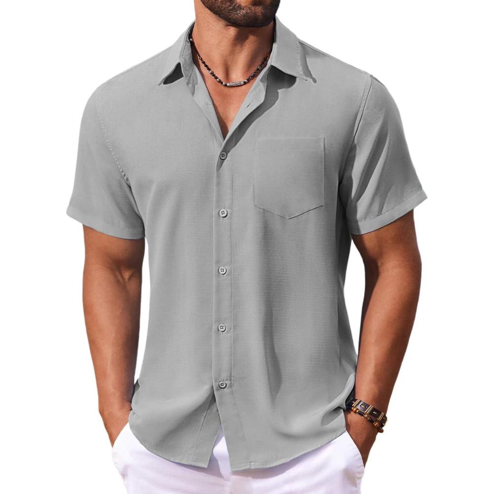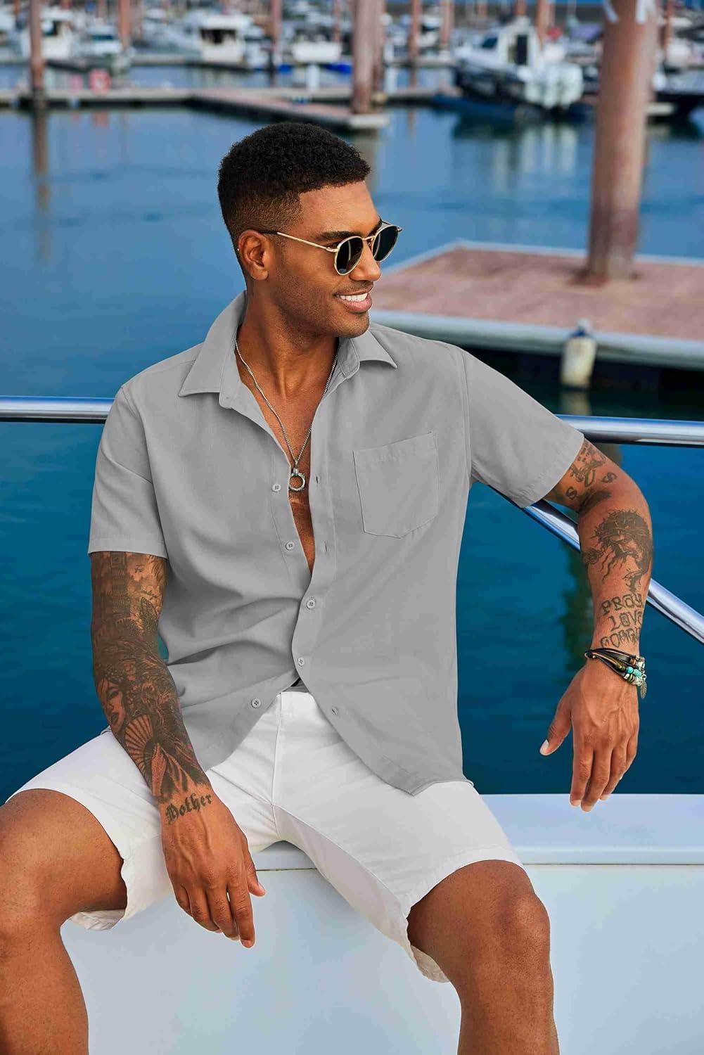 COOFANDY Men’s Button Down Shirts Short Sleeve Casual Summer Shirts Beach Wedding Shirt with Pocket(Light Grey)