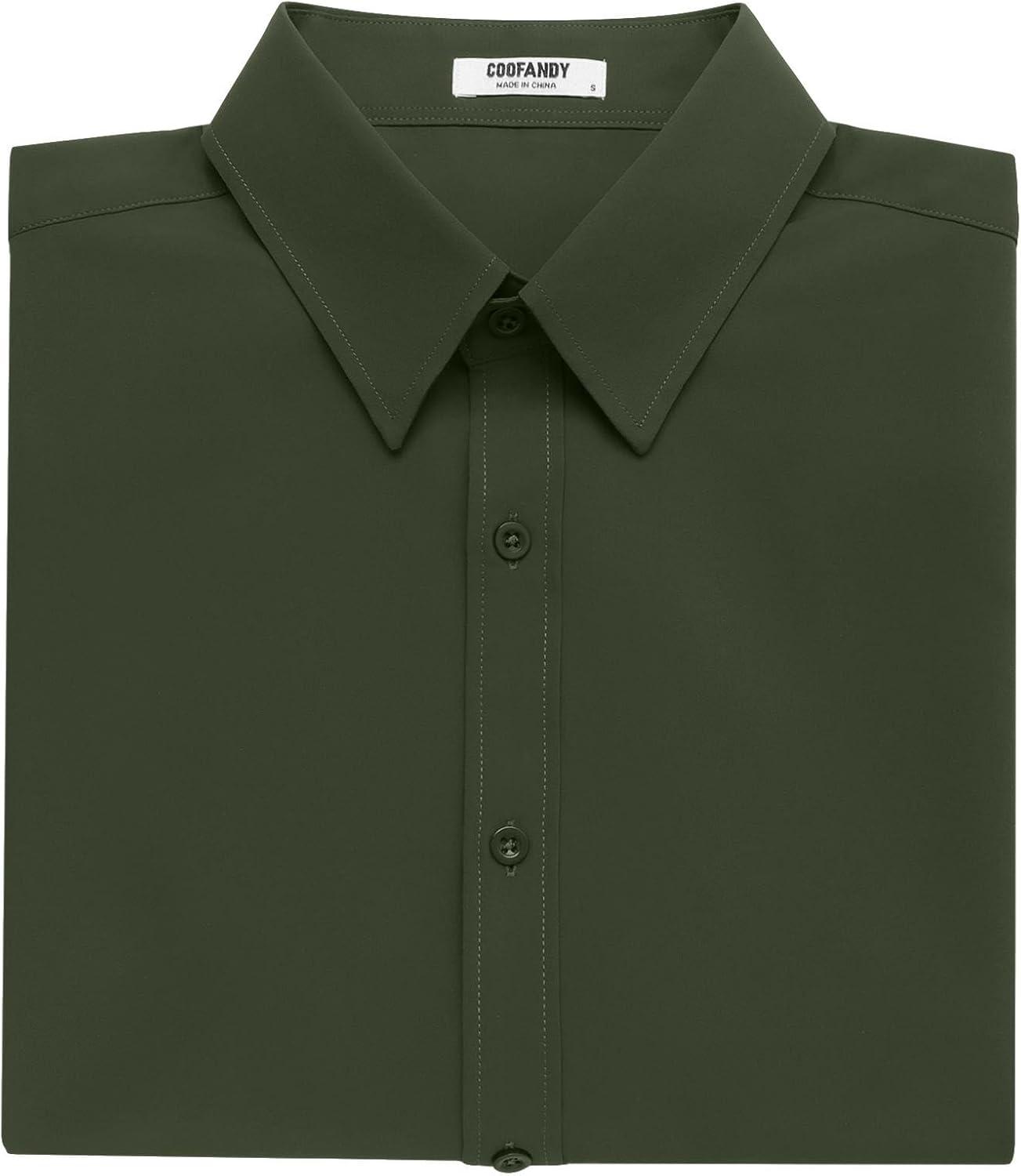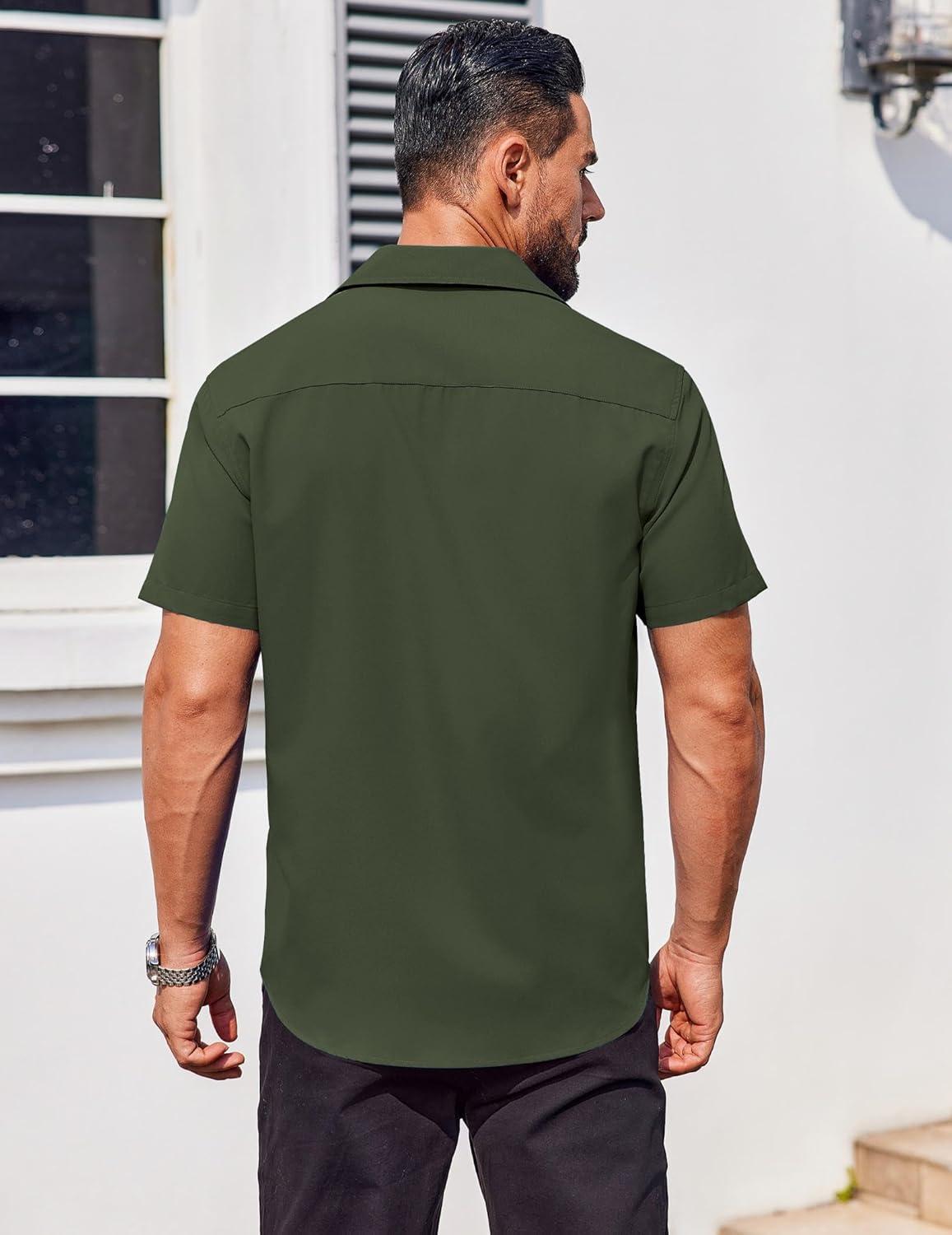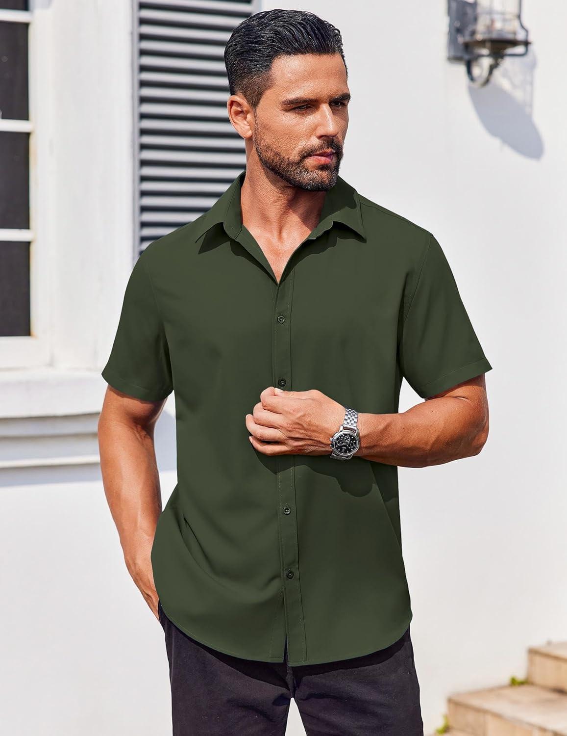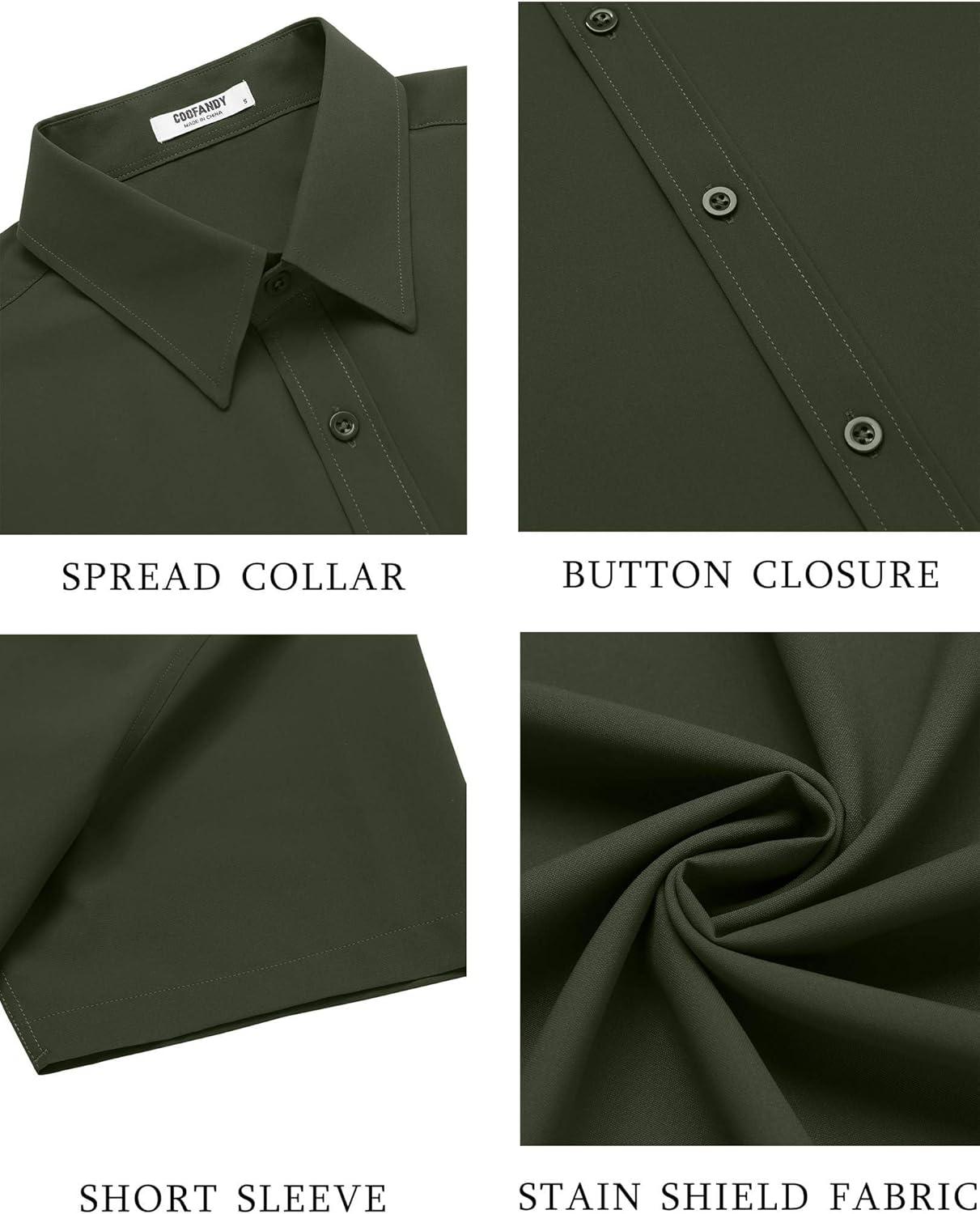 COOFANDY Men's Button Down Shirts Stain Shield Dress Shirts Short Sleeve Summer Business Casual Shirts(Army Green)