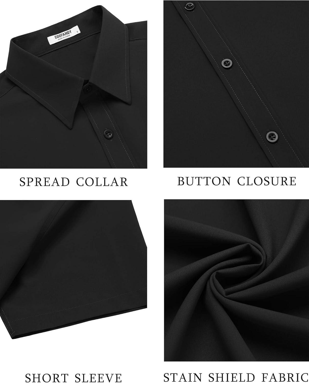 COOFANDY Men's Button Down Shirts Stain Shield Dress Shirts Short Sleeve Summer Business Casual Shirts(Black)