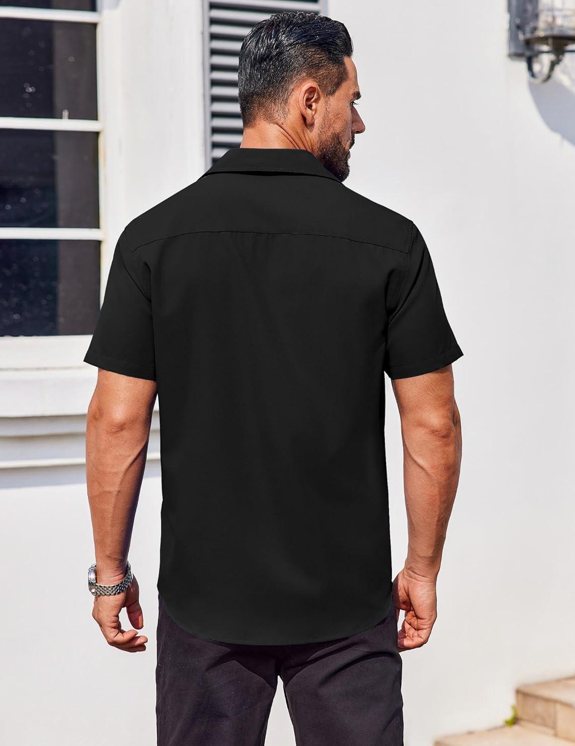 COOFANDY Men’s Button Down Shirts Stain Shield Dress Shirts Short Sleeve Summer Business Casual Shirts(Black)