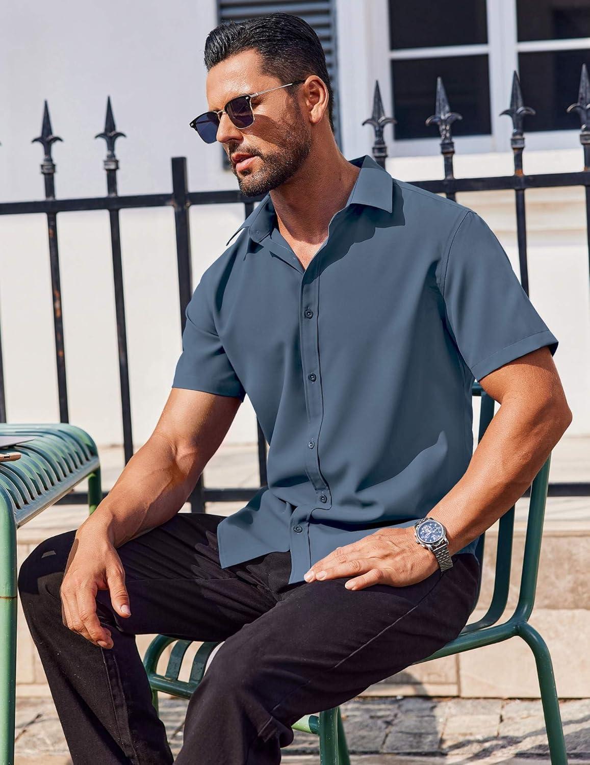 COOFANDY Men’s Button Down Shirts Stain Shield Dress Shirts Short Sleeve Summer Business Casual Shirts(Dark Grey)