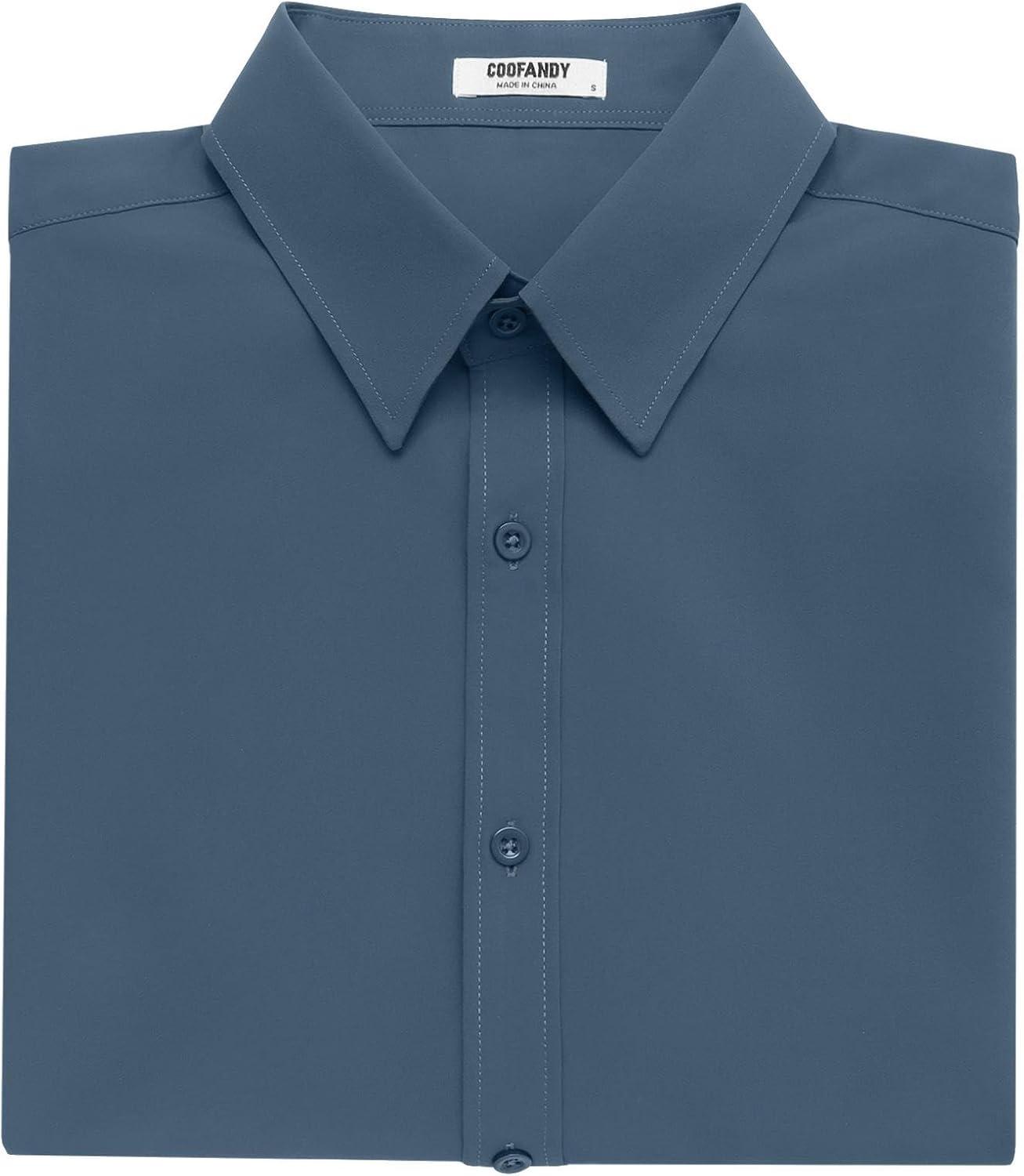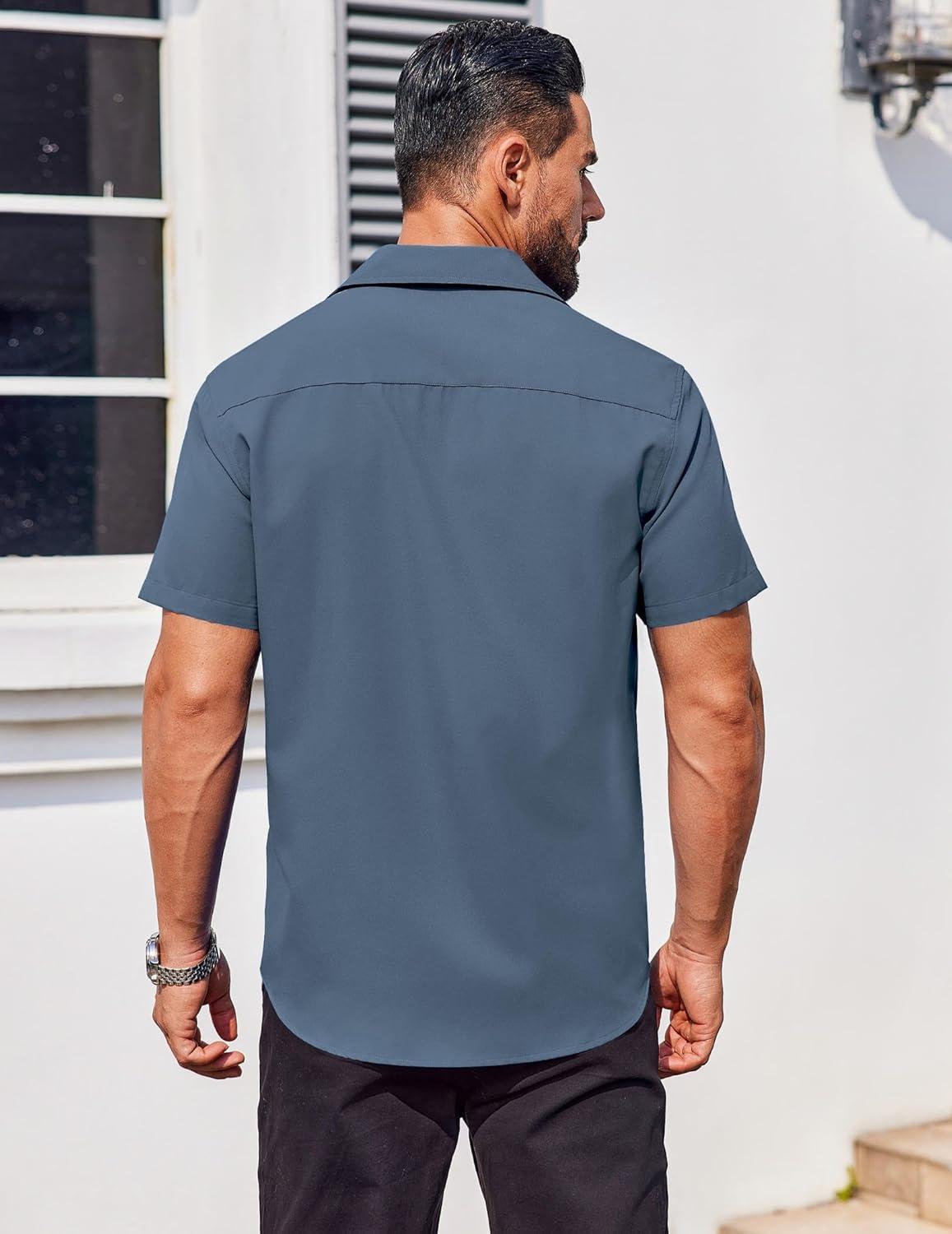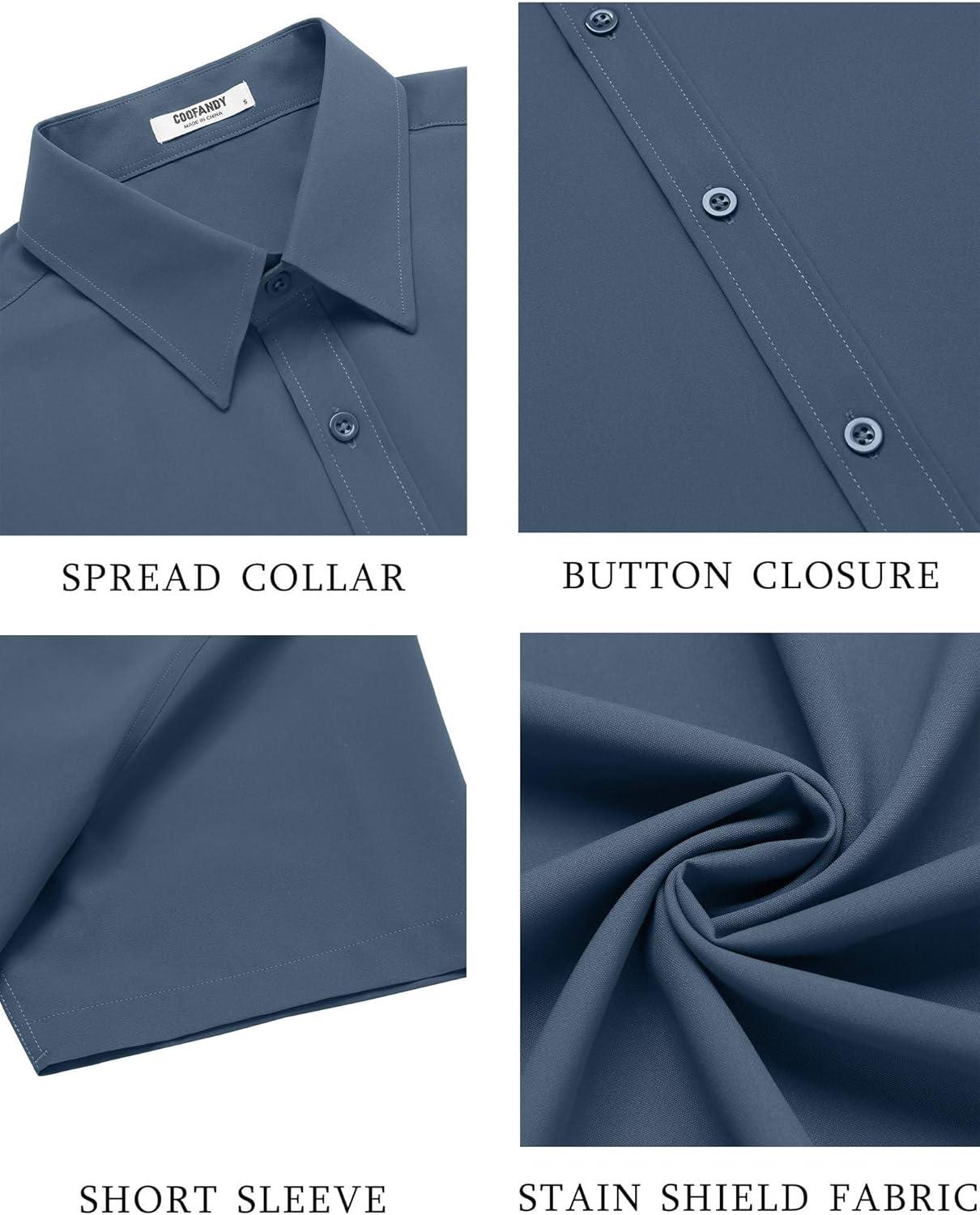 COOFANDY Men's Button Down Shirts Stain Shield Dress Shirts Short Sleeve Summer Business Casual Shirts(Blue)
