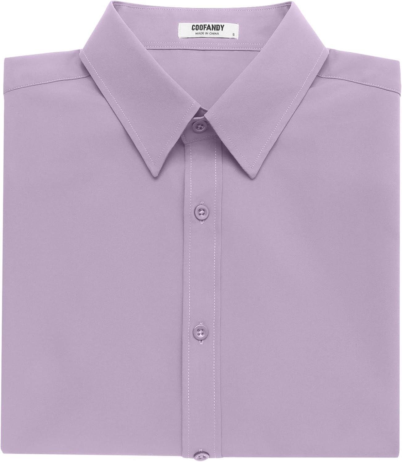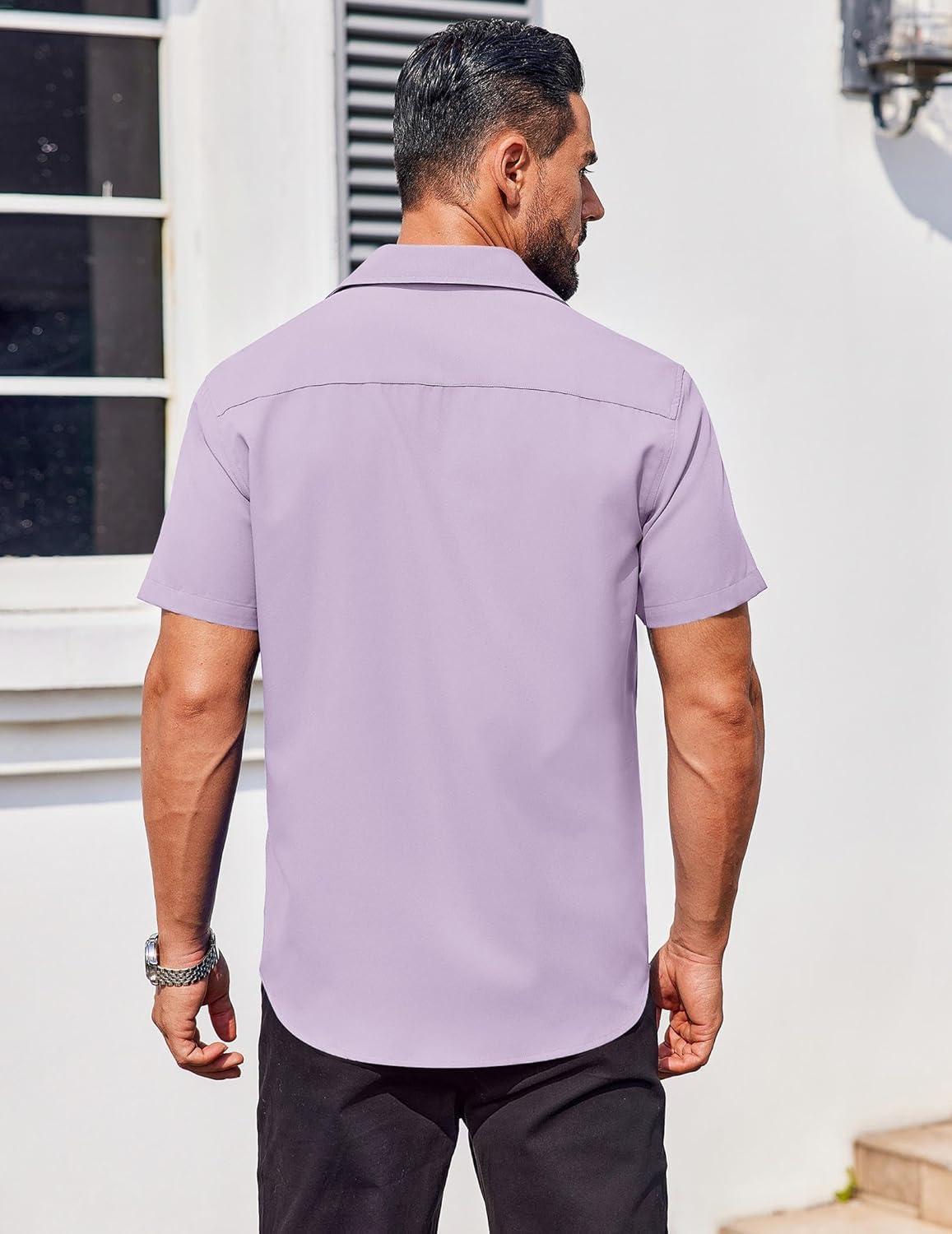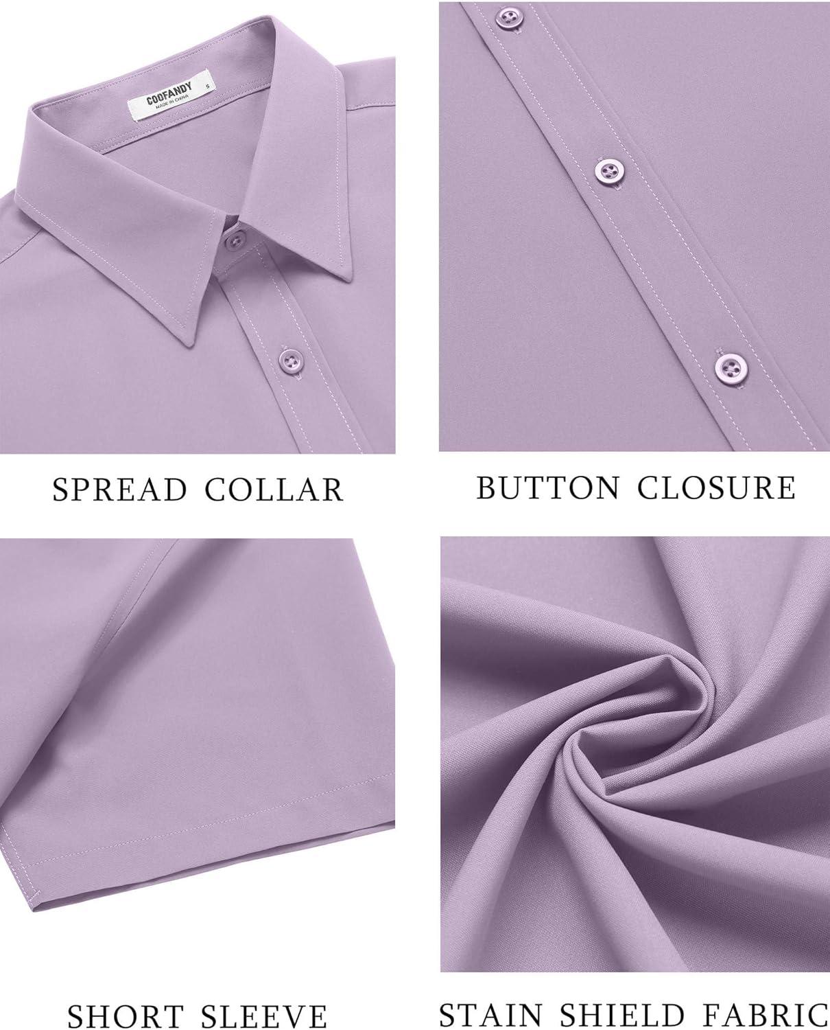 COOFANDY Men's Button Down Shirts Stain Shield Dress Shirts Short Sleeve Summer Business Casual Shirts(Lavender)