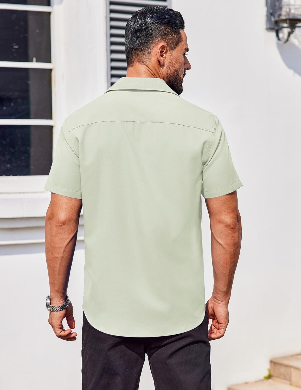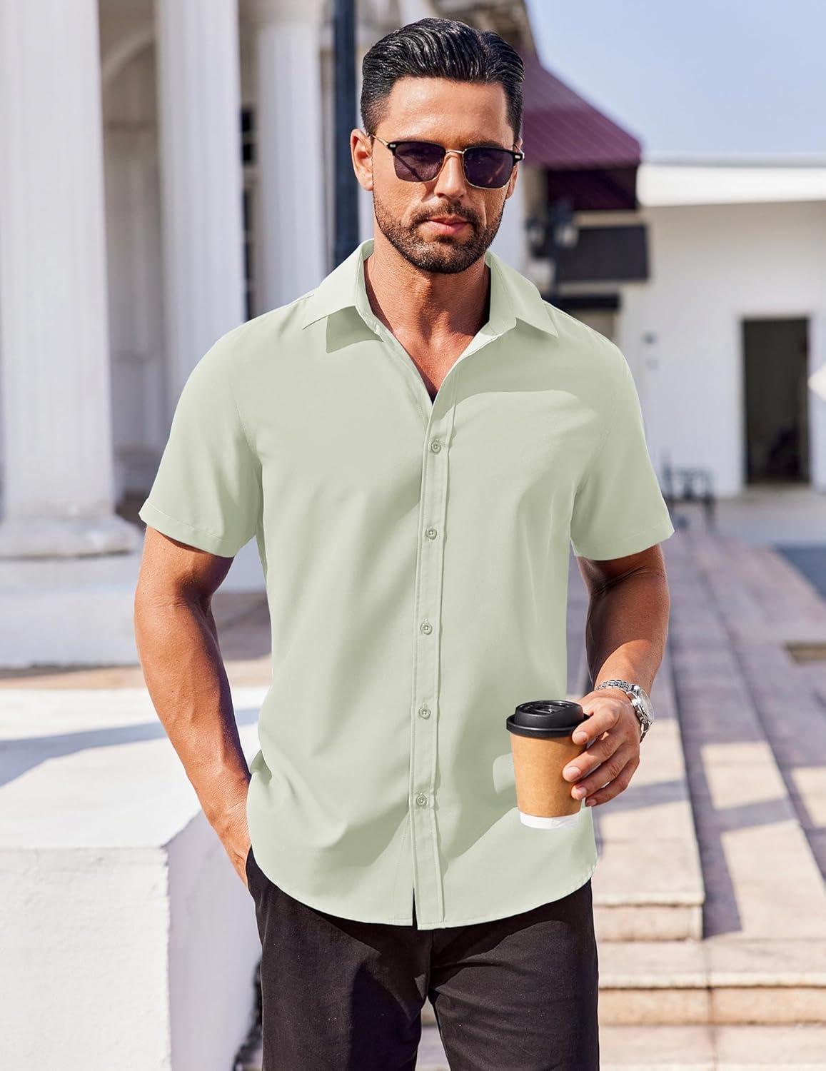 COOFANDY Men's Button Down Shirts Stain Shield Dress Shirts Short Sleeve Summer Business Casual Shirts(Light Green)