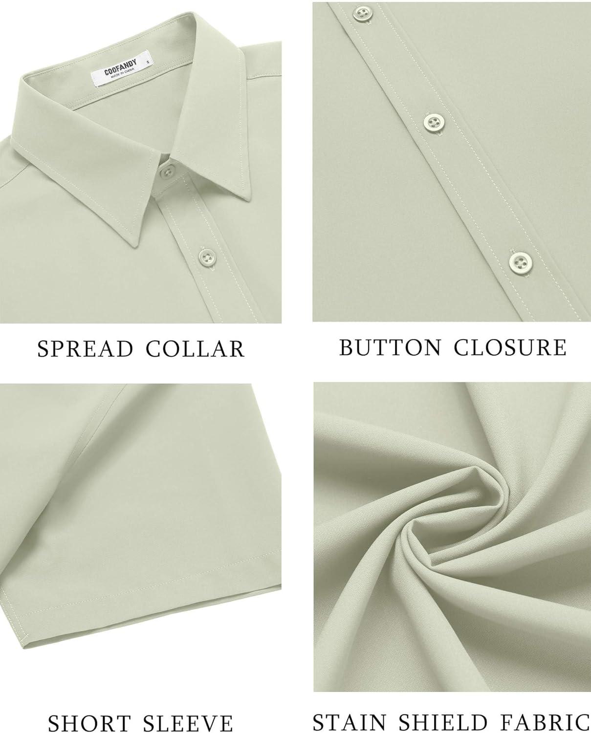 imageCOOFANDY Mens Button Down Shirts Stain Shield Dress Shirts Short Sleeve Summer Business Casual ShirtsLight Green