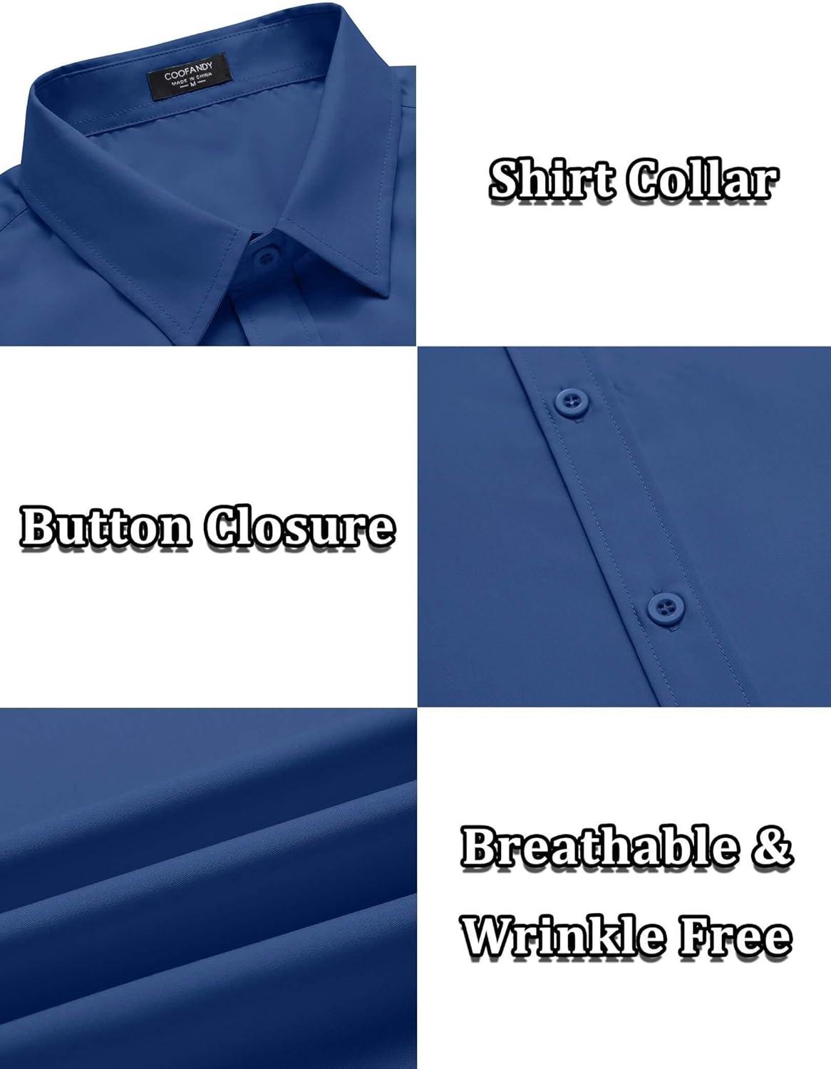 COOFANDY Men's Button Down Shirts Stain Shield Dress Shirts Short Sleeve Summer Business Casual Shirts(Navy)