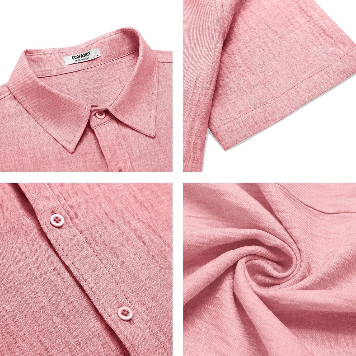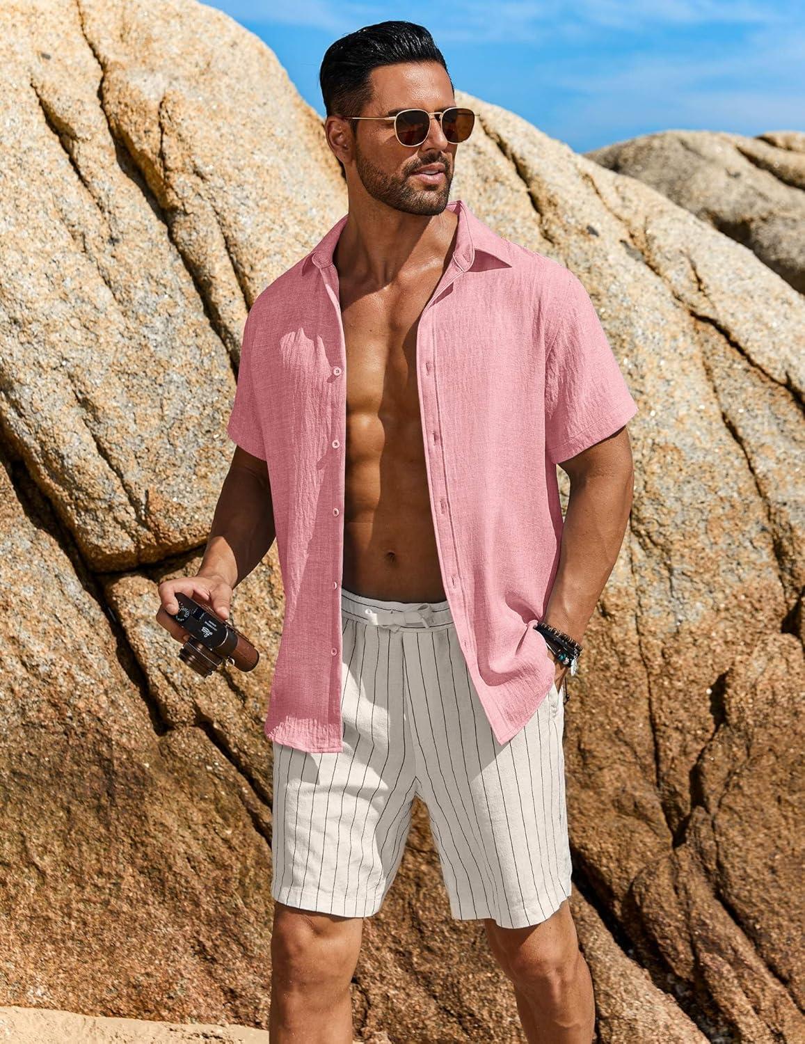 imageCOOFANDY Mens Button Down Short Sleeve Shirt Casual Beach Shirt Summer Vacation Textured ShirtsPink