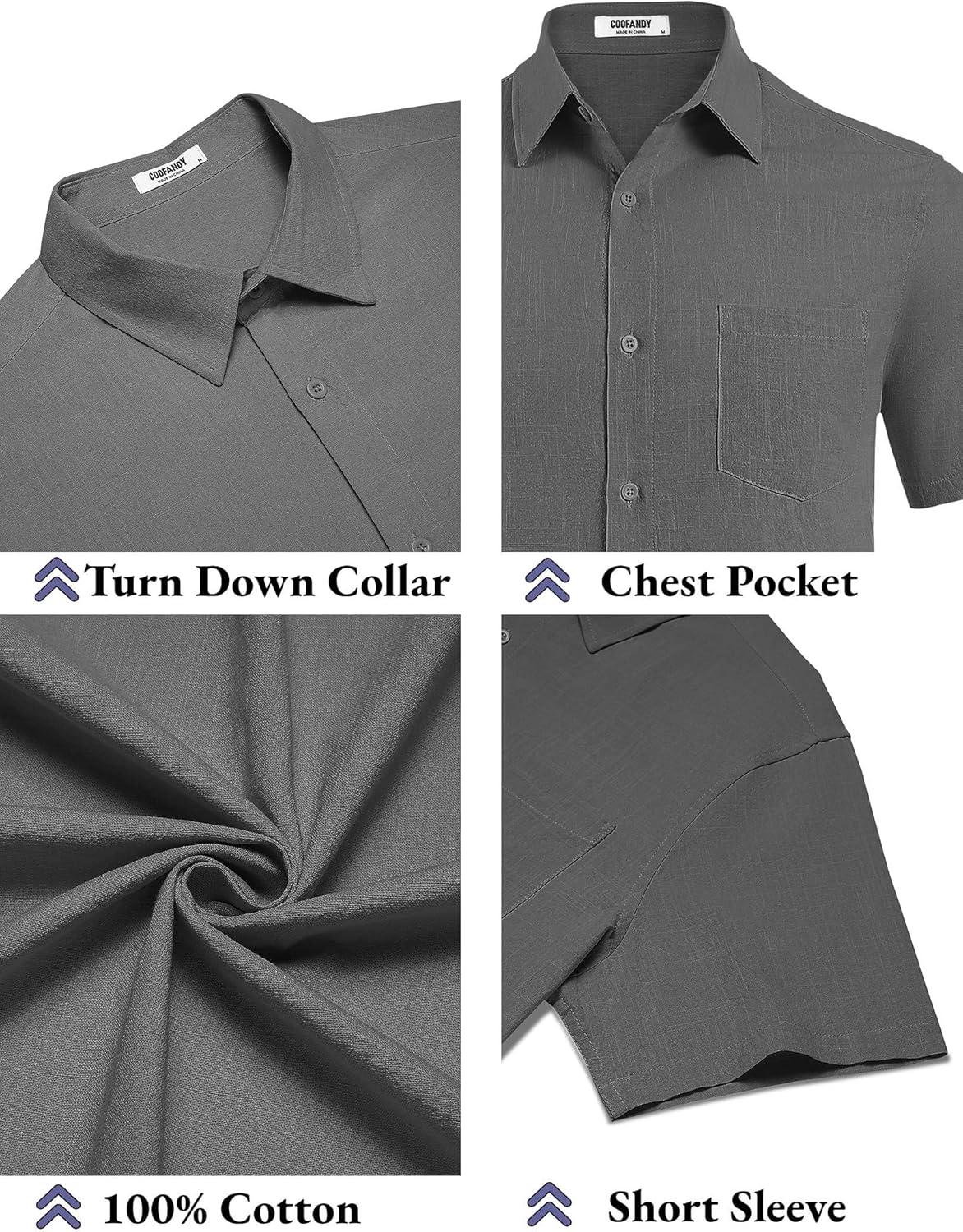 COOFANDY Men's Button Down Short Sleeve Shirt Casual Cotton Summer Beach Linen Wedding Shirts with Pocket(Dark Grey)
