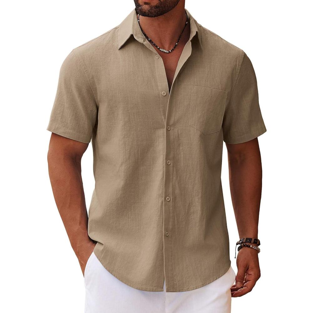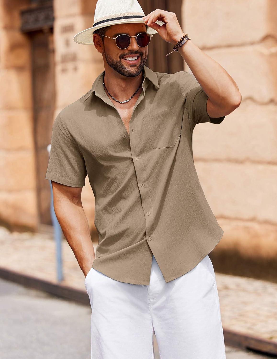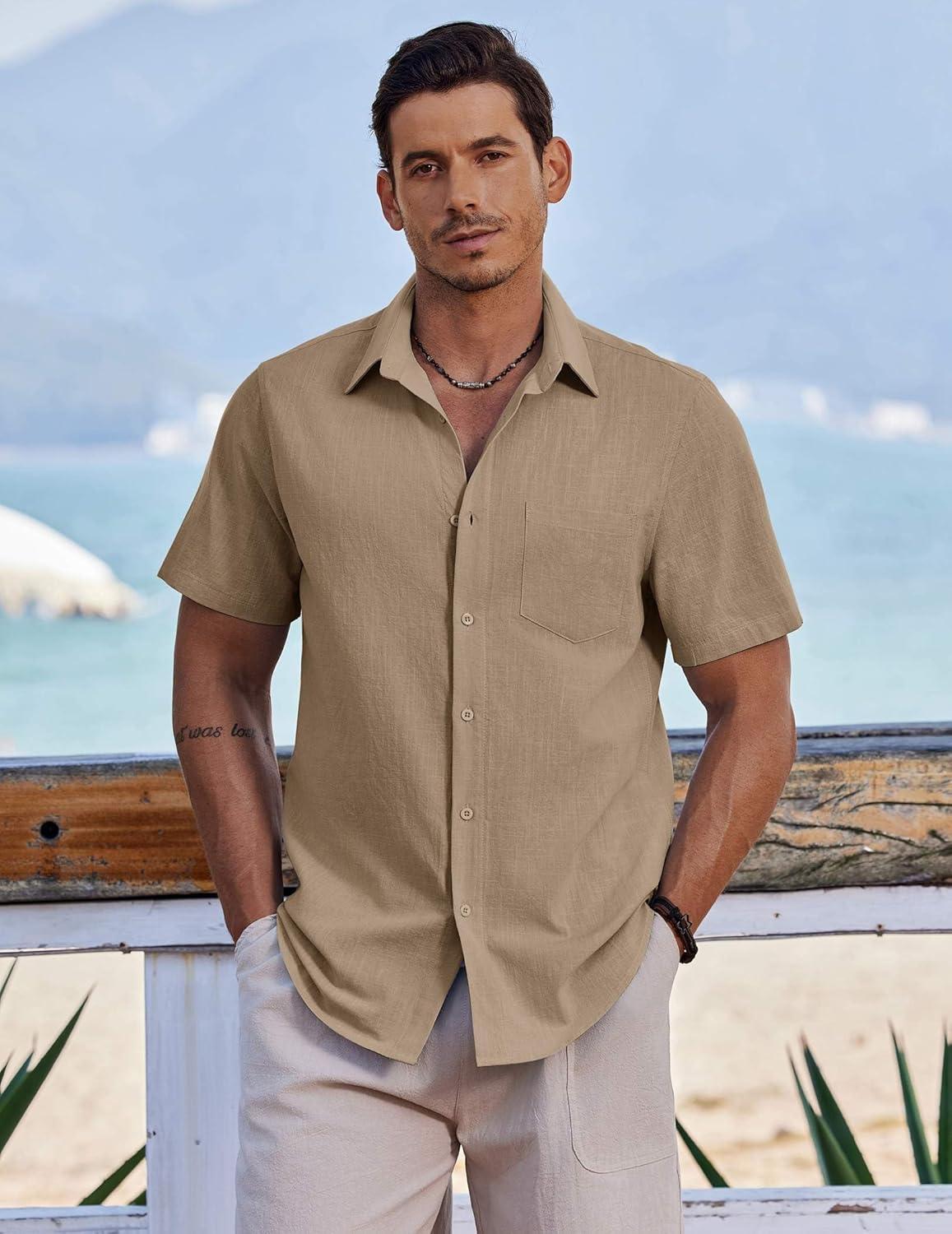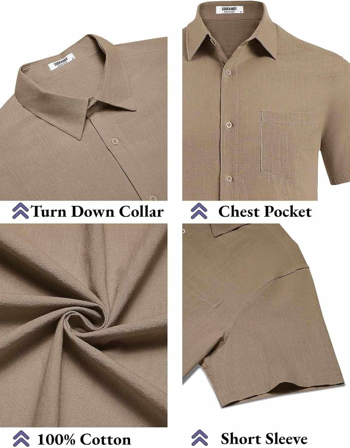 Get your hands on our newest COOFANDY Men’s Button Down Short Sleeve Shirt Casual Cotton Summer Beach Linen Wedding Shirts with Pocket(Dark Khaki) and enjoy a limited-time discount offer.