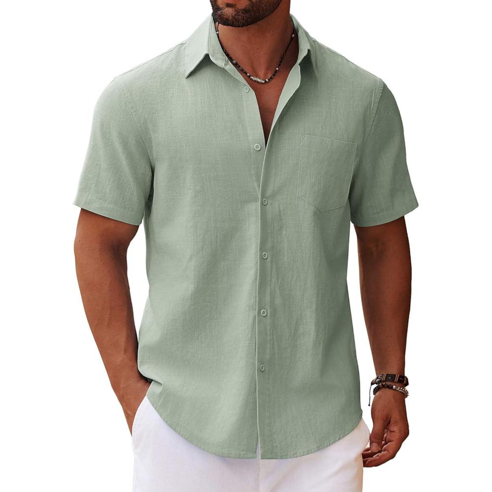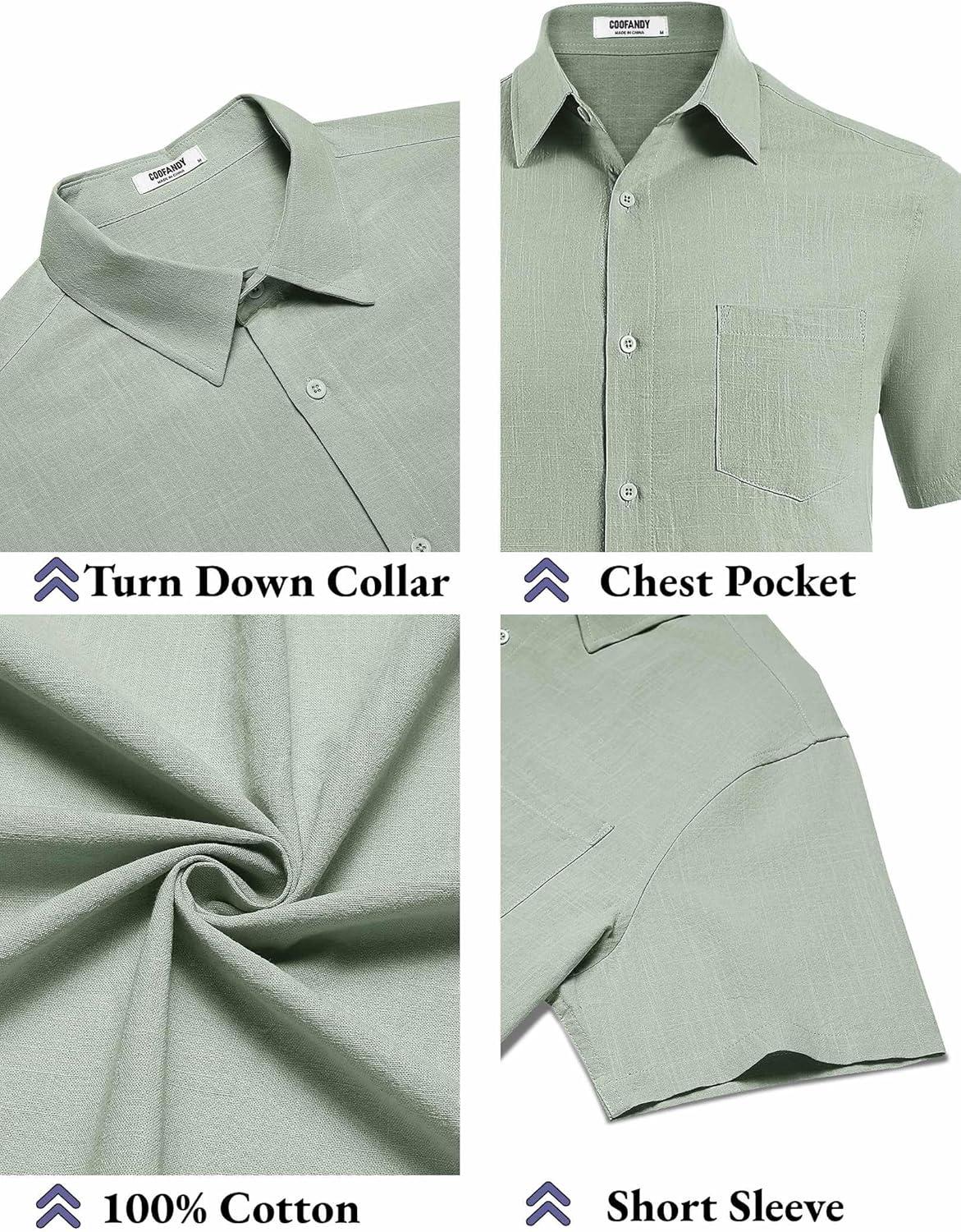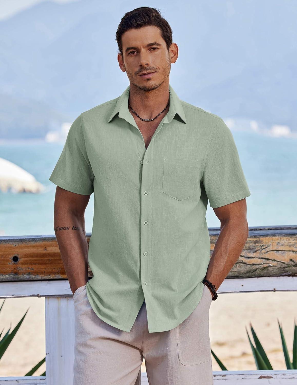 COOFANDY Men's Button Down Short Sleeve Shirt Casual Cotton Summer Beach Linen Wedding Shirts with Pocket(Mint Green)