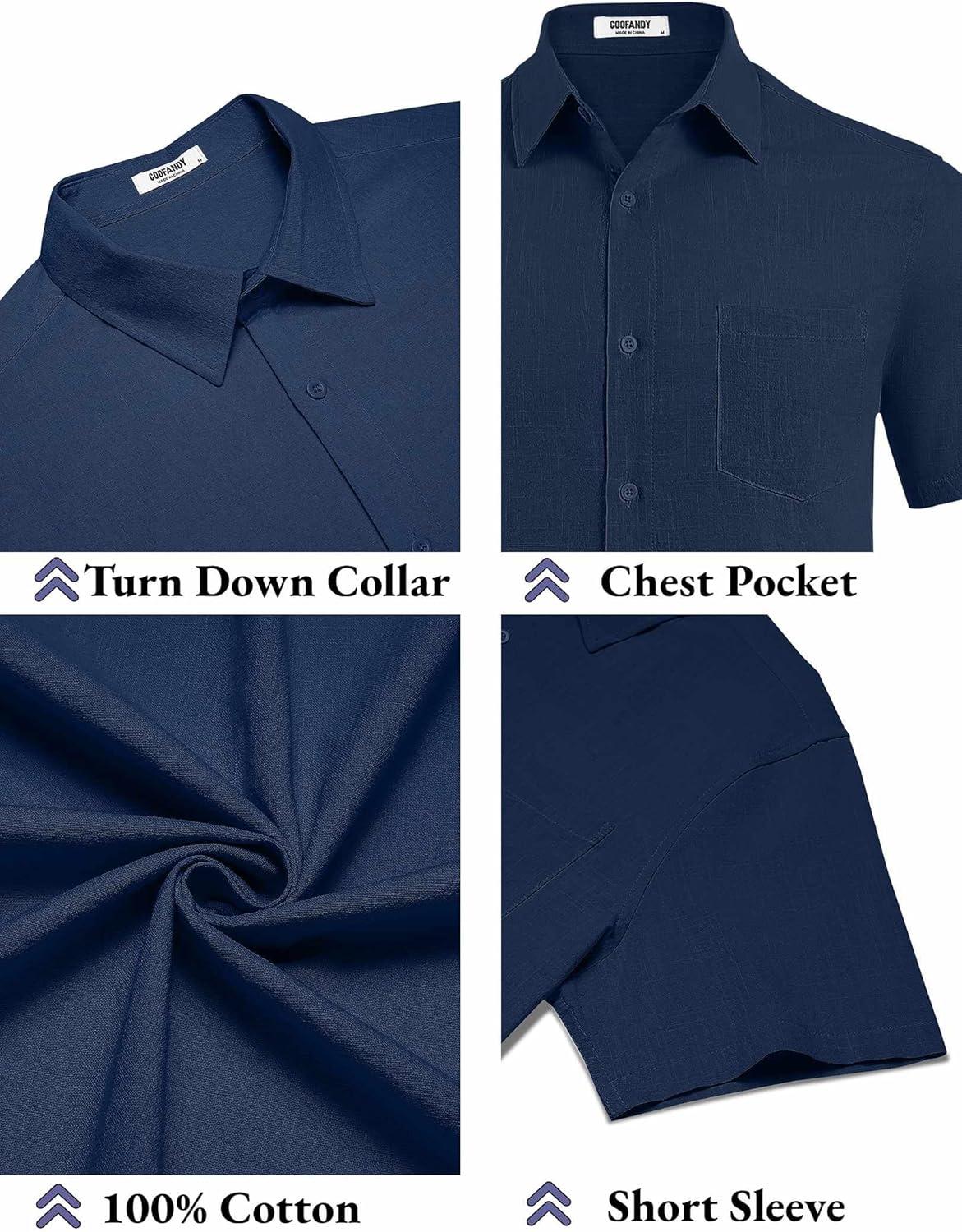 COOFANDY Men's Button Down Short Sleeve Shirt Casual Cotton Summer Beach Linen Wedding Shirts with Pocket(Navy Blue)