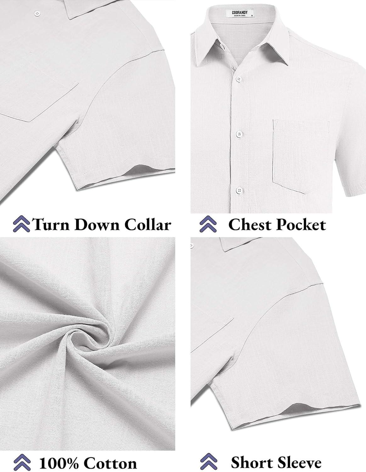 COOFANDY Men's Button Down Short Sleeve Shirt Casual Cotton Summer Beach Linen Wedding Shirts with Pocket(White)
