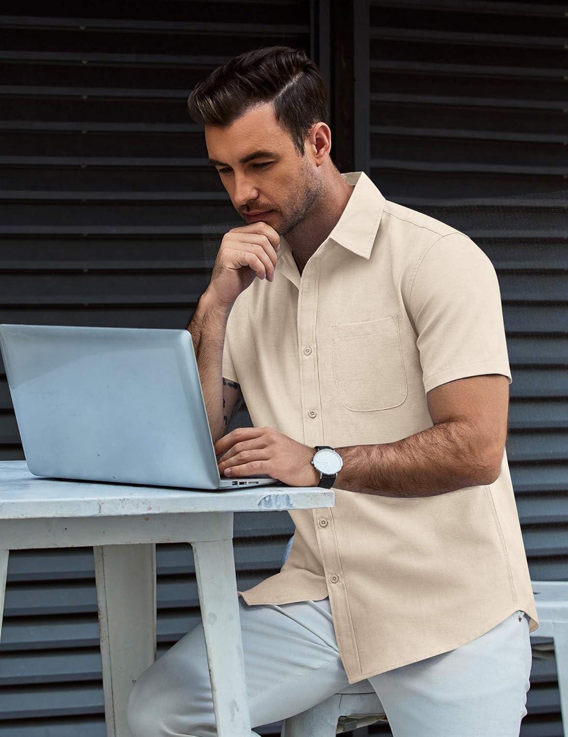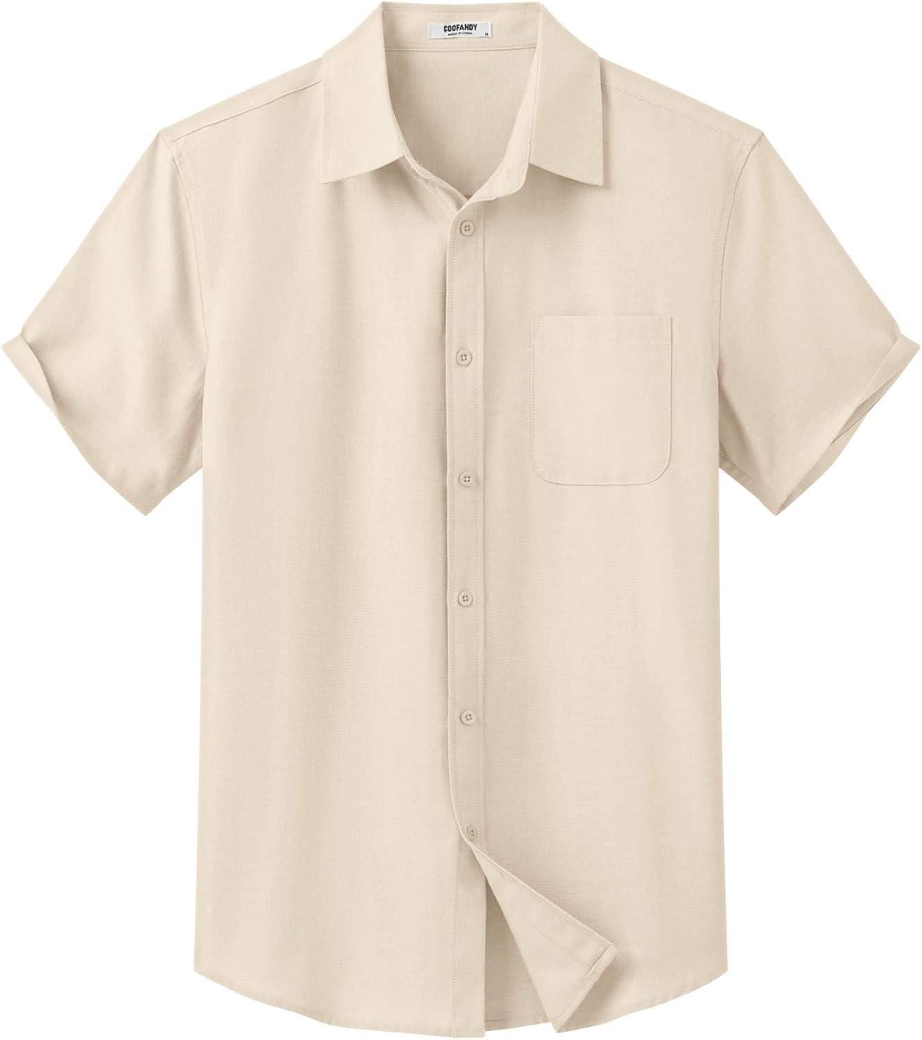 COOFANDY Mens Button Down Short Sleeve Shirt Casual Dress Shirt Untucked Summer Shirts with Pocket(Beige)