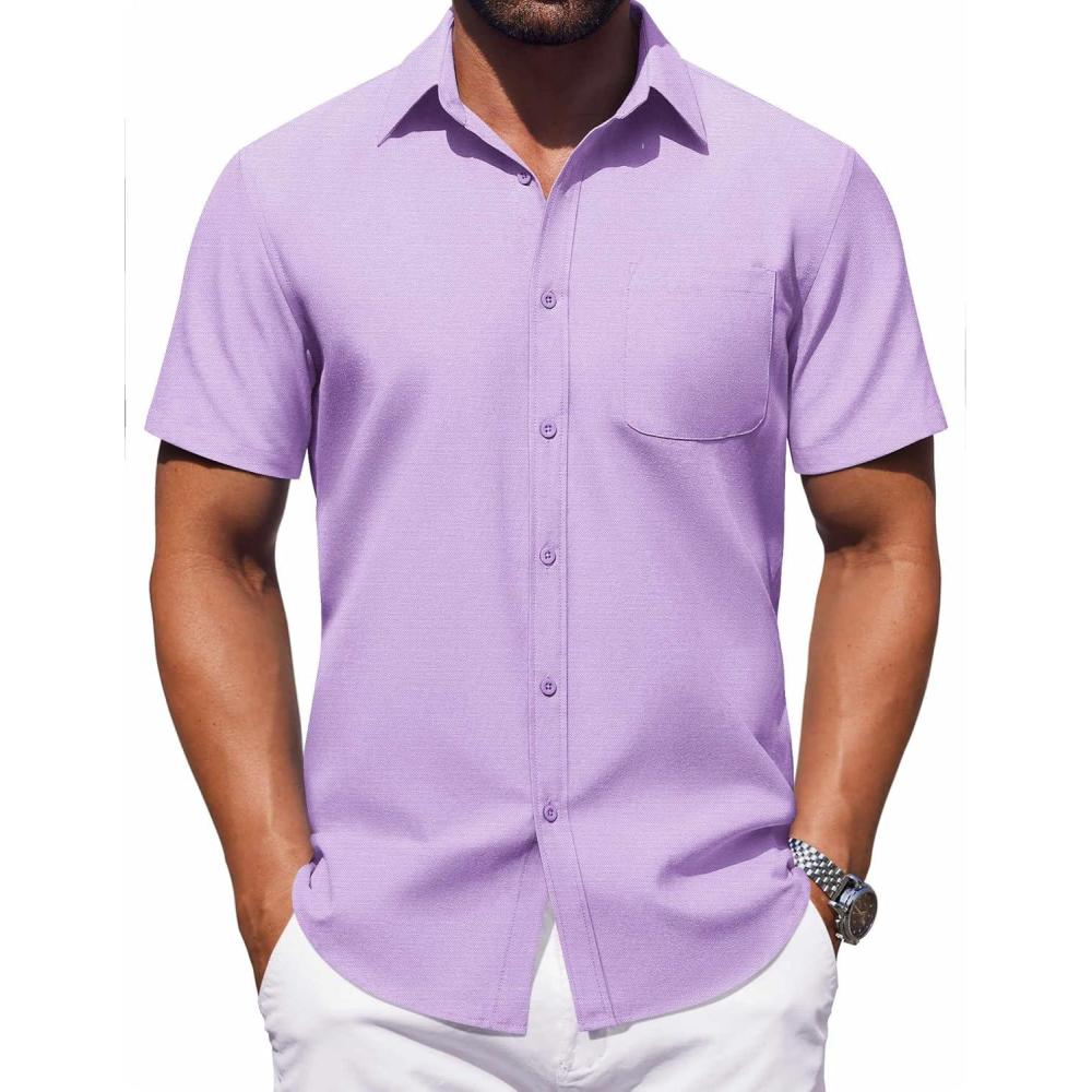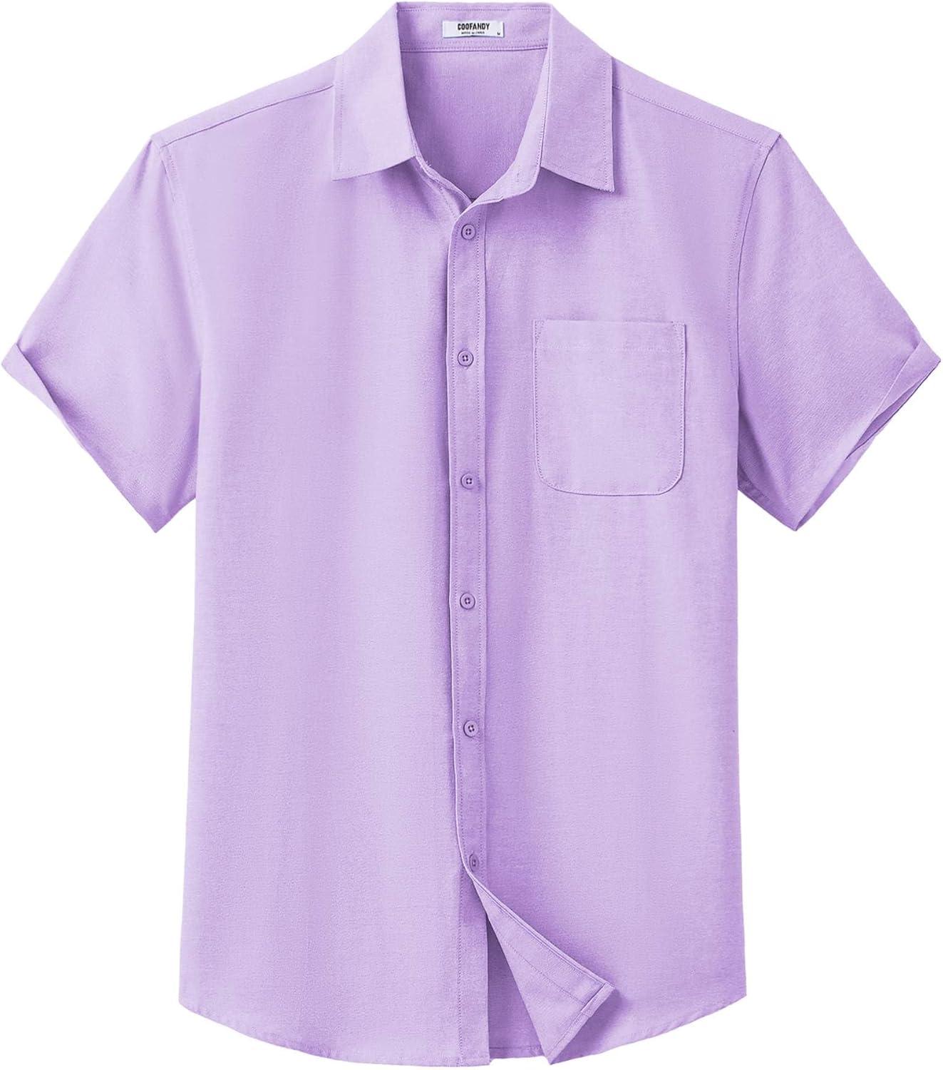 COOFANDY Mens Button Down Short Sleeve Shirt Casual Dress Shirt Untucked Summer Shirts with Pocket(Lilac Purple)