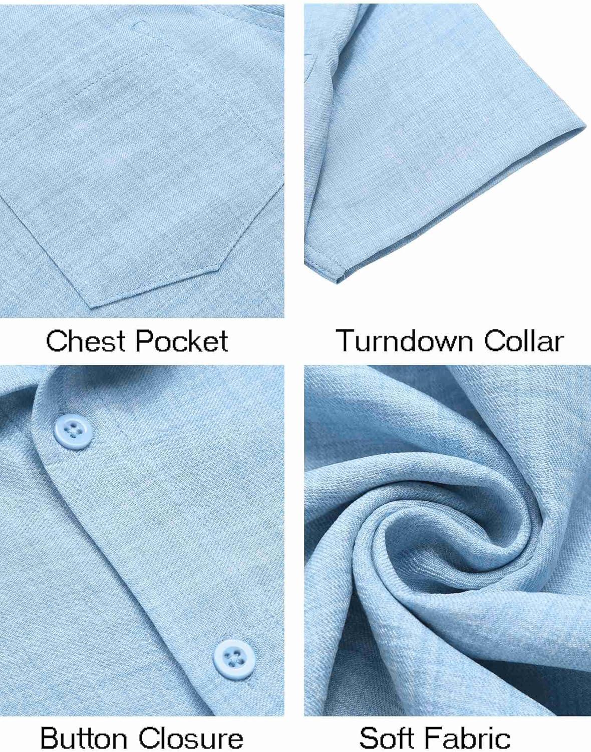 imageCOOFANDY Mens Button Down Short Sleeve Shirt Casual Shirts Summer Beach Textured Shirts with PocketBeau Blue